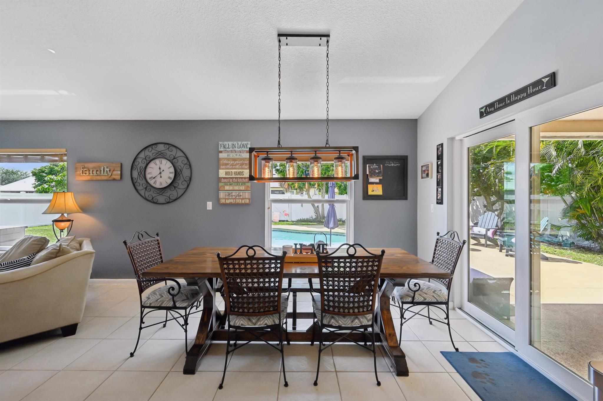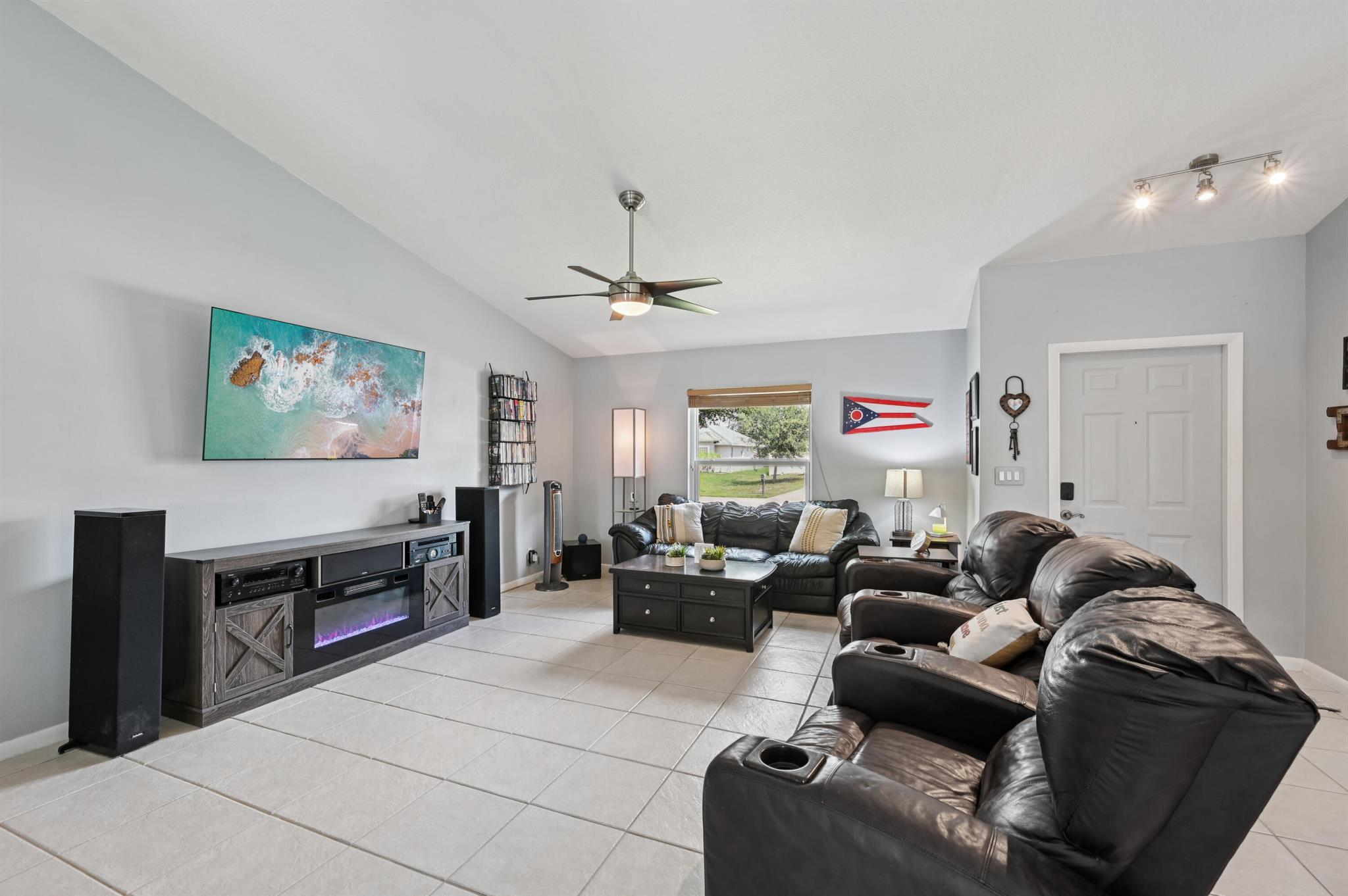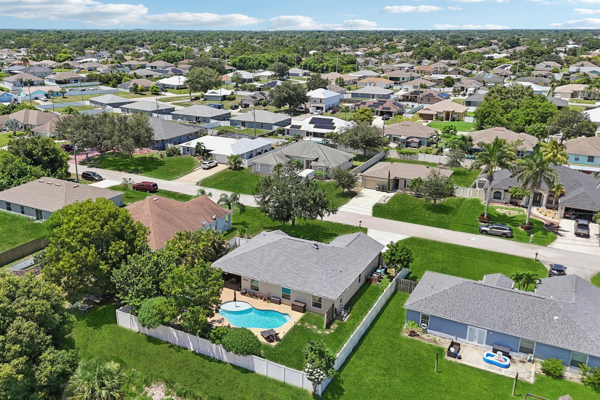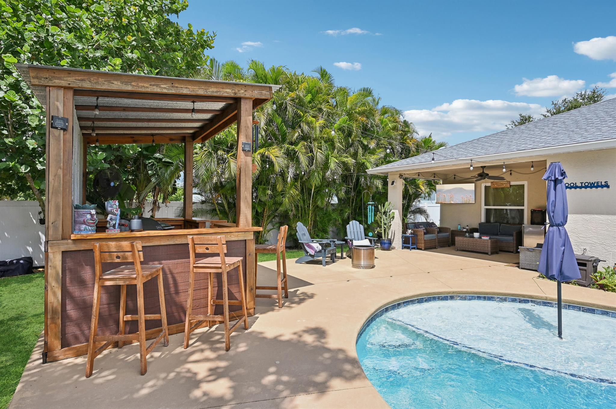 Move-in ready and perfectly located, this home checks every box and is now competitively priced at $469,000. No HOA | Saltwater Pool (2021) | New Roof (2022) | New A/C (2025) | Energy-Efficient Windows (2021) | Water Heater (2019) | GE Washer & Dryer (2021) | Outdoor Bar | Near I-95 & Turnpike. This CBS home offers nearly 2,000 sq ft of open-concept living with views of the sparkling saltwater pool. The fully fenced backyard (new vinyl 2024) includes a covered patio, lounge seating, bar, and cooking station for grilling and smoking. Inside, enjoy a SPLIT FLOOR PLAN, TWO WALK-IN CLOSETS, LUXURY LAMINATE flooring, updated lighting, DEDICATED LAUNDRY ROOM, and BUILT-IN STORAGE.