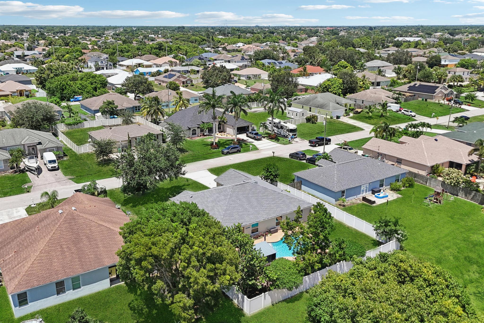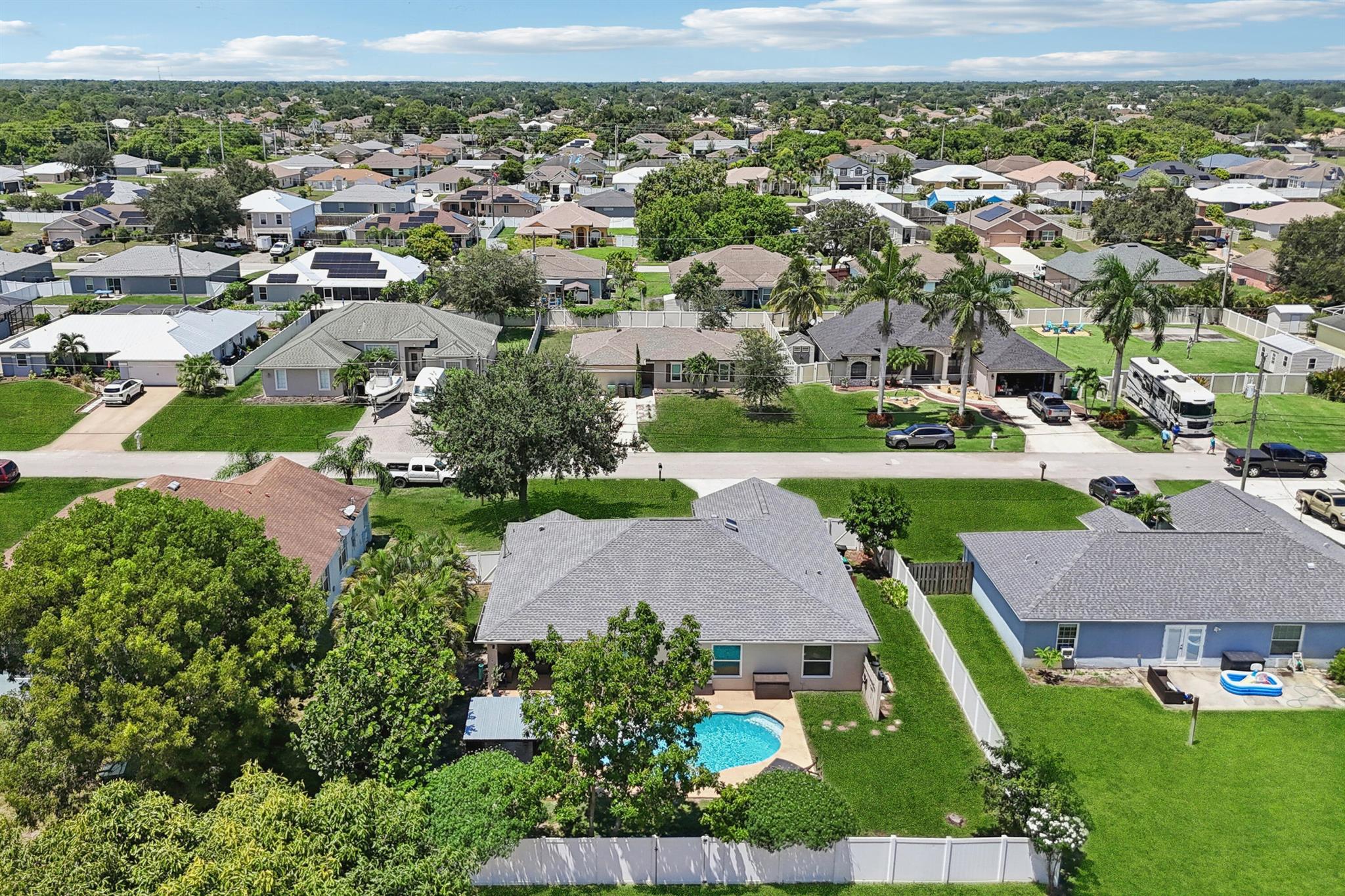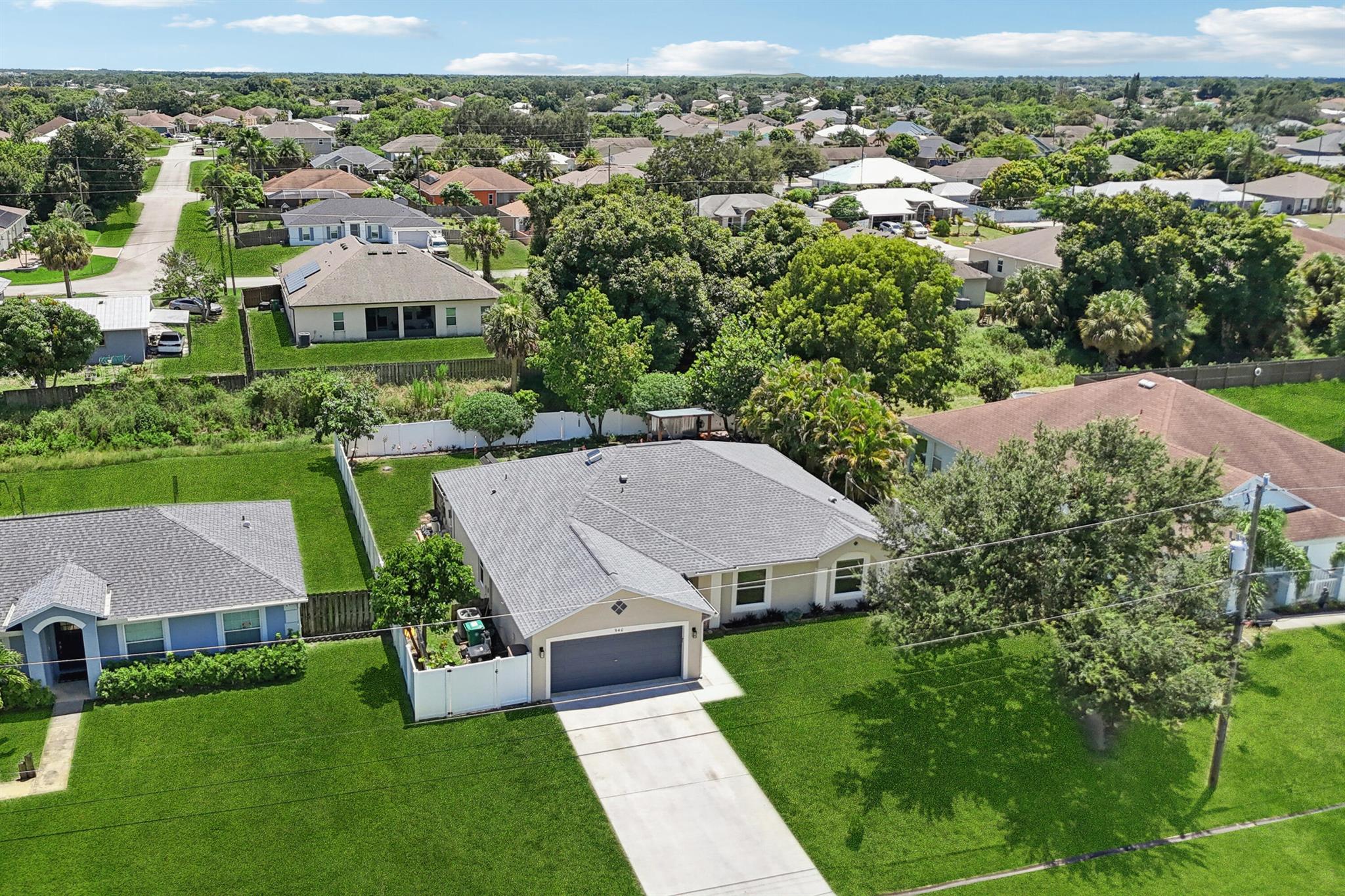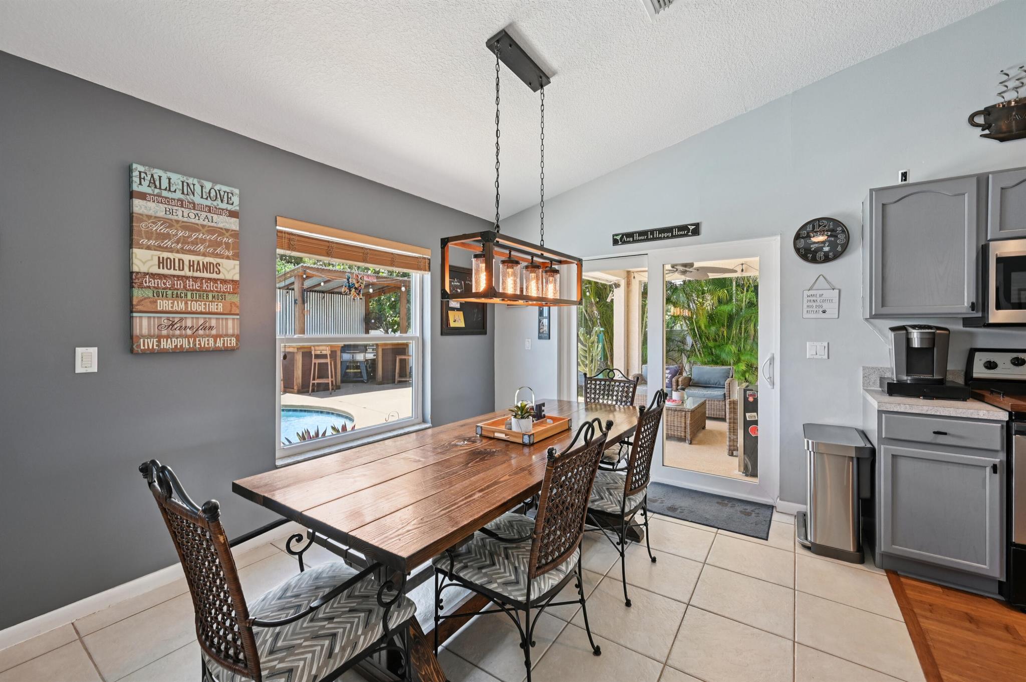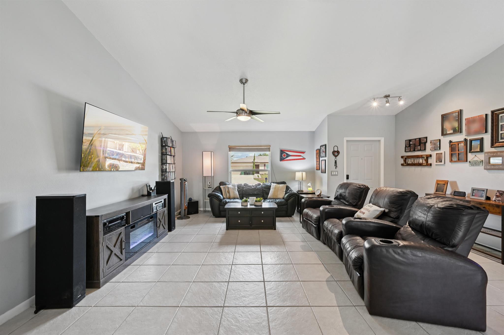 Move-in ready and perfectly located, this home checks every box and is now competitively priced at $469,000. No HOA | Saltwater Pool (2021) | New Roof (2022) | New A/C (2025) | Energy-Efficient Windows (2021) | Water Heater (2019) | GE Washer & Dryer (2021) | Outdoor Bar | Near I-95 & Turnpike. This CBS home offers nearly 2,000 sq ft of open-concept living with views of the sparkling saltwater pool. The fully fenced backyard (new vinyl 2024) includes a covered patio, lounge seating, bar, and cooking station for grilling and smoking. Inside, enjoy a SPLIT FLOOR PLAN, TWO WALK-IN CLOSETS, LUXURY LAMINATE flooring, updated lighting, DEDICATED LAUNDRY ROOM, and BUILT-IN STORAGE.