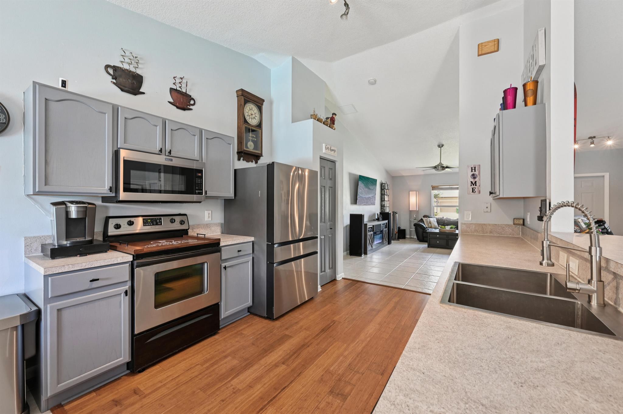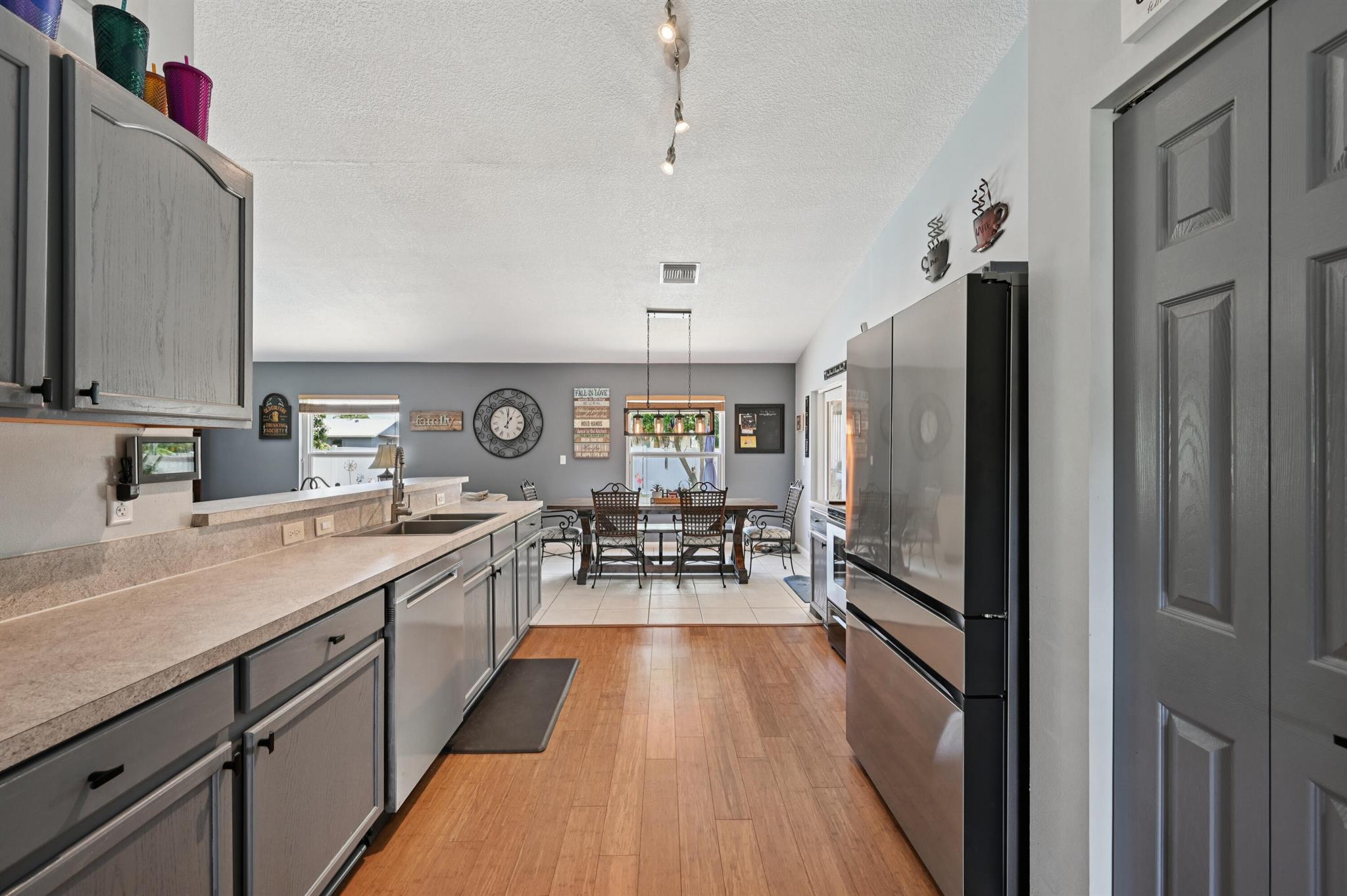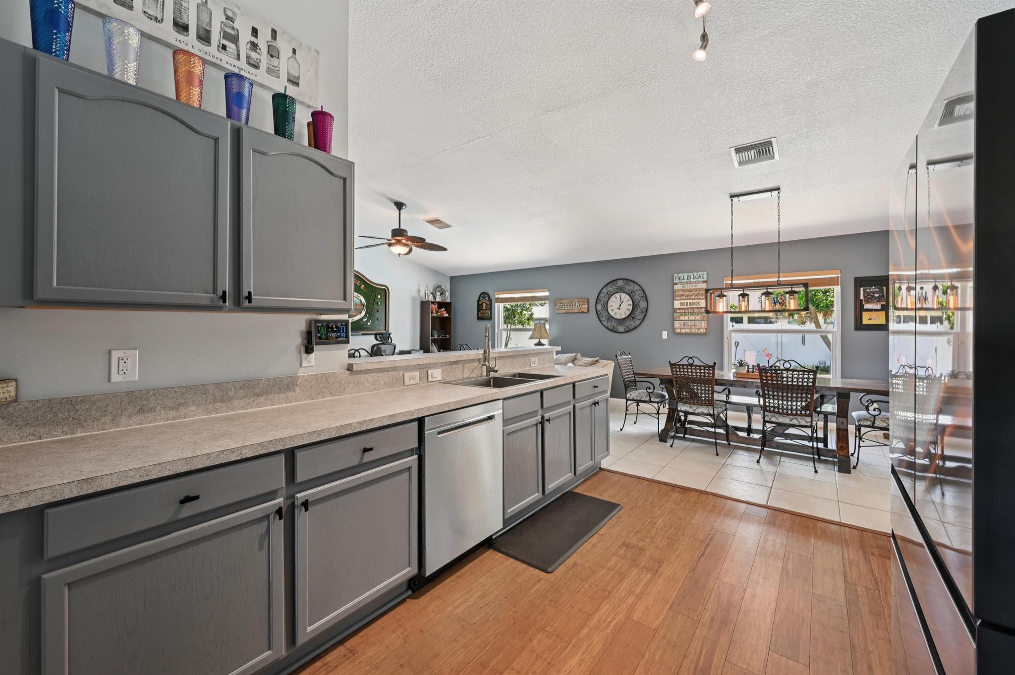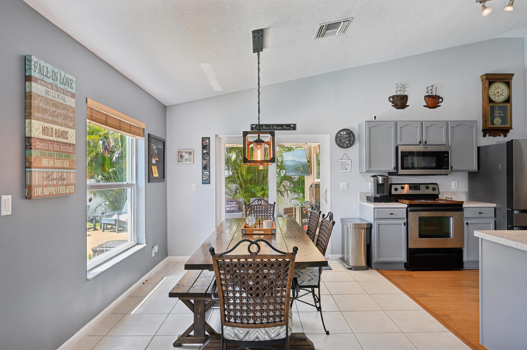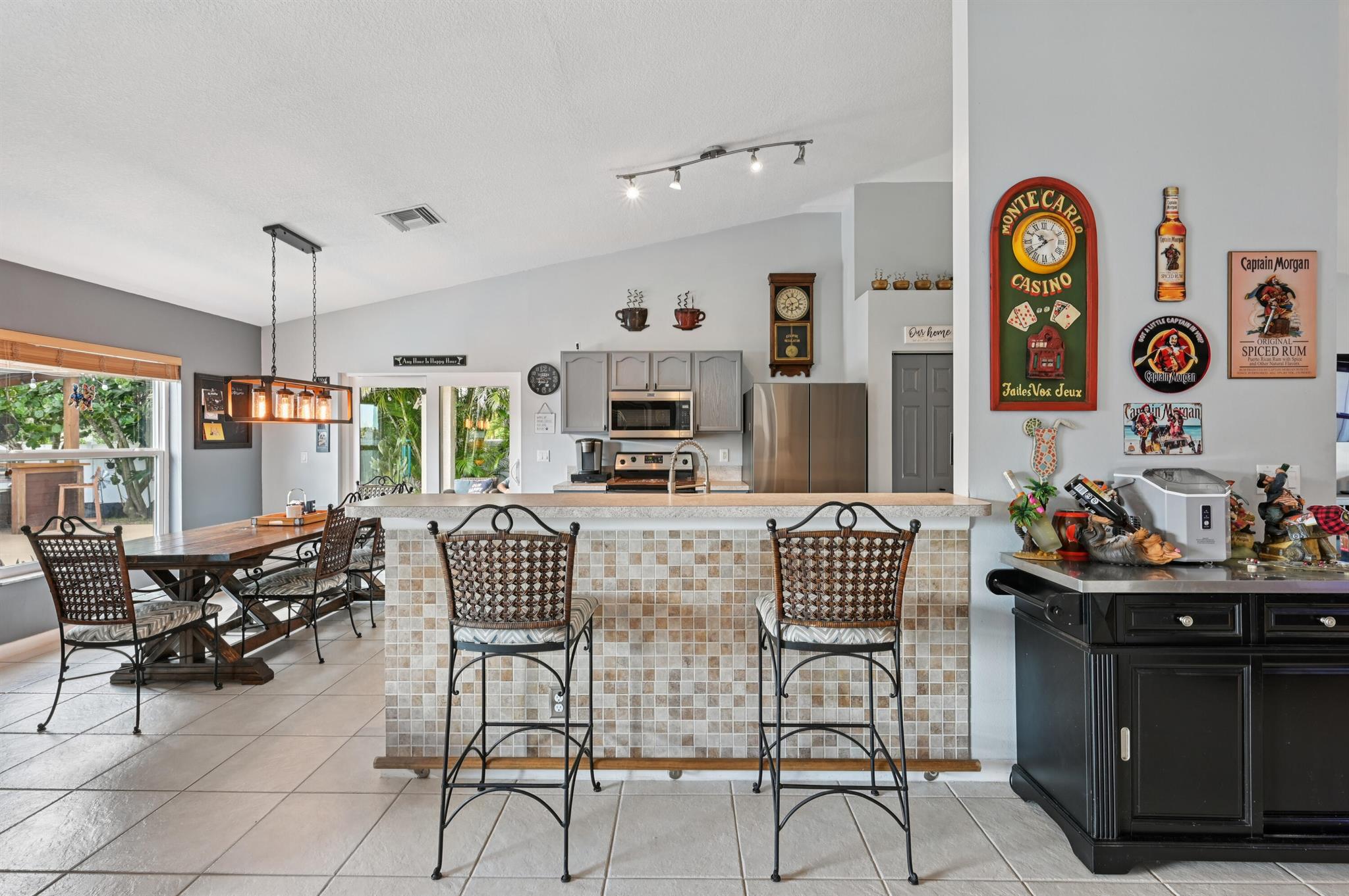 Move-in ready and perfectly located, this home checks every box and is now competitively priced at $469,000. No HOA | Saltwater Pool (2021) | New Roof (2022) | New A/C (2025) | Energy-Efficient Windows (2021) | Water Heater (2019) | GE Washer & Dryer (2021) | Outdoor Bar | Near I-95 & Turnpike. This CBS home offers nearly 2,000 sq ft of open-concept living with views of the sparkling saltwater pool. The fully fenced backyard (new vinyl 2024) includes a covered patio, lounge seating, bar, and cooking station for grilling and smoking. Inside, enjoy a SPLIT FLOOR PLAN, TWO WALK-IN CLOSETS, LUXURY LAMINATE flooring, updated lighting, DEDICATED LAUNDRY ROOM, and BUILT-IN STORAGE.