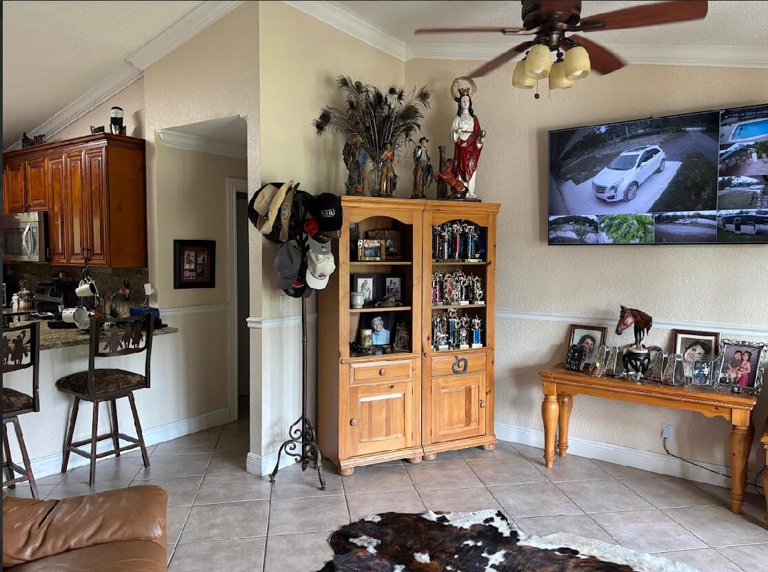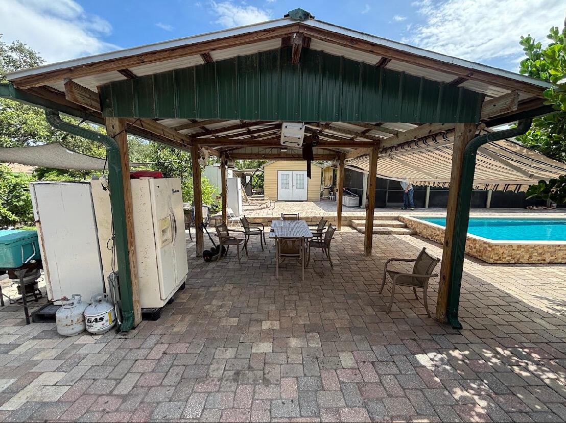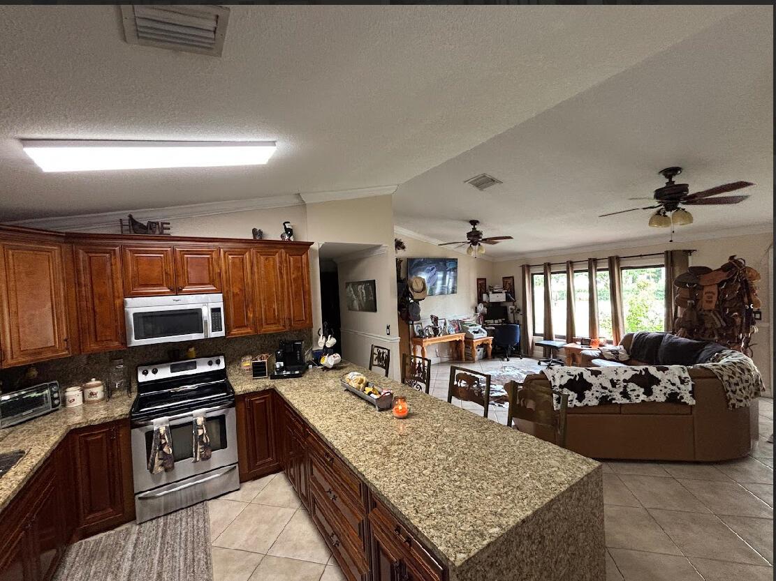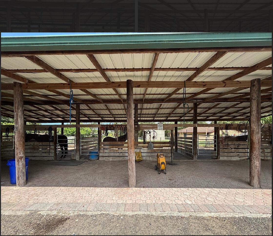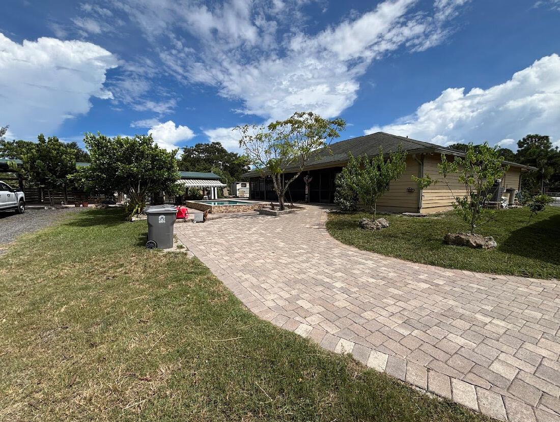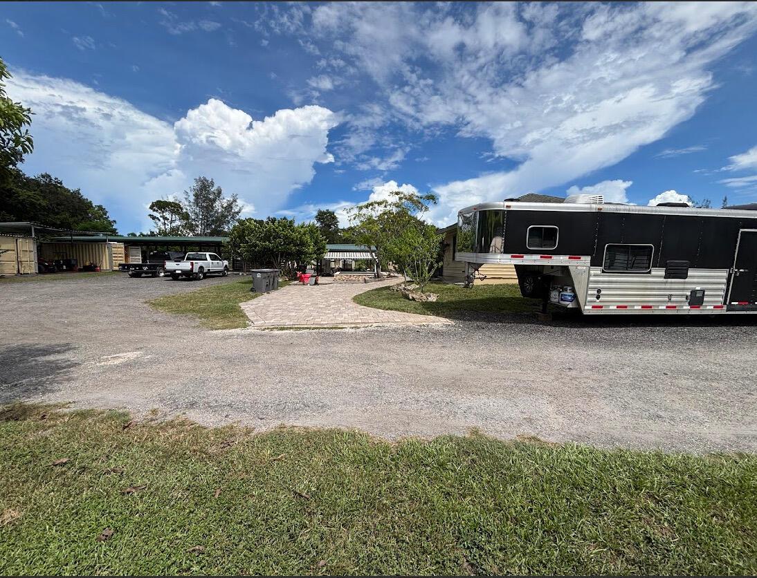 Beautiful home completely renovated electric gate with a 6 stall barn with back paddock, front pasture, groomsman's quarters, salt water pool, cabana with attached electric awning. Cameras throughout the whole house. Sprinkler system, Gutters, 2 containers one is feed room the other is a tack room with a/c and a rooftop between the containers for extra storage of hay or toy parking. Getting underground electric in the next year already paid for. New AC in the house, new drain field and updated water system and tankless water heater. Porch has a full extra kitchen. RV hookup Impact Windows and doors are new. Also available the lot adjacent to the west which is a high and dry currently used as a lighted riding arena with a 4 stall barn.