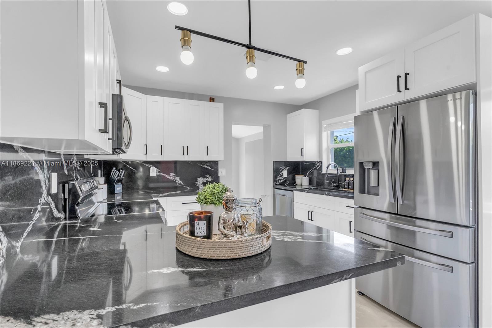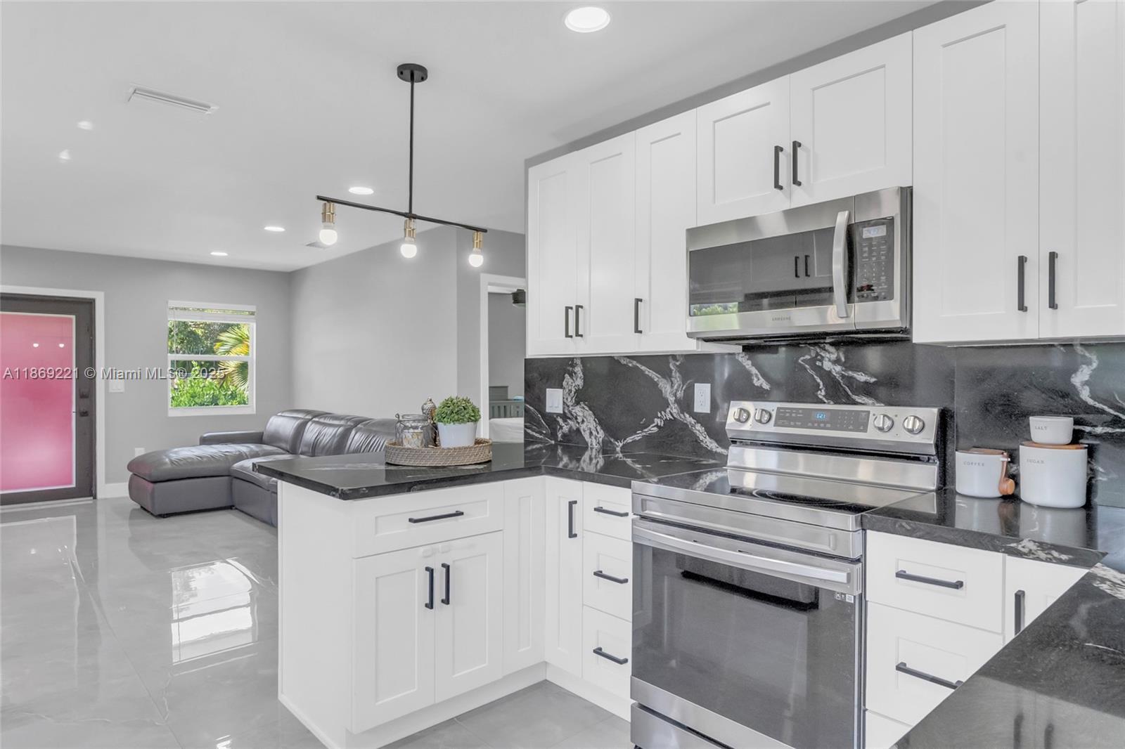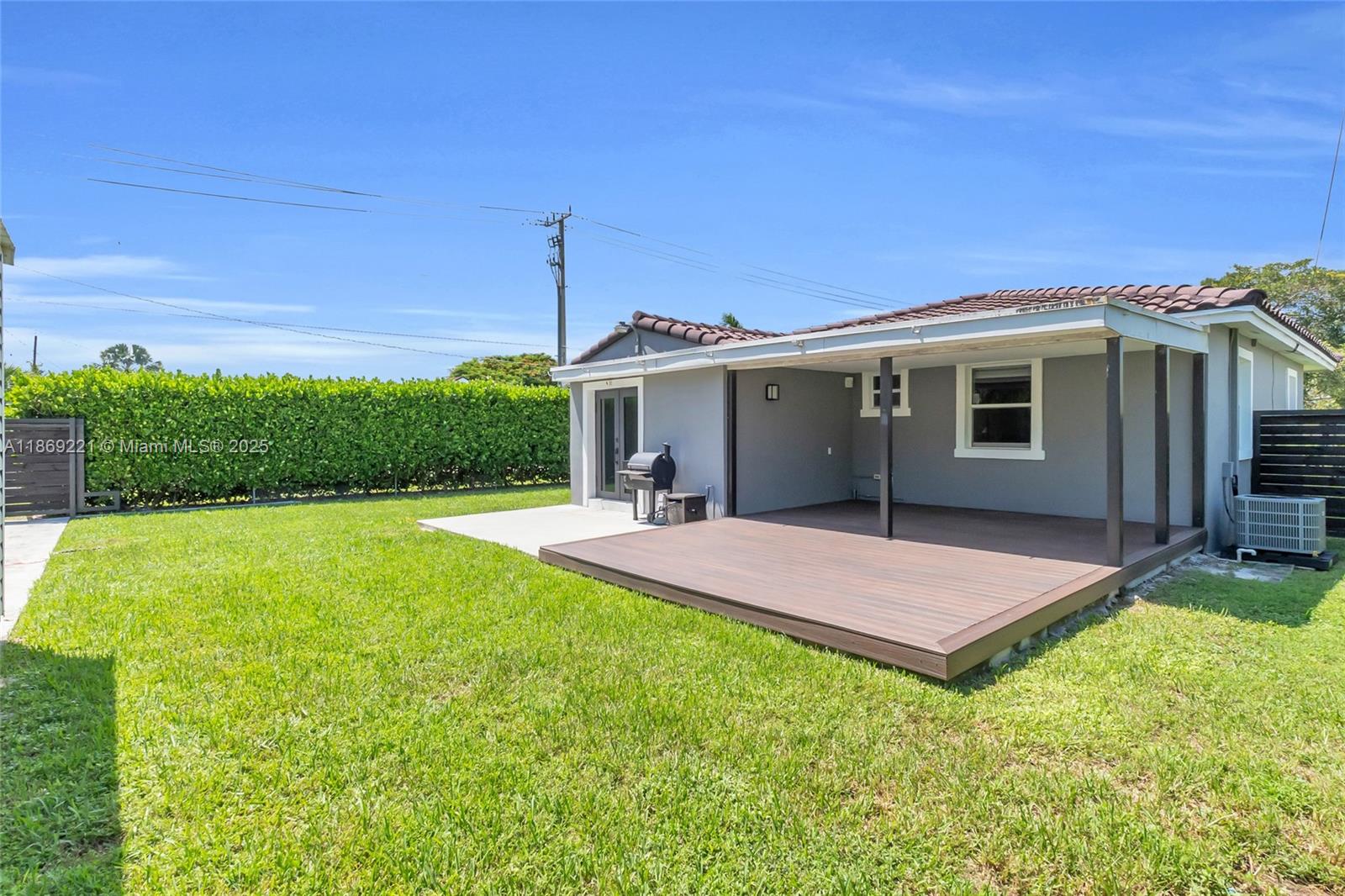 This beautifully renovated home showcases modern elegance with sleek porcelain floors, an open-concept layout, and a designer kitchen featuring quartz countertops, stainless steel appliances, and custom cabinetry. Natural light fills the spacious living areas, while the bathroom has been tastefully updated with luxury finishes. Outdoors, a private fenced yard with lush landscaping, a wood deck, and a covered patio create the perfect space for entertaining or relaxing. A detached garage-style structure offers additional storage or creative use, all in a prime location just minutes from Coral Gables, shopping, dining, and top-rated schools, making this residence the ideal blend of comfort, style, and convenience.