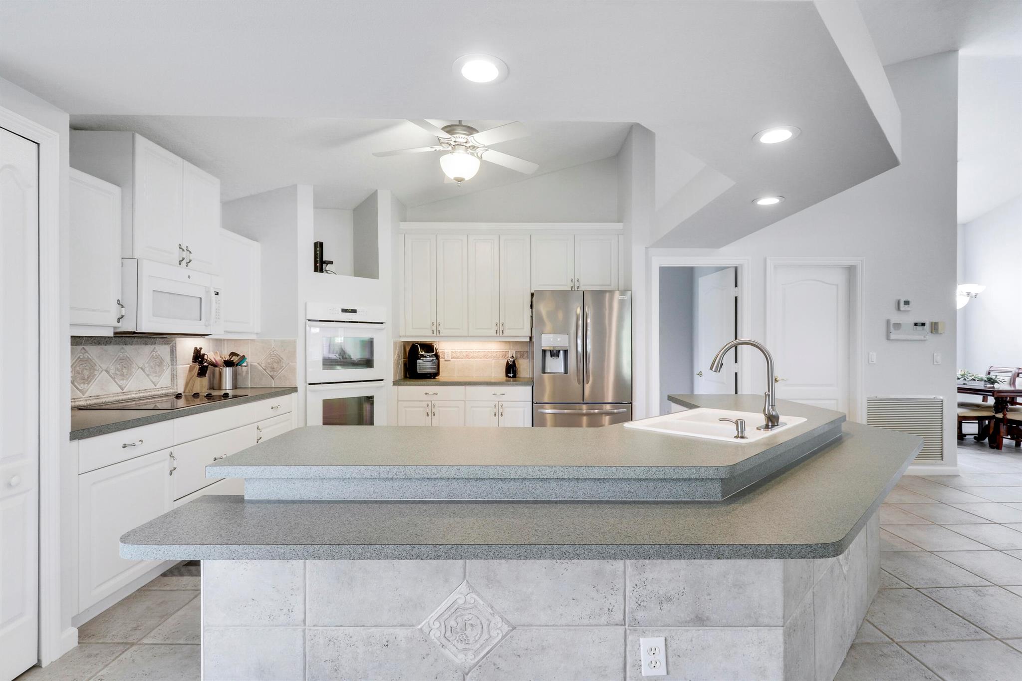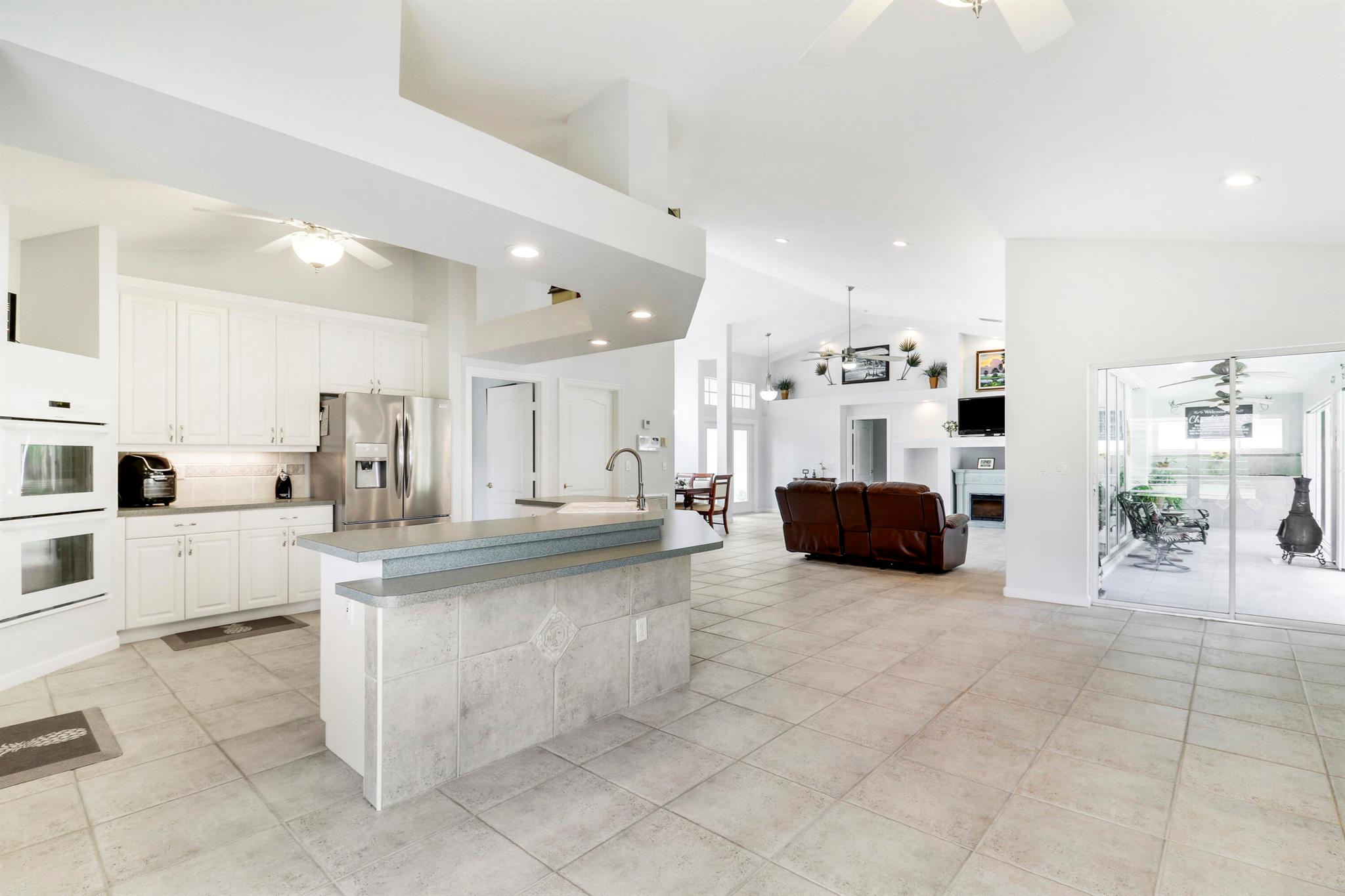 This gorgeous 4bdr/2bath cul-de-sac home with high vaulted ceilings, fantastic layout, and breathtaking 180 views of the private lakefront is nestled in the highly desirable secure and serene gated Crane Point community of Sawgrass Lakes! A spacious kitchen enjoys a double oven, tons of counter space, and center island opening into the family room. Ceramic tile throughout all living areas and new LVP flooring in all bedrooms. The master bdrm has two walk-in closets, glass enclosed shower, soaking tub and two separate cabinet/sink areas and guest bedroom with waterfront views has a large walk-in closet as well. New roof, A/C, refrigerator, water heater, dish washer, and washer and dryer in past 3 years! A spacious rear screened porch comes with a summer kitchen and sink. Save money on