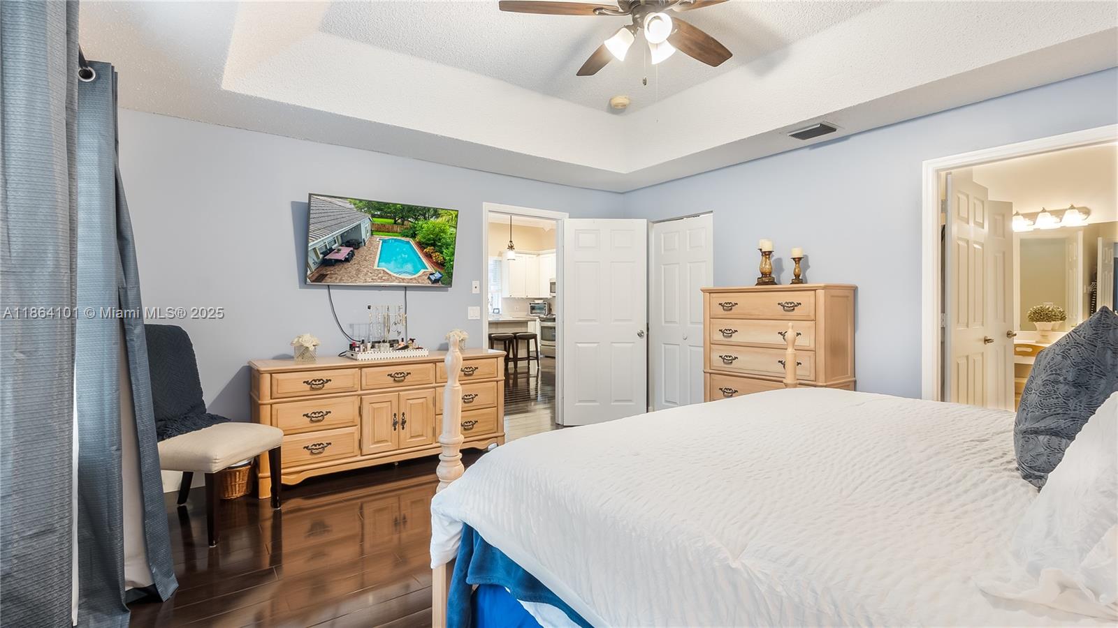 Welcome to this inviting single-story home, featuring three cozy bedrooms and three well-appointed bathrooms. Boasting a beautifully remodeled kitchen completed in 2020, you'll find stylish shaker cabinets with slow-close hinges, a charming farm sink, and brand-new appliances that blend functionality with elegance. The entire house is adorned with stunning dark laminate wood flooring, creating a warm and welcoming atmosphere. Recent upgrades include a new A/C system installed in 2023 and a hot water heater that was added in 2025, ensuring modern comfort and efficiency. Step outside to discover a refreshed pool area, resurfaced with diamond brite, complemented by new tiles, coping, and an upgraded pump from 2024. Safety is prioritized with the inclusion of a child fence for peace of mind
