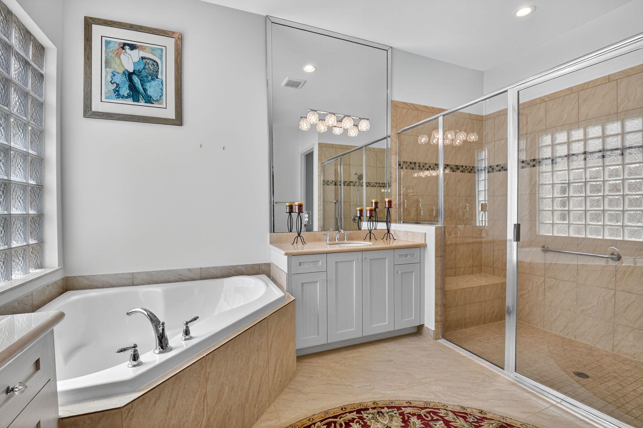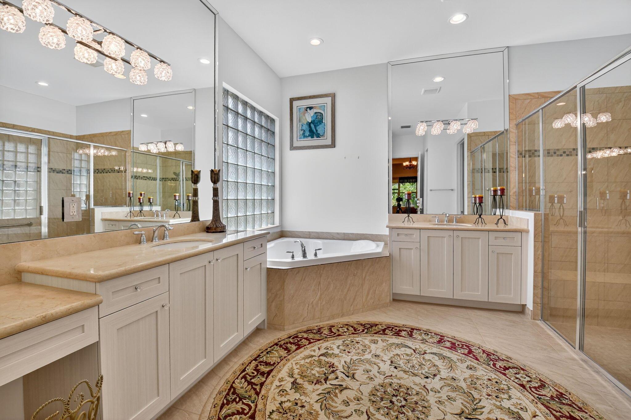 • Interior Feature:BreakfastBar, DualSinks, EntranceFoyer, GardenTubRomanTub, LivingDiningRoom, SplitBedrooms, SeparateShower, WalkInClosets