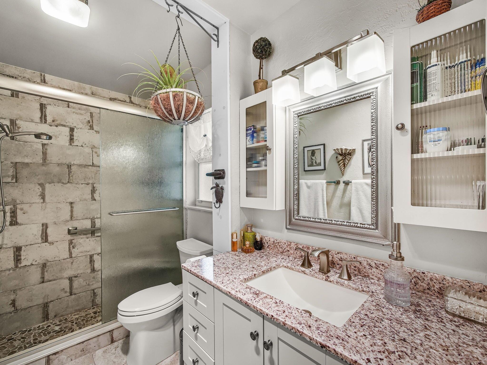 Beautifully renovated 3 bed, 2 bath home with a 2-car garage and a 2018 sunroom, located in the desirable 55+ community of Little Club. This home showcases impact windows (2017), solid wood doors, crown molding, and 18'' tile flooring throughout. The spacious, open kitchen boasts a large island, Curava recycled glass countertops, stainless steel appliances, white wood cabinetry, and stylish modern finishes. Both bathrooms have been tastefully updated, and the home offers abundant closet space for convenience. Step outside to enjoy the expansive tropical yard with two patios, both enhanced by pergolas and remote-controlled awnings. Additional upgrades include a 22kw generator with 750-gallon gas tank, water softener and reverse osmosis system, outdoor shower, epoxy garage flooring,
