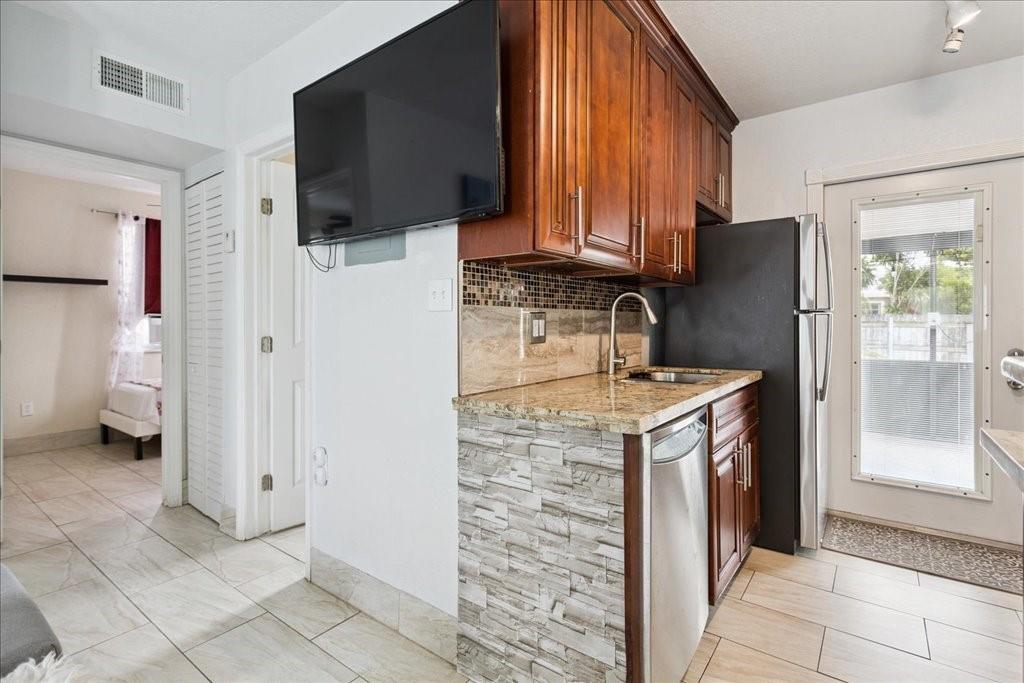Welcome to this charming 2-bedroom, 1-bathroom home with a spacious den currently used as a 3rd bedroom, located in the highly desirable East Pompano area. With no HOA and just minutes from everything Pompano Beach has to offer—shopping, dining, parks, and the beach—this home combines comfort with convenience. Situated on a nearly 10,000 sq. ft. lot large enough to park 2 RV's the property offers endless possibilities: create your dream backyard oasis, add a pool, or expand the home to suit your needs. Perfect for entertaining, this move-in-ready home is attractively priced and won’t stay on the market for long! Backyard photos are staged to show endless possibilities!