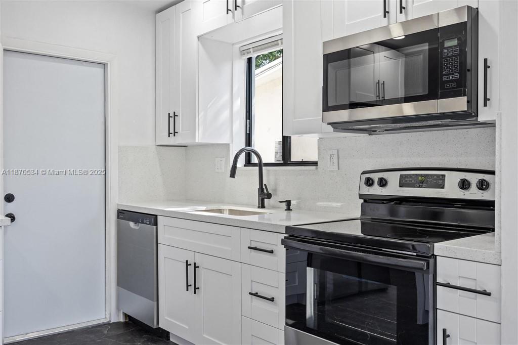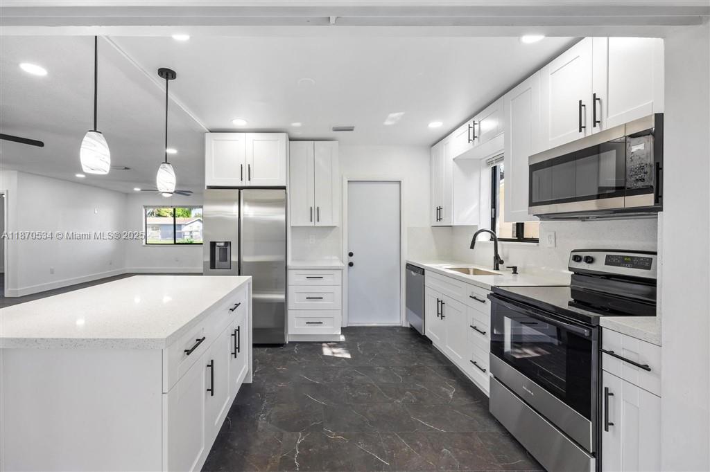 FULLY UPDATED 3 BEDROOM 2 BATH SINGLE FAMILY HOME WITH GARAGE - MOVE-IN READY! This stunning home is fully remodeled featuring 3 spacious bedrooms. Upgrades include brand-new flooring, fresh interior & exterior paint, a beautifully updated kitchen complete with quartz countertops, new stainless steel appliances, and stylishly renovated bathrooms. Featuring hurricane impact windows and doors all the way around the property. Also a single car Garage, new washer & dryer. Central air and heat throughout. Enjoy new lighting throughout, creating a bright, inviting atmosphere & open-concept layout. Nearby shopping plaza includes Publix for groceries and other local retail shops and restaurants. This home is perfect for the first time home owner, investor, landlord, airbnb, etc.