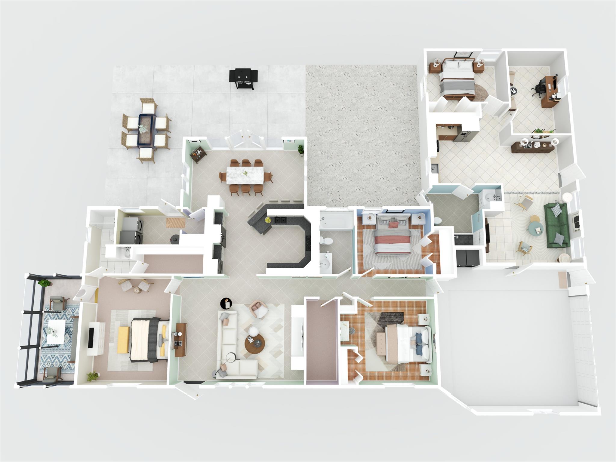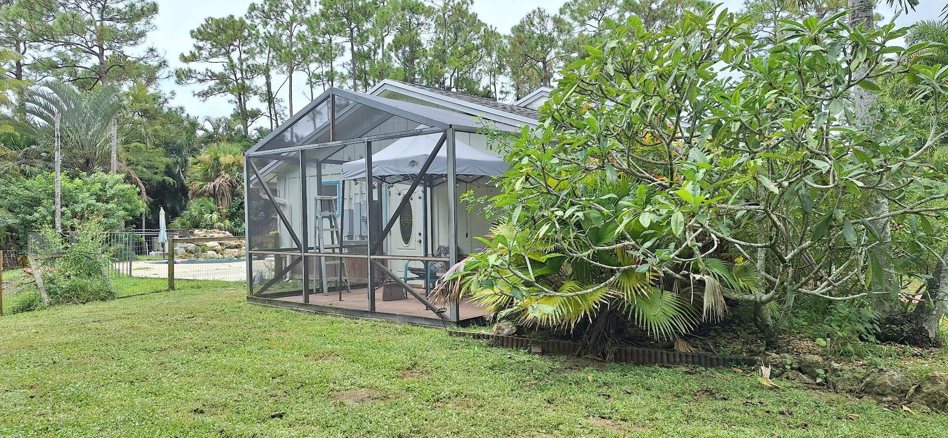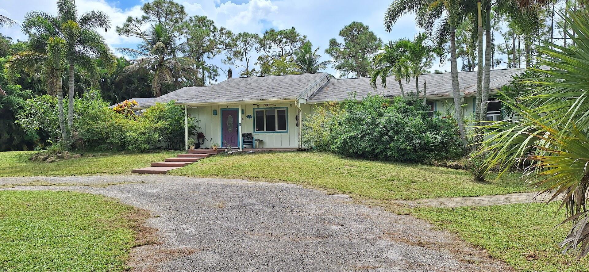 * Motivated sellers * Don't miss this opportunity! Traditional country ranch pool home with guest house. Multigenerational, income producing or home office--possibilities are endless! On quiet culdesac. Updated gourmet kitchen with granite counters, new roof 2020, HVAC 2024, septic pump 2025, termite bond 2025, FPL surge protector with underground power! 2-car oversized garage used as office- with window AC & pull-down screen garage door with walk thru door and auto garage door opener. 2 laundry rooms--1 in garage, 1 in main house. Fantastic pool with rock waterfall, concrete pool deck & patio area--pool equipment included. Master bedroom has private screen porch, backyard is fenced. Guest house/in-law suite--1/1 with living room, kitchen & den or office. Updates: AC 2020, dishwasher2025
