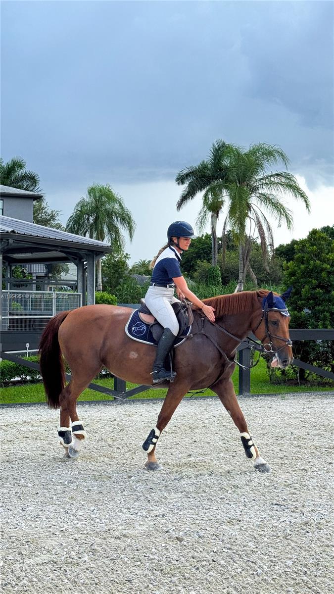 A world-class equestrian estate in Davie combining modern elegance with state-of-the-art facilities. The main residence offers 2 bedrooms, 2 baths, and a private clubhouse with bar. Inspired by European design, the property features Broward’s largest covered arena with isolation system, 5-star rated indoor and outdoor riding arenas, dressage mirrors, hot walker, treadmill, and extra-large paddocks with shaded run-ins. Forty Rower-Rube stalls connect to a full underground drainage system, ensuring no flooding. All buildings are concrete, including a luxury two-story residence and clubhouse, three-story staff housing, with direct access to Davie’s trail system and Vista View Park.
