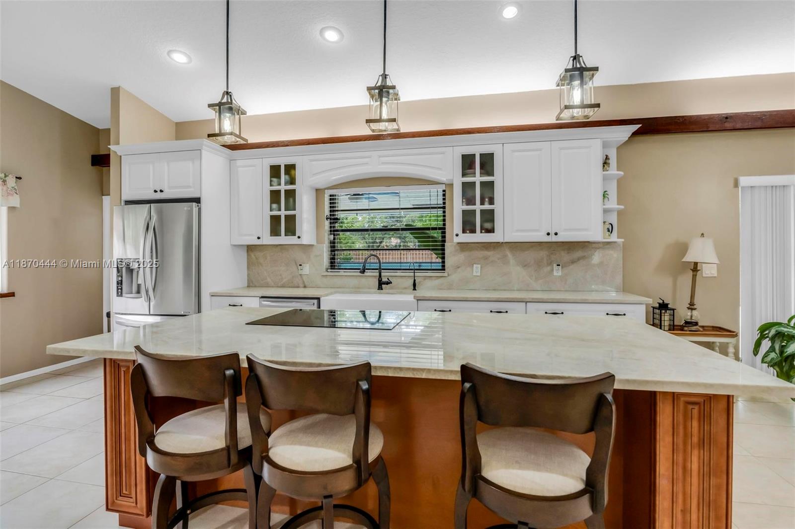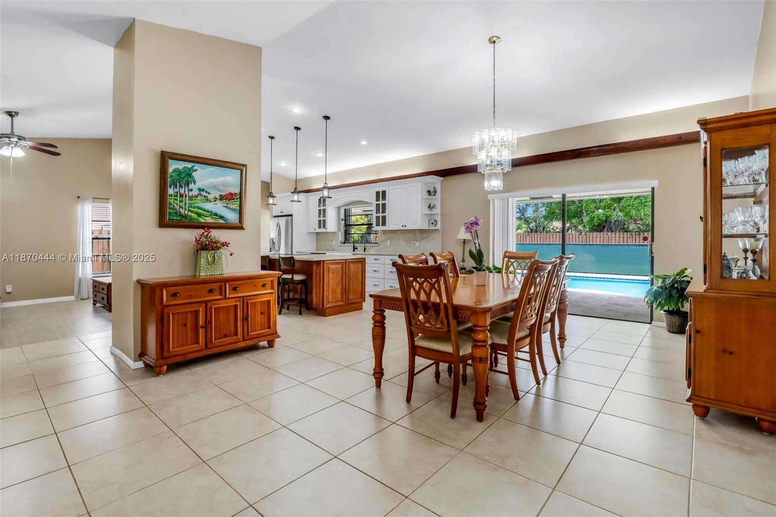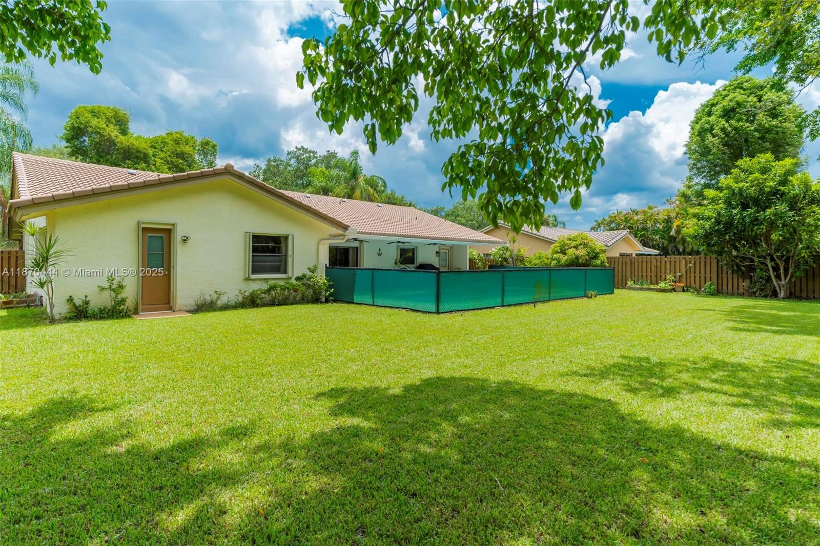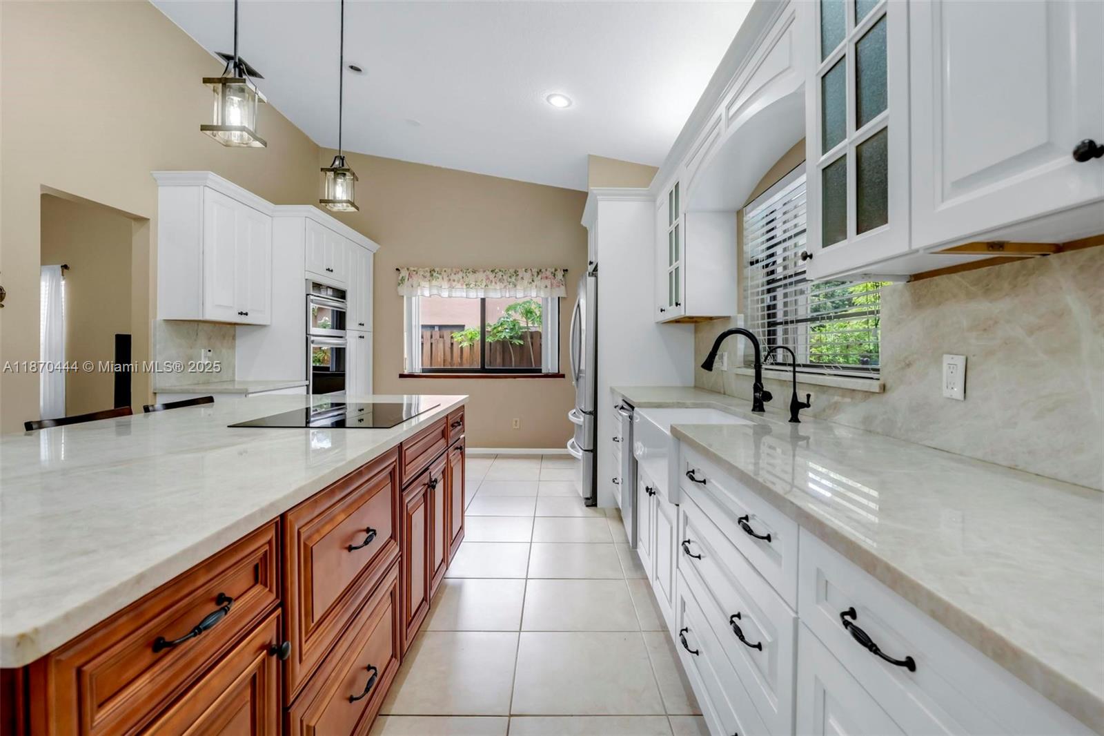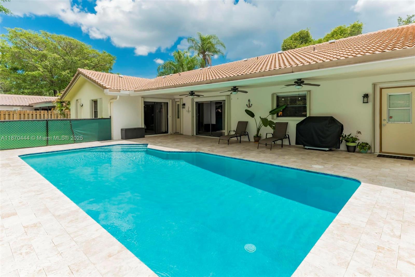 Stunning 4-Bedroom Home with Saltwater Pool – No HOA! Updated single-story 4-bed, 2.5-bath home in Coral Springs with 2,228 sq. ft. of open living space, vaulted ceilings, and tile flooring throughout. The gourmet kitchen features custom wood cabinetry, quartzite counters and backsplash, stainless appliances, and a 9-ft island with induction cooktop. Impact windows, accordion shutters, and a whole-house surge protector offer security and efficiency. Window blinds throughout for added privacy. Enjoy a fenced yard with fruit trees, travertine patio, and a resurfaced 15x30 saltwater pool with new pump and LED lights, perfect for entertaining. Walk to a top-rated elementary school. No HOA, enjoy the freedom! Schedule your showing today!