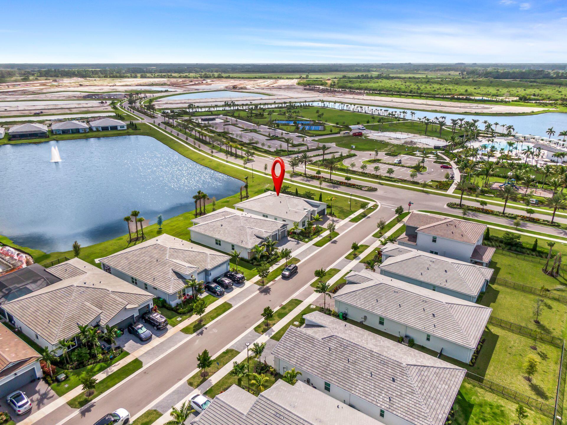Luxury Living in Seville - A Rare Corner Homesite with Long Lake ViewsImpeccably crafted in 2024, this elegant residence showcases refined finishes, timeless design, and one of Seville's most desirable corner lots. With expansive long lake views as the backdrop, the home offers a perfect blend of sophistication, comfort, and serenity.Inside, soaring ceilings and oversized wood-look tile floors create a bright, airy atmosphere. The open-concept great room is anchored by a striking custom porcelain fireplace and triple sliding glass doors, seamlessly connecting indoor and outdoor living.The gourmet kitchen is both stylish and functional, featuring quartz countertops, sleek cabinetry, double wall ovens, and a gas cooktop--perfect for everyday living or entertaining.