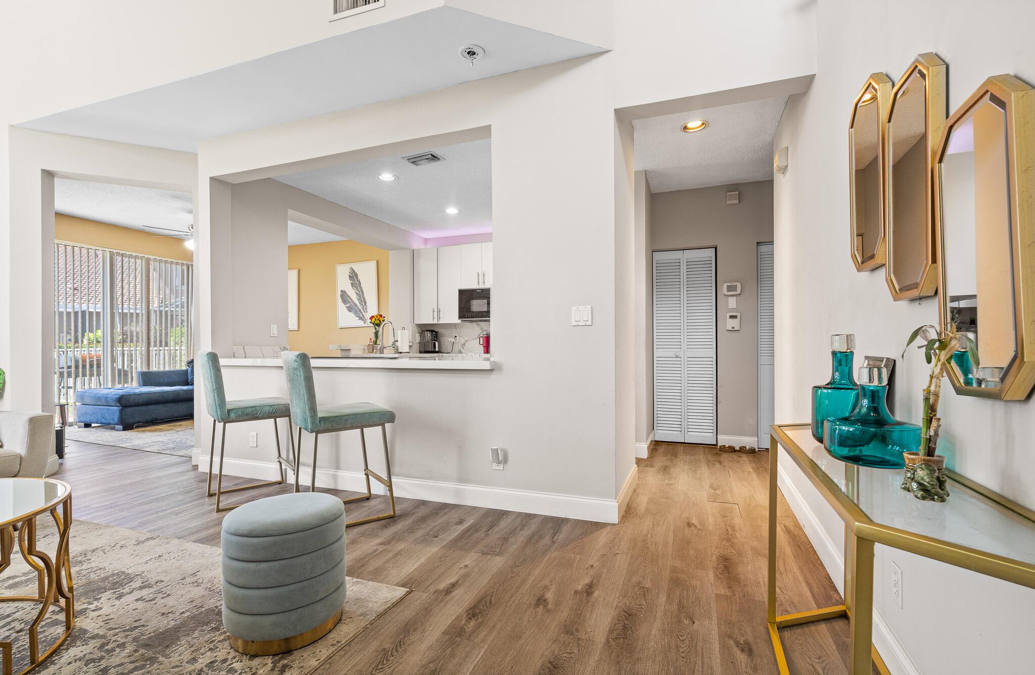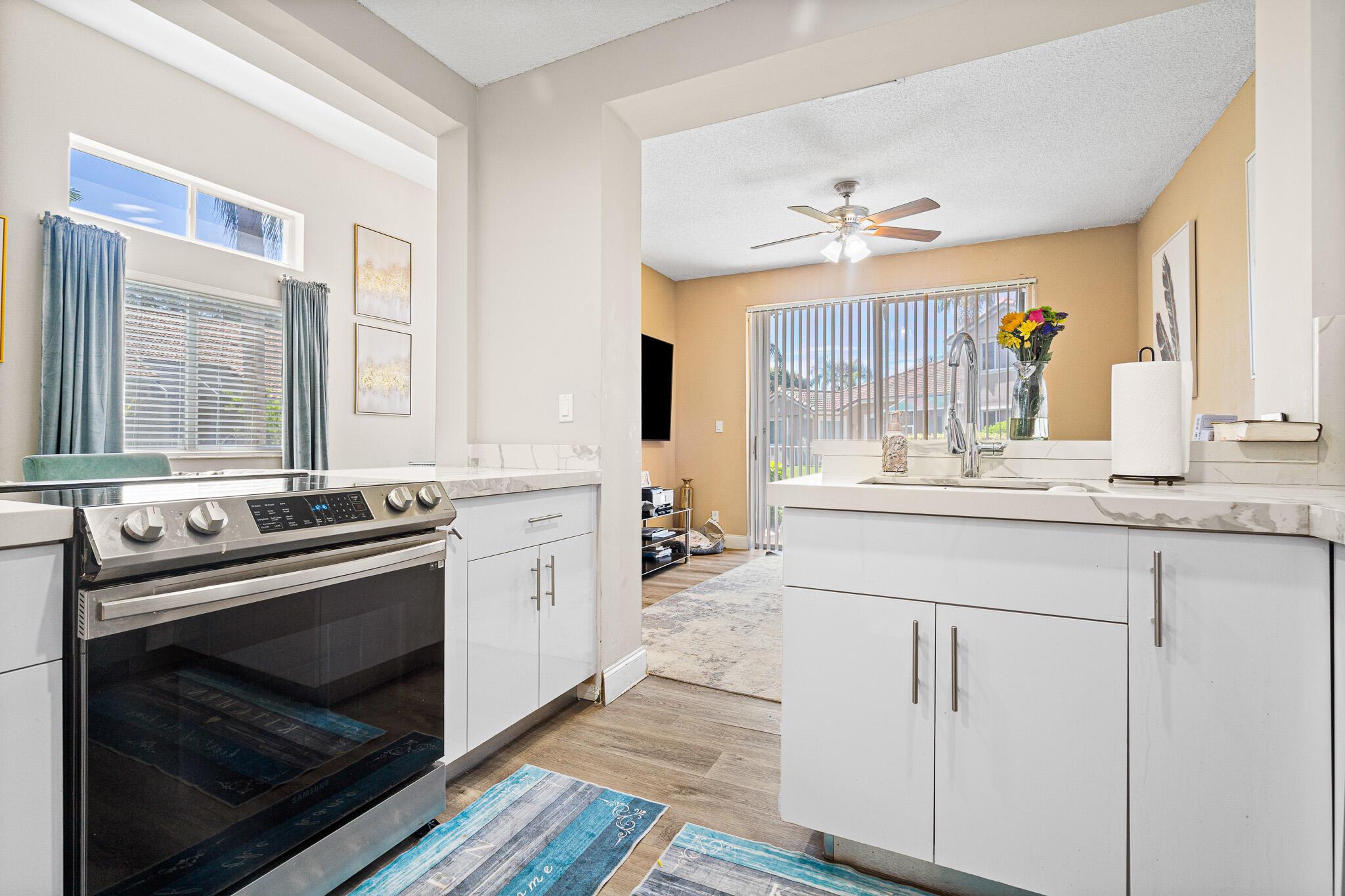Discover this beautiful corner lot townhouse in the sought after Grand Palms Golf and Country Club, offering the elegance of country club living without mandatory membership fees. The spacious open concept design features high ceilings, abundant natural light, and welcoming living areas. The modern kitchen is complete with stylish cabinetry, polished countertops, and stainless steel appliances ideal for home cooks and entertaining. The primary suite includes a walk-in closet and a well-appointed bathroom. As a corner unit, this home provides enhanced privacy, expansive windows, and a bright, airy atmosphere. Grand Palms is a gated, meticulously maintained community with golf course views, walking walking paths, and lush landscaping.