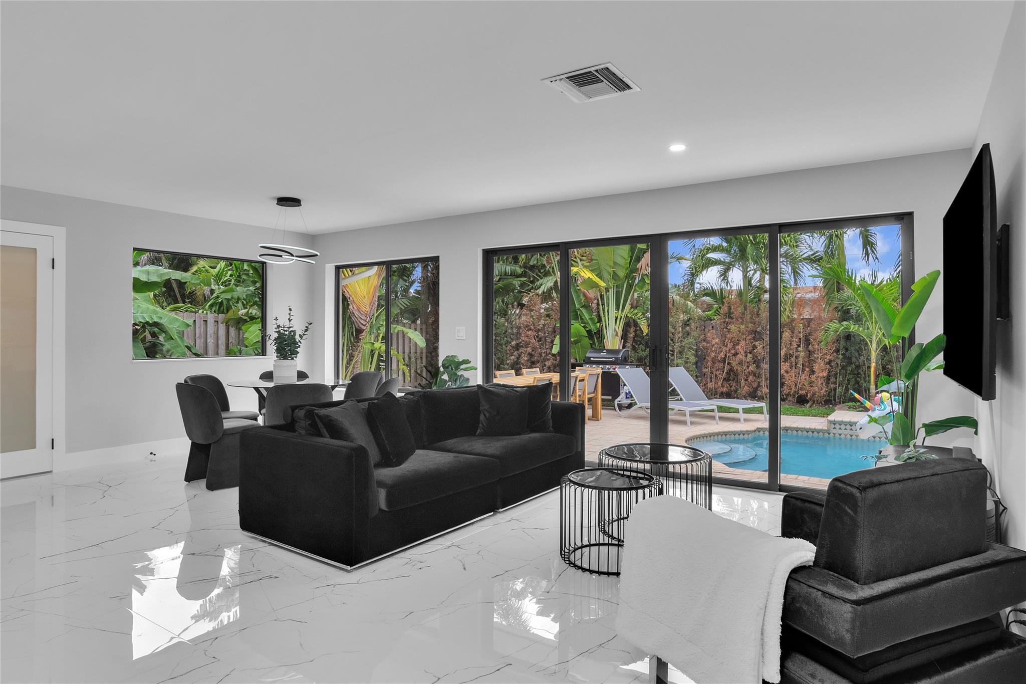 Prime Investment Opportunity or Perfect Family Home! Discover this beautifully remodeled 4-bed, 3.5-bath home in the desirable Jenada Villas of Wilton Manors. It features a modern kitchen with a striking waterfall island, perfect for cooking and entertaining. Elegant white porcelain tile flooring adds a luxurious touch, creating a contemporary ambiance. The open-concept layout flows seamlessly into an intimate outdoor oasis with a heated pool, ideal for relaxation and privacy. Smart, modern finishes enhance every corner, blending functionality with style. Located near top attractions, dining, and beaches, this move-in-ready home offers both luxury and convenience. Currently an Airbnb, it’s an excellent opportunity for investors or those seeking a modern home in a prime location.