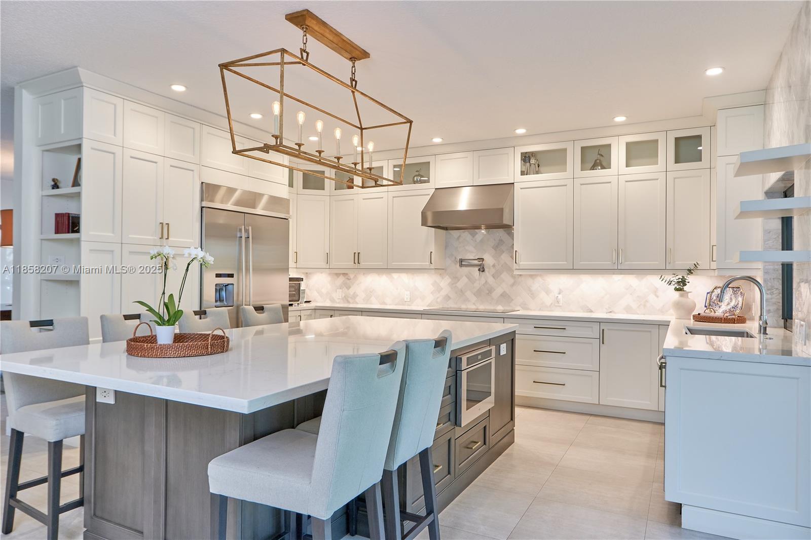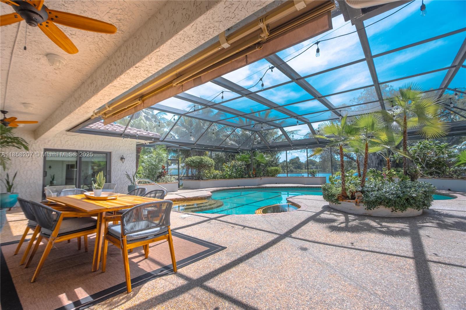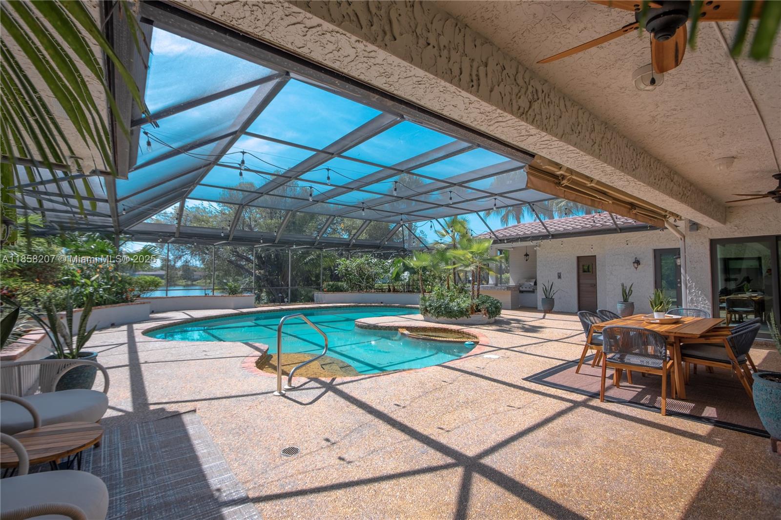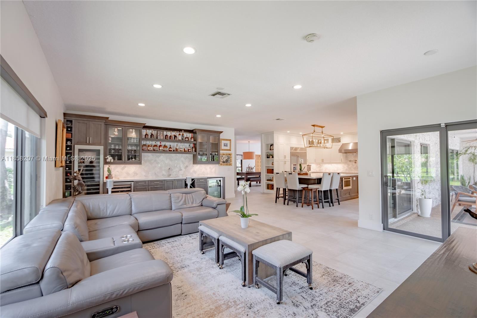 Experience refined living in this upgraded 5BR/3BA, privately situated on a 21,392 sq. ft. lakefront cul-de-sac lot, No HOA. Designed with timeless style and modern comforts, this home offers an unmatched lifestyle.The primary suite boasts tranquil views, a spa bath with dual rainfall showers, an automated TOTO toilet. The chef’s kitchen features custom cabinetry, quartzite counters, pot filler, premium appliances, and a butler’s station with wine refrigerator and beverage cooler. Impact windows, tile flooring throughout in grey/taupe, high-efficiency A/C, tankless water heater, propane tank with generator, and a climate-controlled 2-car garage. Outdoors, enjoy an oversized pool with extended awning, built-in BBQ, dock on the lake, sauna, lush landscaping with uplighting, & an RV outlet.