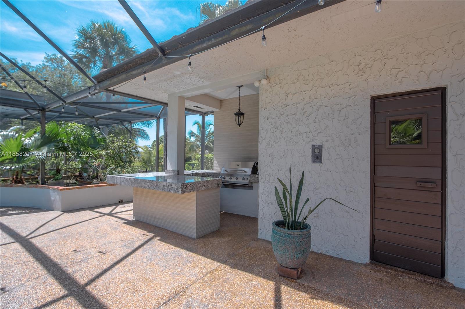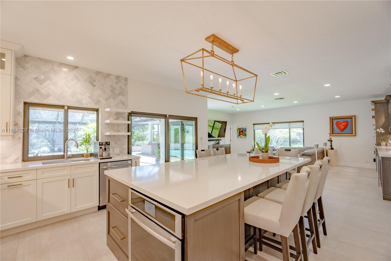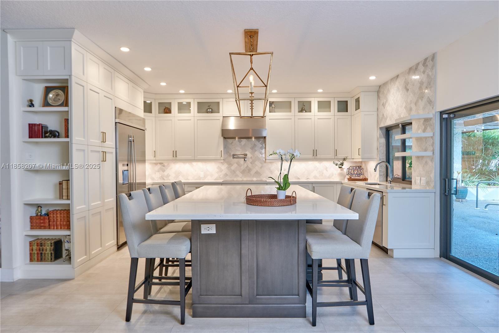 Experience refined living in this upgraded 5BR/3BA, privately situated on a 21,392 sq. ft. lakefront cul-de-sac lot, No HOA. Designed with timeless style and modern comforts, this home offers an unmatched lifestyle.The primary suite boasts tranquil views, a spa bath with dual rainfall showers, an automated TOTO toilet. The chef’s kitchen features custom cabinetry, quartzite counters, pot filler, premium appliances, and a butler’s station with wine refrigerator and beverage cooler. Impact windows, tile flooring throughout in grey/taupe, high-efficiency A/C, tankless water heater, propane tank with generator, and a climate-controlled 2-car garage. Outdoors, enjoy an oversized pool with extended awning, built-in BBQ, dock on the lake, sauna, lush landscaping with uplighting, & an RV outlet.
