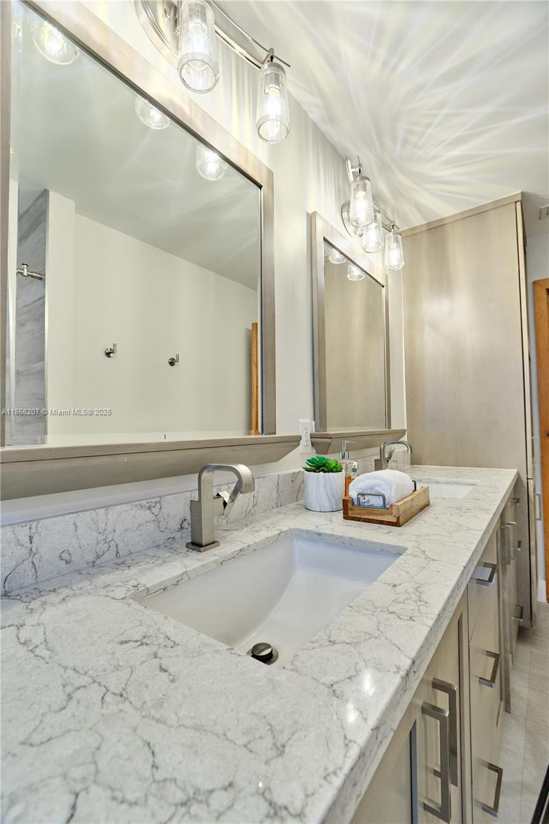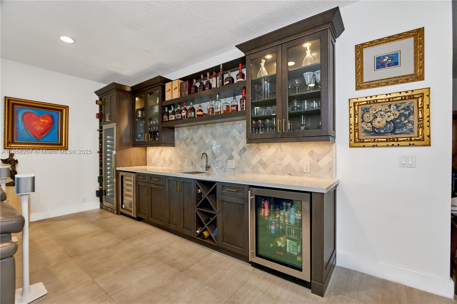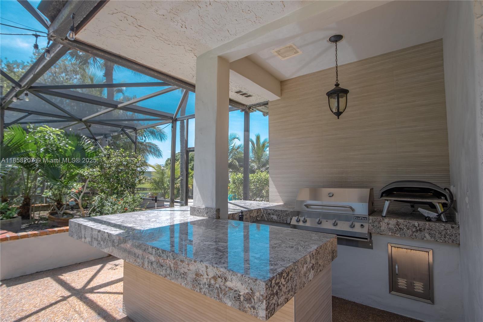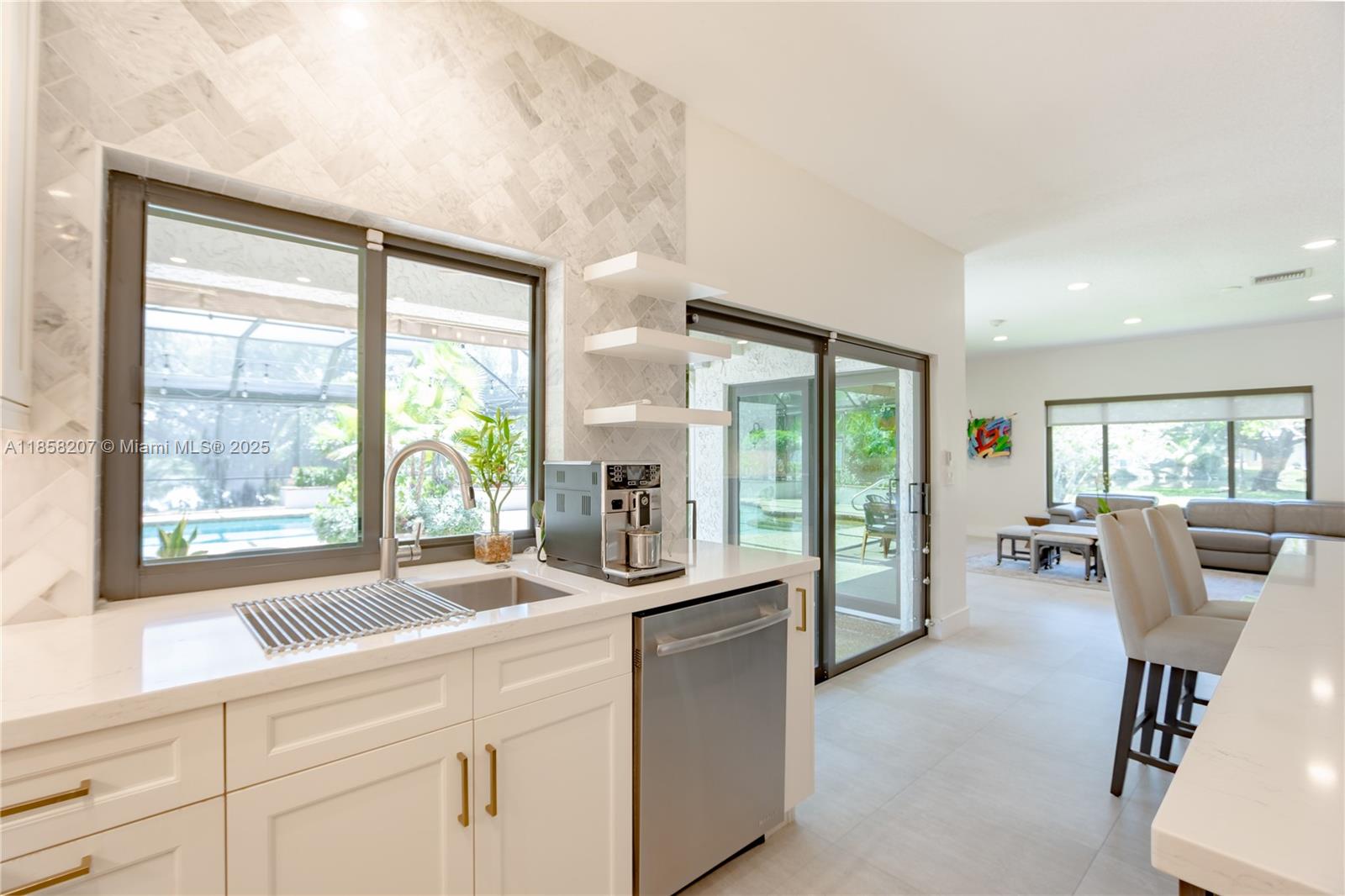 Experience refined living in this upgraded 5BR/3BA, privately situated on a 21,392 sq. ft. lakefront cul-de-sac lot, No HOA. Designed with timeless style and modern comforts, this home offers an unmatched lifestyle.The primary suite boasts tranquil views, a spa bath with dual rainfall showers, an automated TOTO toilet. The chef’s kitchen features custom cabinetry, quartzite counters, pot filler, premium appliances, and a butler’s station with wine refrigerator and beverage cooler. Impact windows, tile flooring throughout in grey/taupe, high-efficiency A/C, tankless water heater, propane tank with generator, and a climate-controlled 2-car garage. Outdoors, enjoy an oversized pool with extended awning, built-in BBQ, dock on the lake, sauna, lush landscaping with uplighting, & an RV outlet.