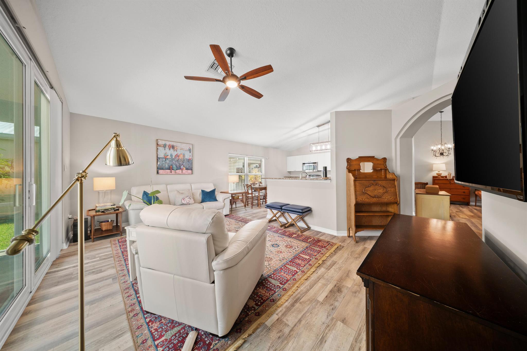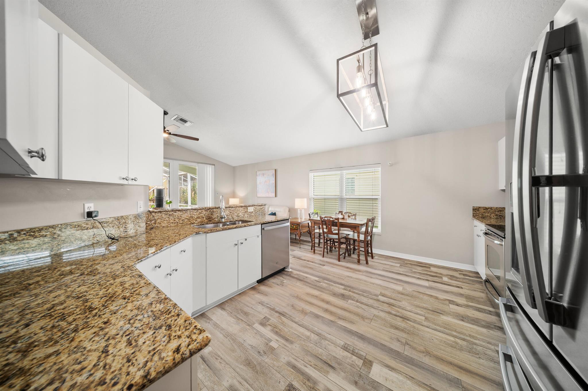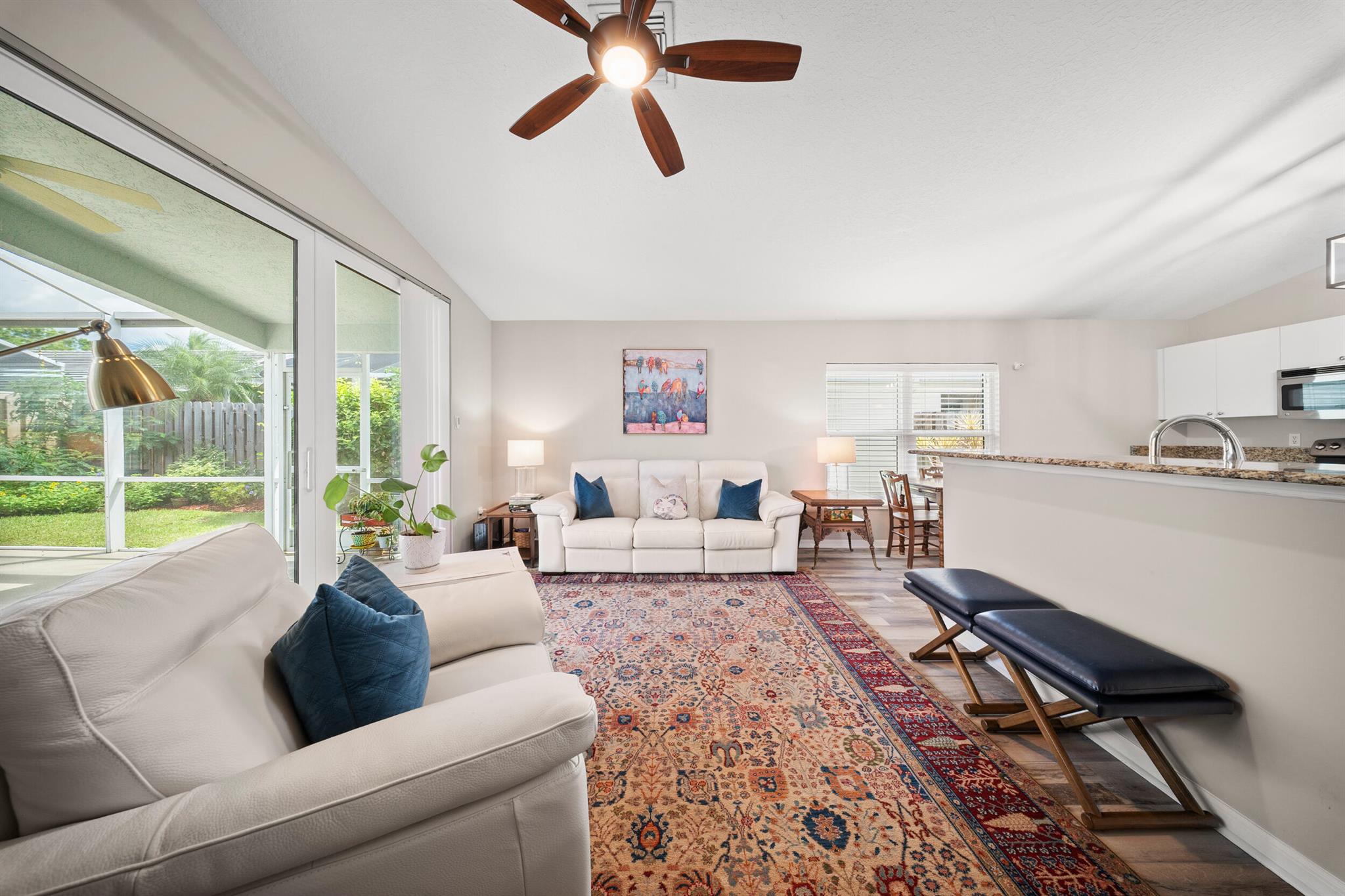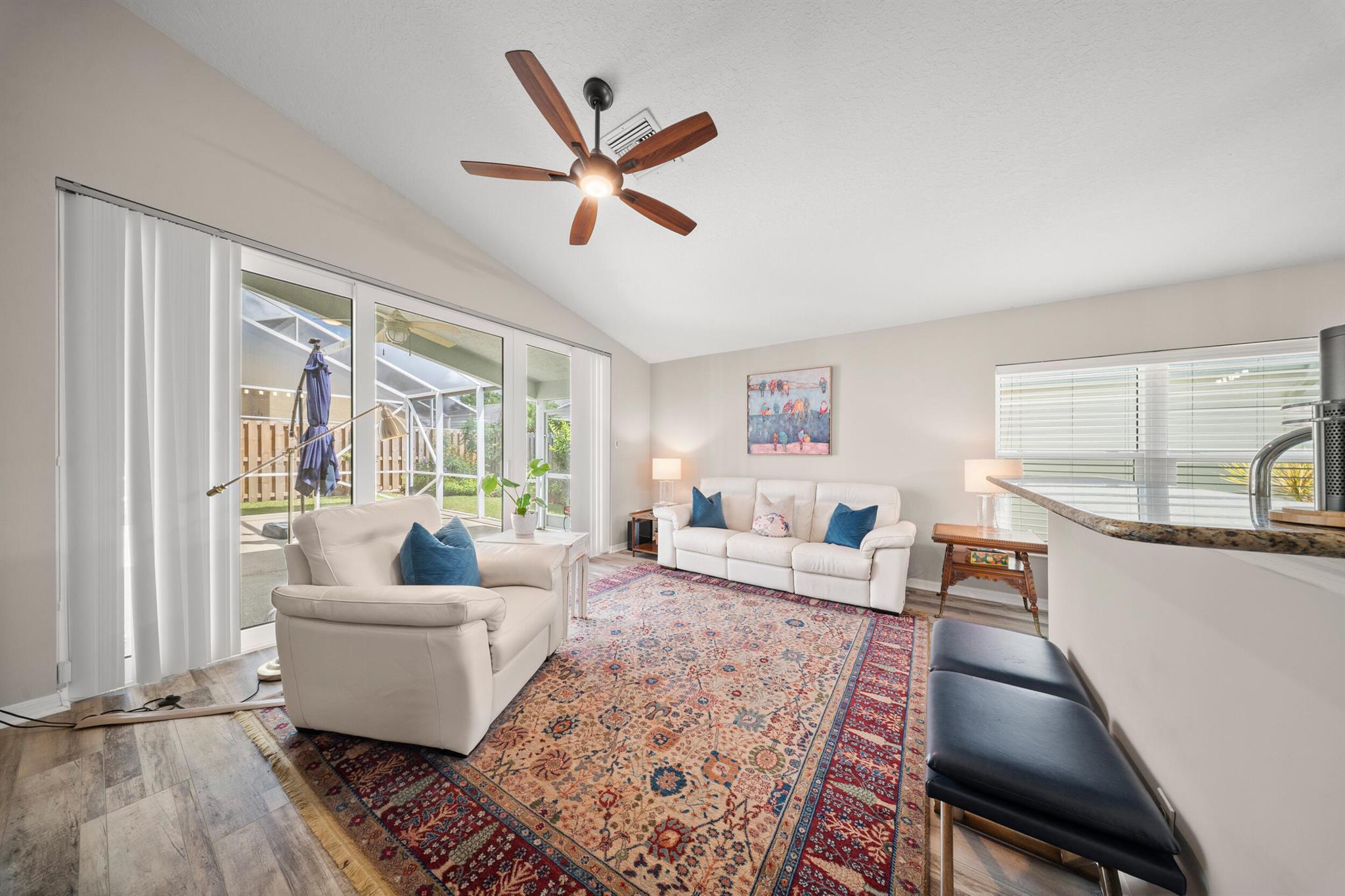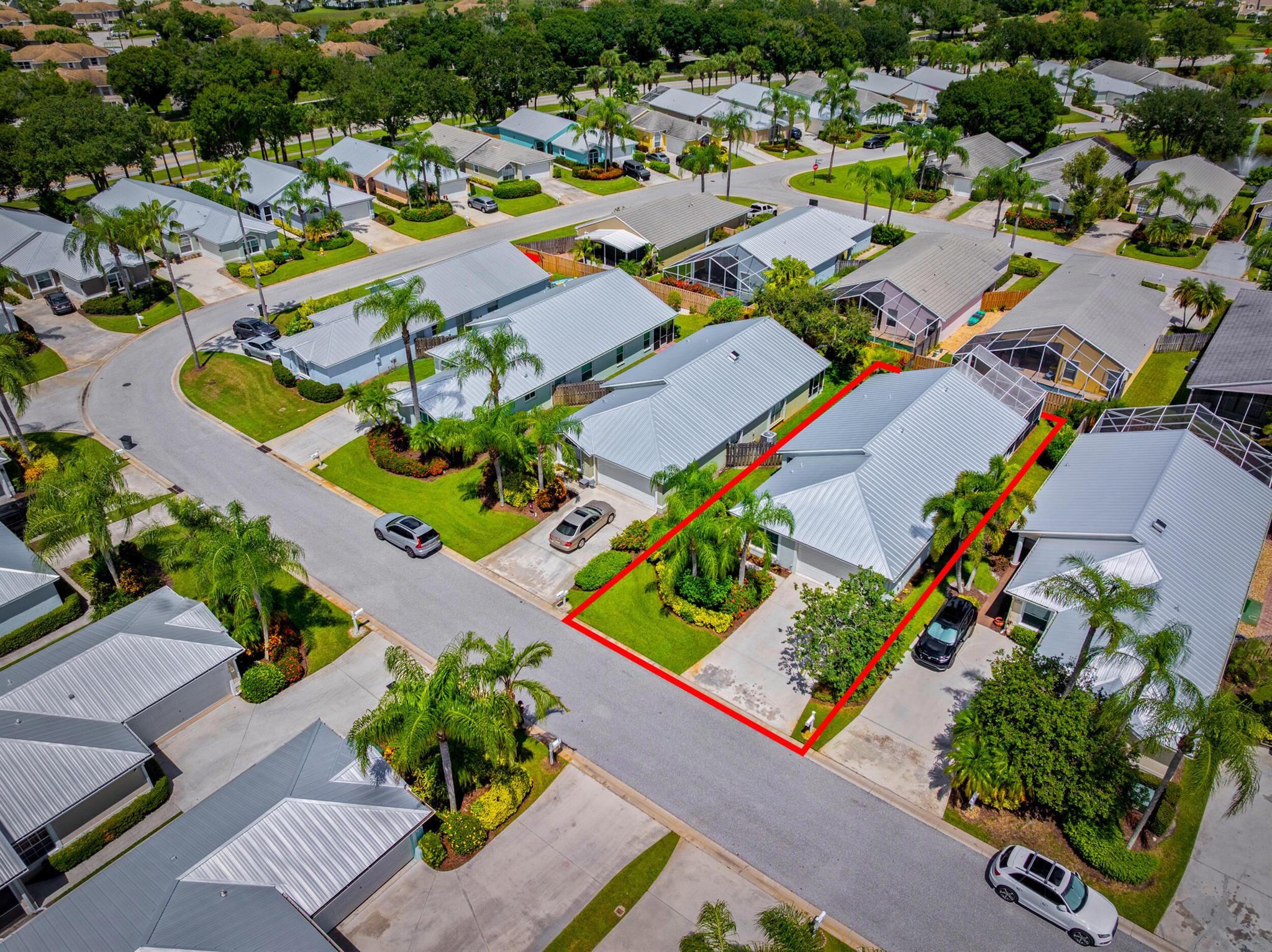 This CBS, move-in ready and exceptionally maintained 3/2/2 home is in a very sought after and popular community in Palm City. A-rated schools (middle school within walking distance), grocery stores, excellent restaurants and the beautiful beaches of Martin County. This home boasts a new standing seam metal roof installed May 2024, 2023 PGT vinyl impact glass windows throughout, 2019 Trane AC, 2023 complete exterior professionally painted, 2025 hot water heater, 2025 high end GE Profile dishwasher and refrigerator, 2024 LG washing machine, 2024 tiled front porch. Home also boasts luxury vinyl plank flooring in all living areas and master bedroom. Lowest HOA fee in Palm City at $325/month. Includes: full service property manager, accountant fees, front/side yard lawn maintenance, cable TV,
