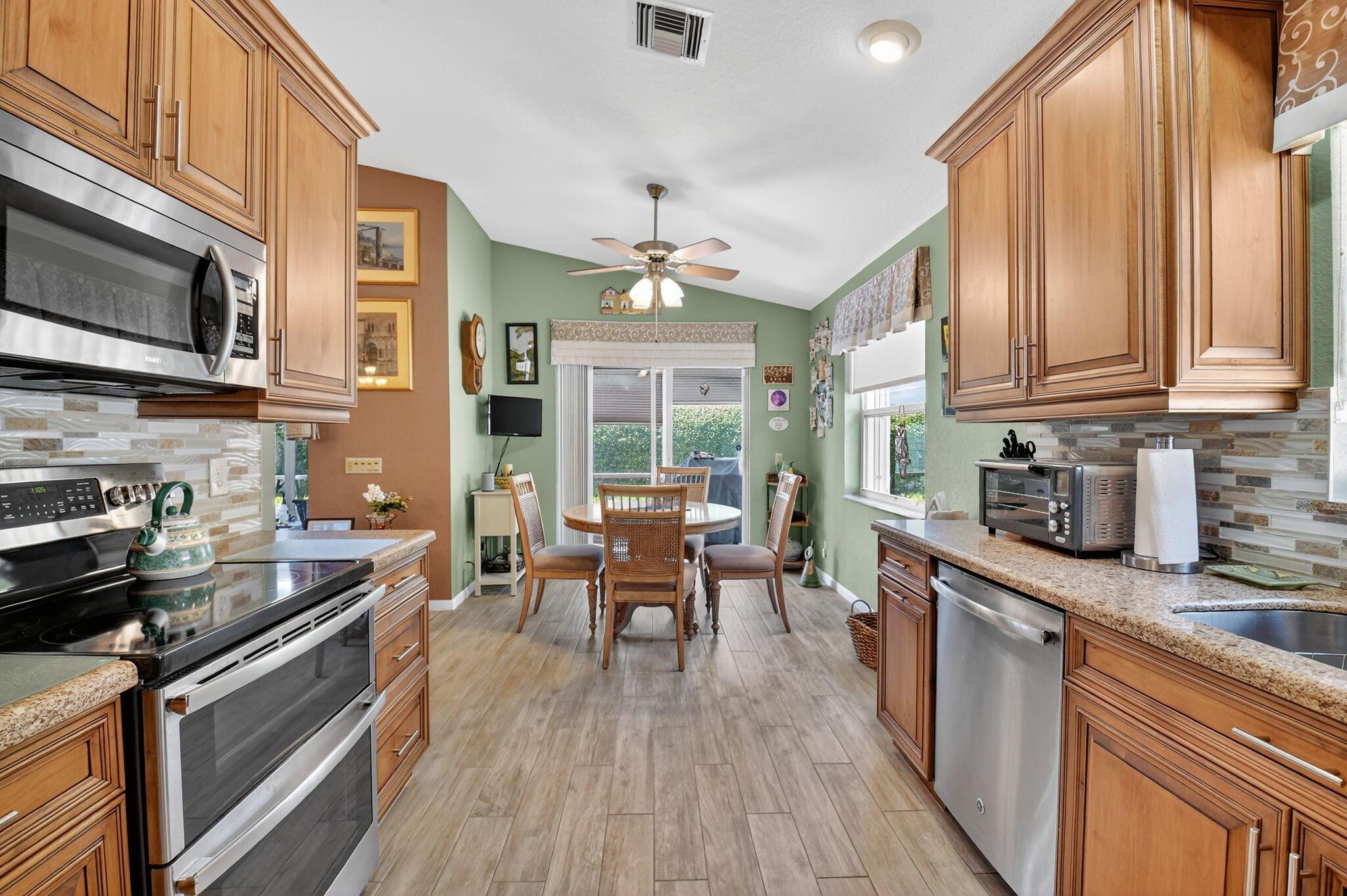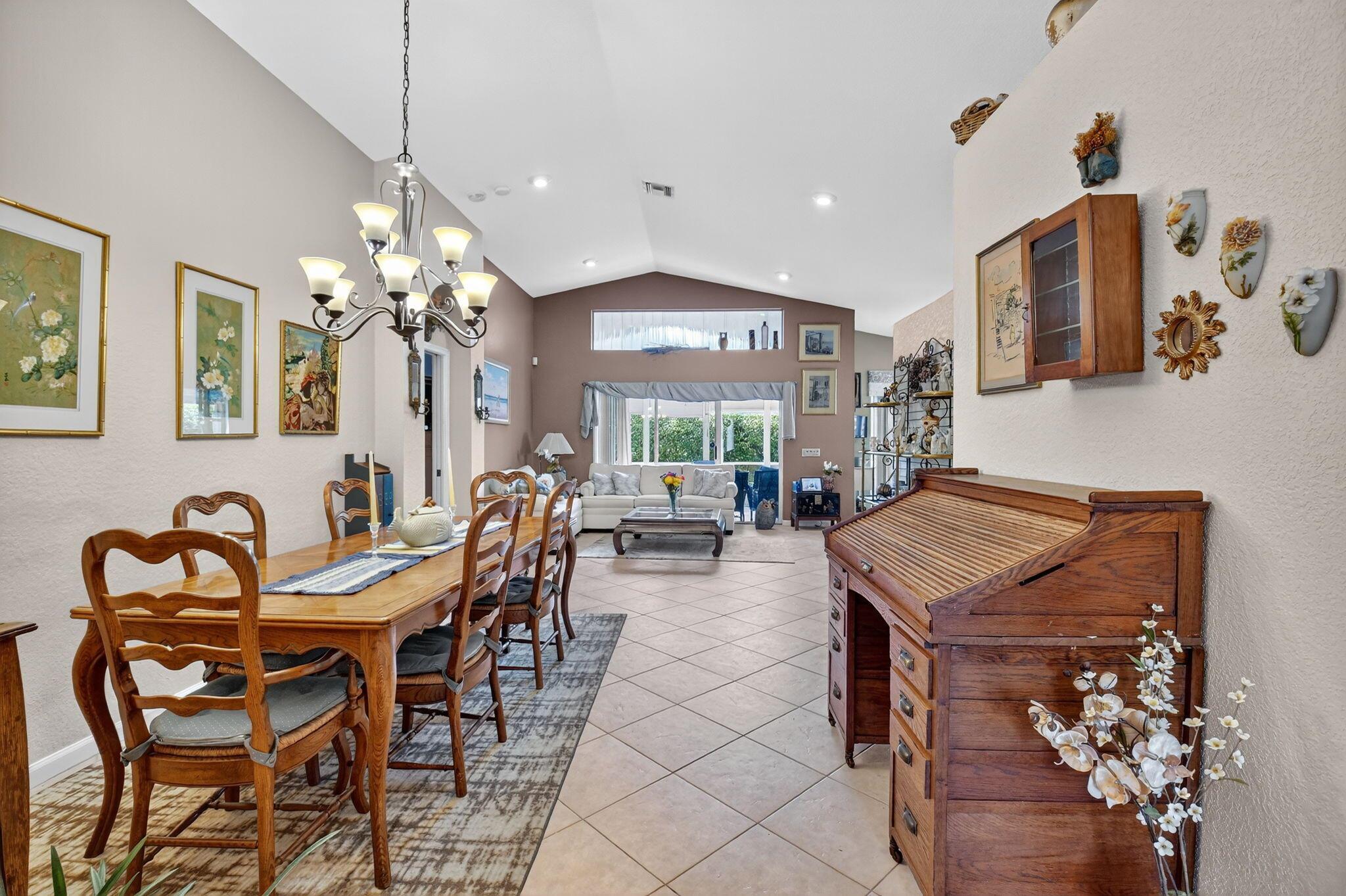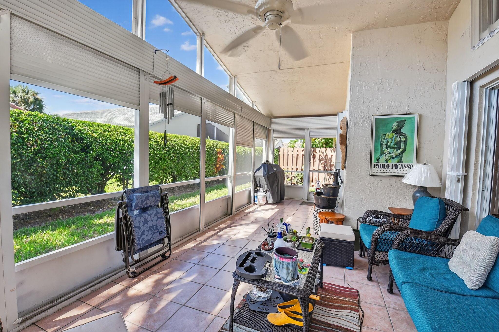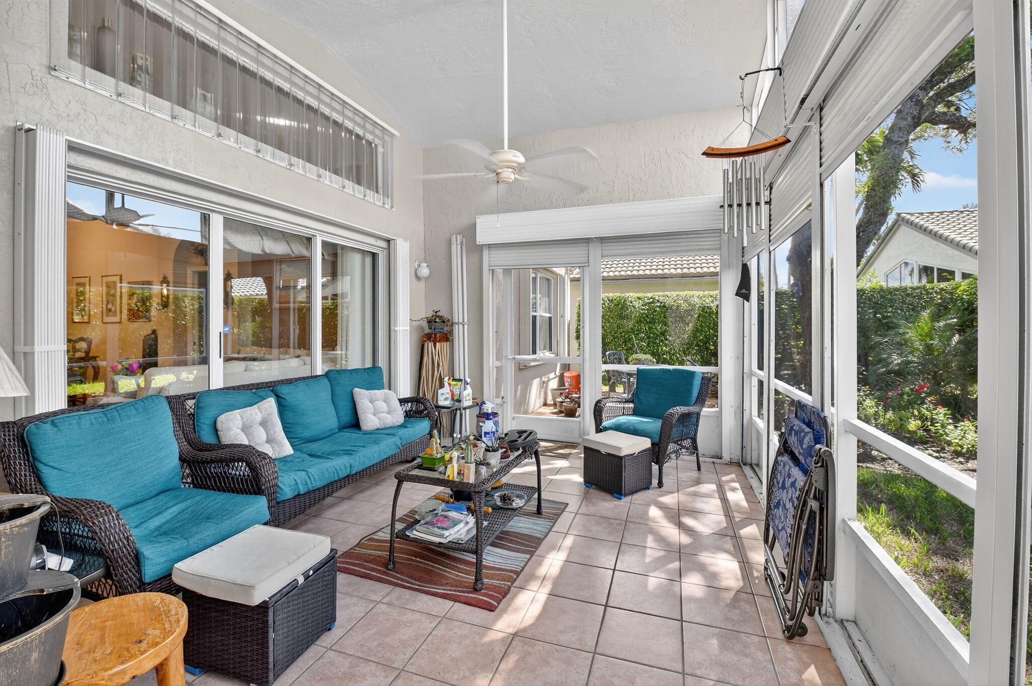 Welcome Home! This is a stunning, modified Augusta model that boasts 3 true bedrooms, 2 full updated bathrooms, NEW ROOF IN 2021 and a 26 x12 screen enclosed patio. From the moment you step into the home you are greeted with a foyer & volume ceilings which make this home spacious, bright, warm and inviting. There is neutral tile in all living areas & the 2nd bedroom and carpet in two of the bedrooms. A spacious UPDATED EAT-IN KITCHEN WITH WOOD CABINETRY & PULLOUTS, CORIAN COUNTERTOPS, FULL STONE BACKSPLASH and SS appliances. Entertaining is a pleasure as there is a great room right off of the kitchen. There is a spacious owner's suite which consists of 2 CUSTOM FITTED walk-in closets, an updated sumptuous bath with dual sinks, a large soaking tub, a step-down shower and SEE ''MORE''