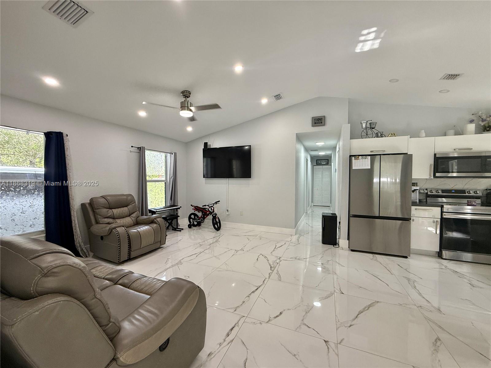 Great opportunity to buy a corner home, completely remodeled (2023), has an open concept living. kitchen with white cabinets and quartz countertops and brands new stainless steel appliances. There are beautiful windows for plenty of natural light, with an entrance that you can potentially park a boat, RV, or a truck. The community has a super low association fee. Patio completely fenced in. FHA welcome. Just come to see it and your clients will be in love. it is possible that the seller may need a post-occupancy for a month. SOLD AS-IS. NO LOW BALL OFFERS PLEASE!! For showings please text the co-listing agent.