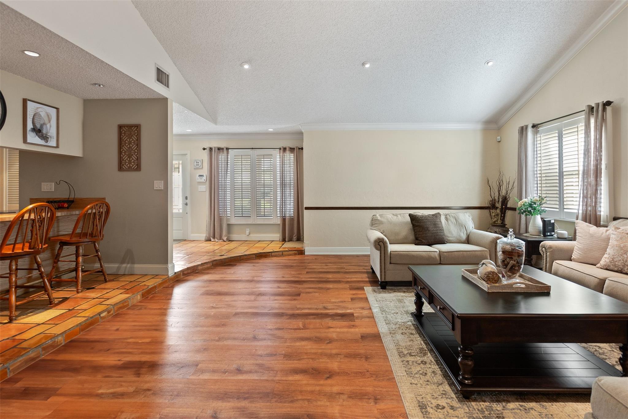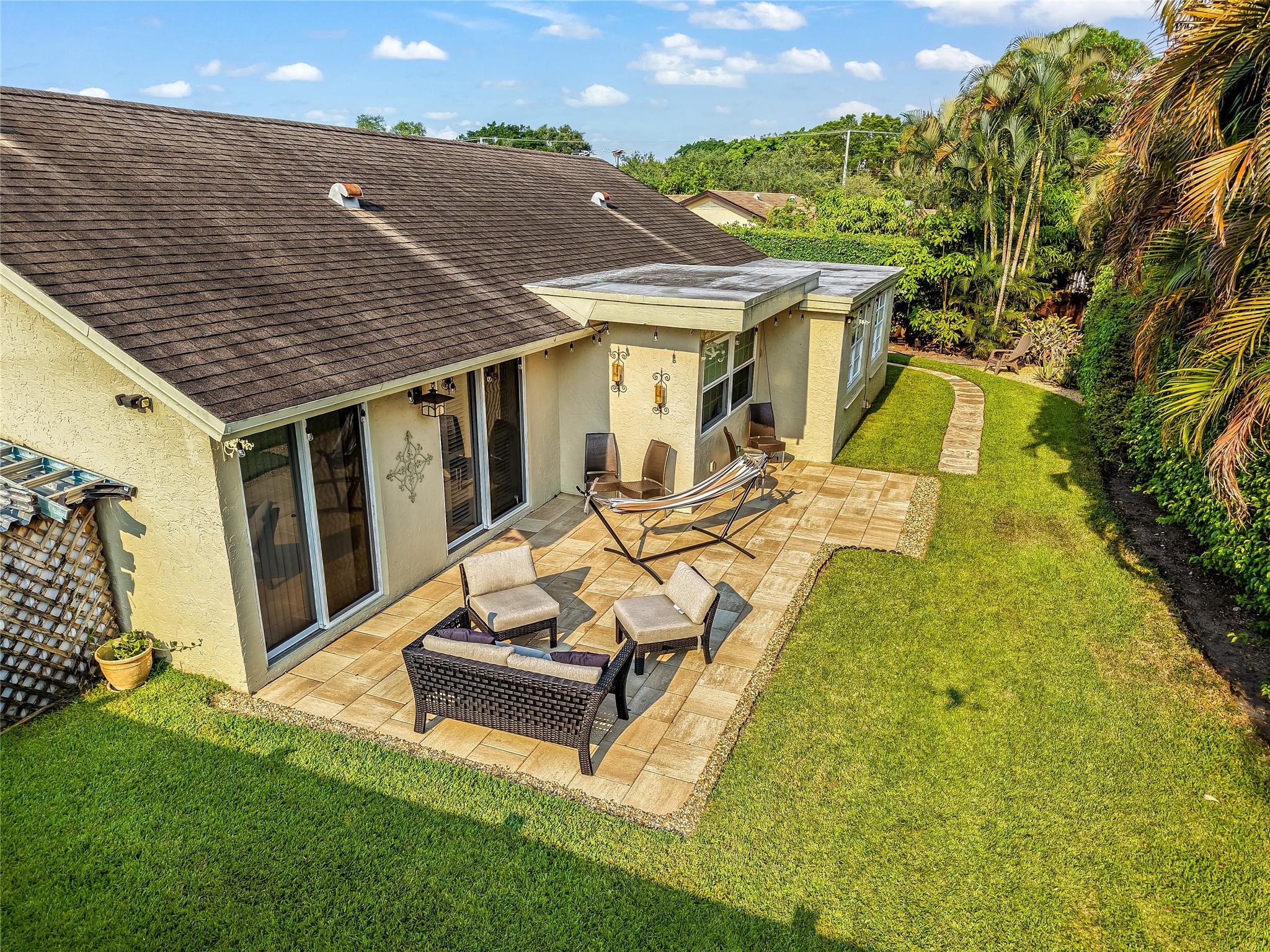 This Margate single family home offers 3 bedrooms, 2 bathrooms, plus a den that can easily be converted into a 4th bedroom, along with a 2 car garage and a driveway large enough for 6 cars. The interior boasts Spanish tile floors, vaulted ceilings, recessed lighting, plantation shutters, and impact windows that bring both style and security. A kitchen with newer appliances connects seamlessly to open living and family areas, creating an inviting space for gatherings. Step outside to enjoy a professionally landscaped yard, private patio with fire pit, and a fenced backyard with room to add a pool. With no HOA and a location near schools, shopping, golf courses, and Calypso Cove water park, this home is as practical as it is comfortable.