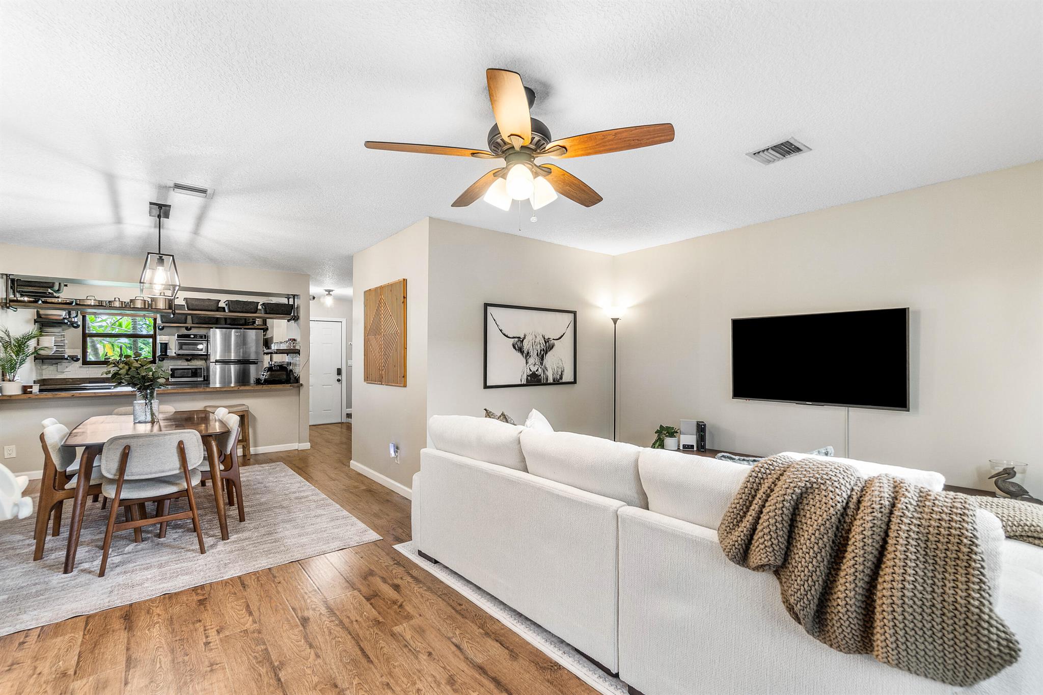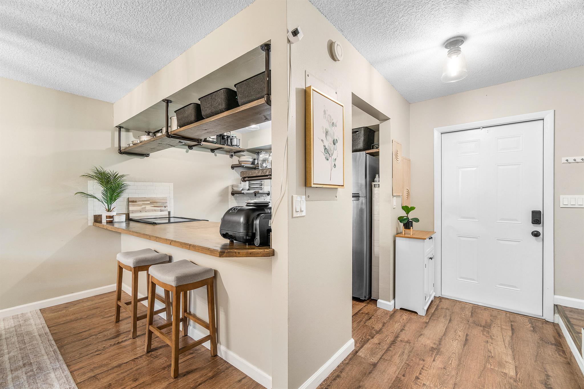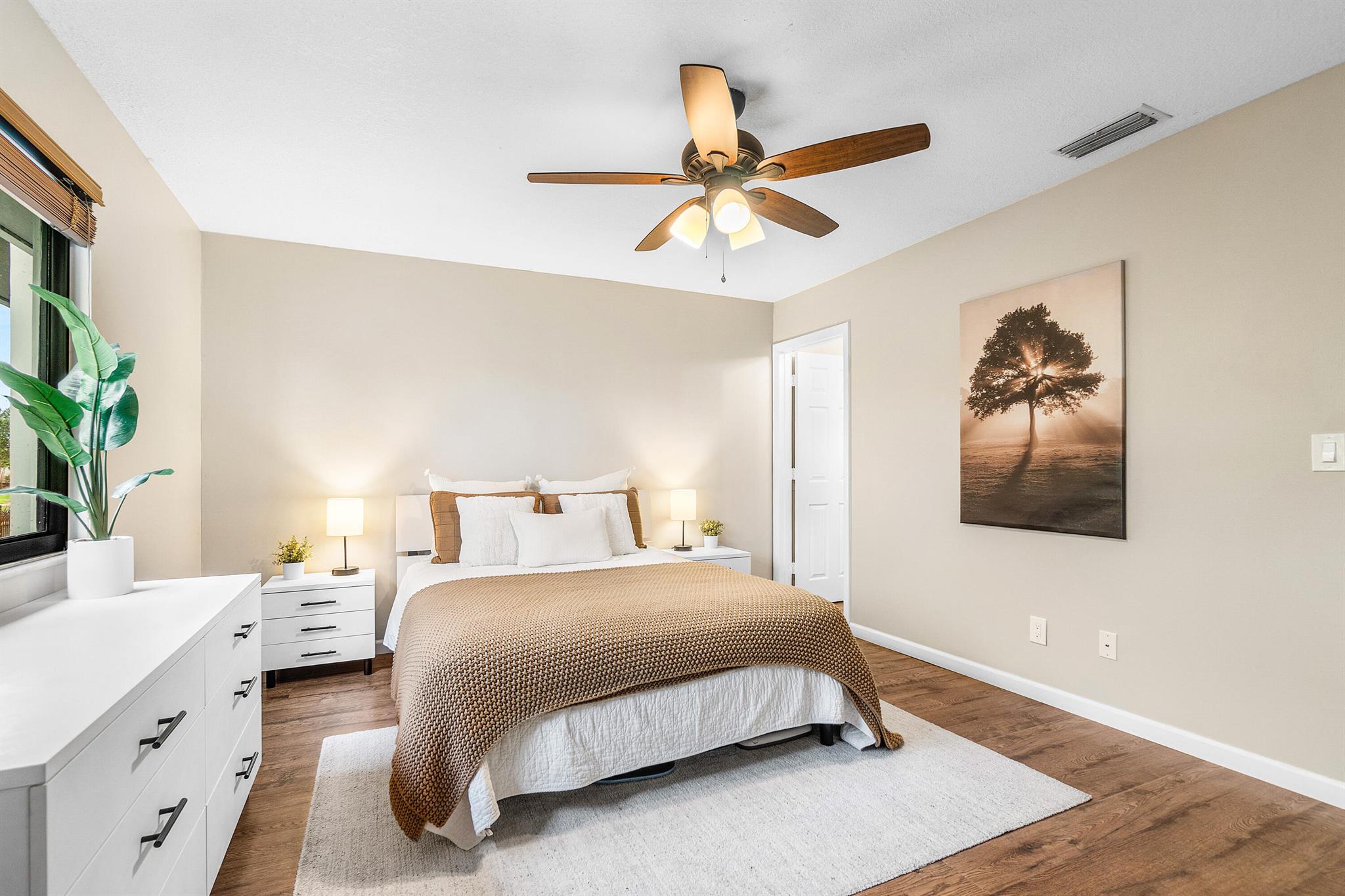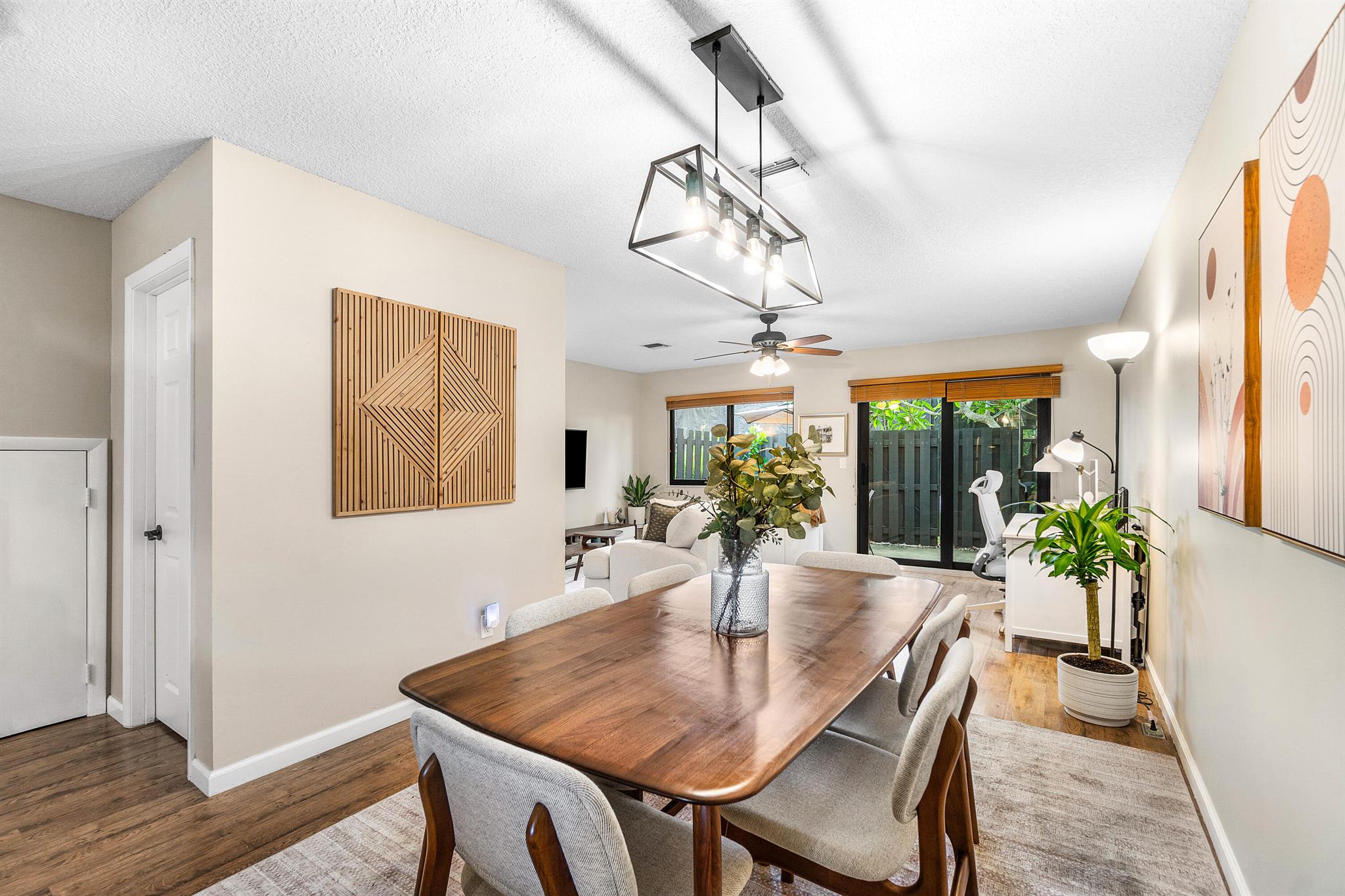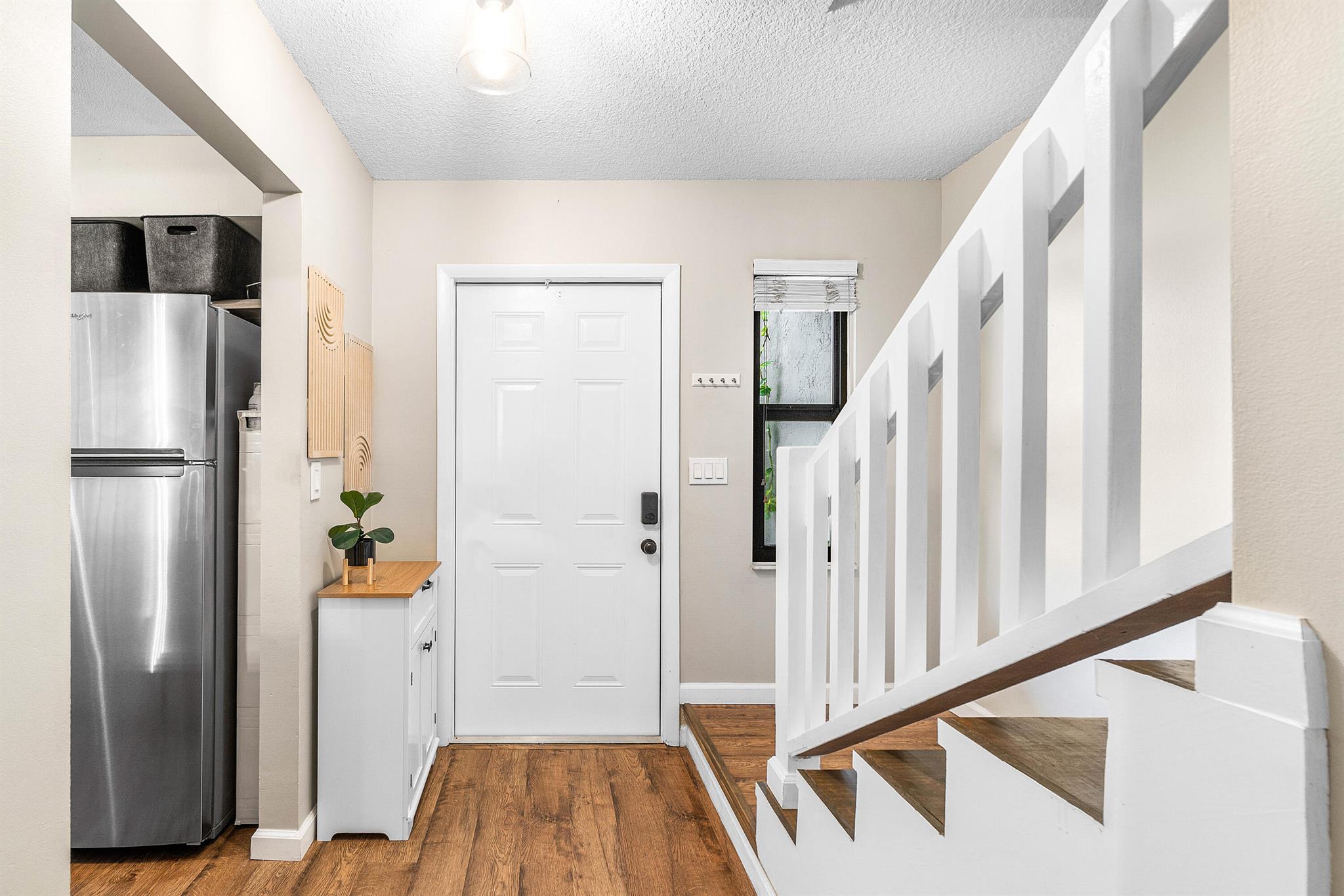 Beautifully updated 2-bed, 2.5-bath townhouse with same vinyl flooring throughout and brand-new 2025 impact windows. Features include new shower glass doors, 2025 kitchen sink/faucet, and two upstairs master suites. Enjoy the fenced patio with 2023 awning and 2024 fence. Systems and appliances are well maintained: dryer 2024, washer 2018, water heater 2021, AC 2018, kitchen appliances 2018. Roof and exterior paint done in 2022. HOA covers building maintenance and amenities. Investor friendly - rent right away. Peaceful community with easy access to Lake Worth Rd, Jog Rd, and the Turnpike.
