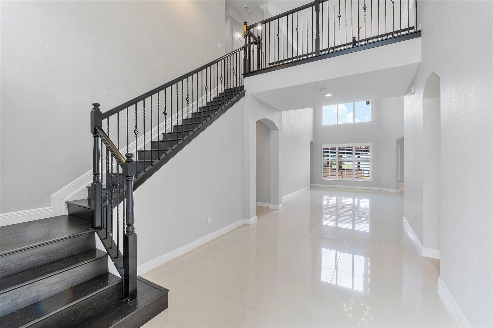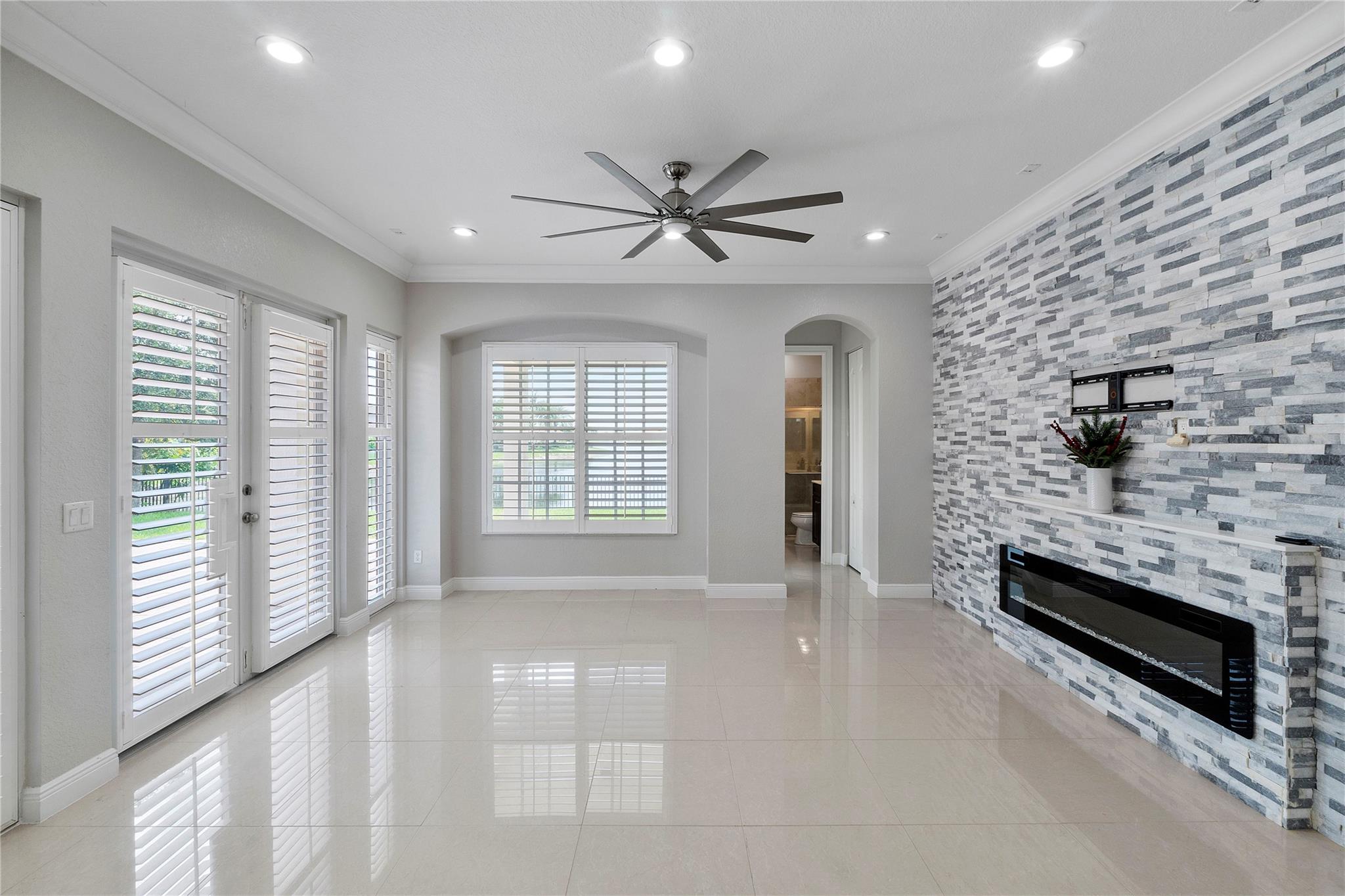 Stunning lake front home with breathtaking views in MiraLago at Parkland with gorgeous features and UPGRADES! This estate home features 6 bedrooms, 6.5 Baths, an office, and a spacious loft that could easily be converted into an additional bedroom. Magnificent kitchen with all stainless steel appliances, hardwood floors upstairs, wrought iron banister, plantation shutters, marble flooring downstairs, and a stylist brick wall with a fireplace. The spacious first floor primary suite boasts a luxurious spa retreat bathroom and extended walk-in closets. ALL INCLUSIVE AMENITIES include Olympic pools, Fitness Center, Splash Park, Indoor basketball, Playground and access to MiraLago & Cascata clubhouses. A-rated schools from Elementary to High School. Come experience the best of Parkland living.