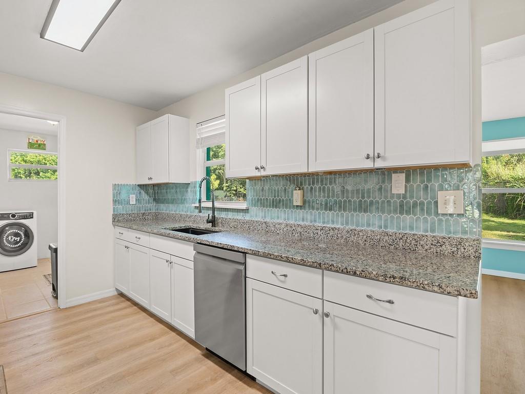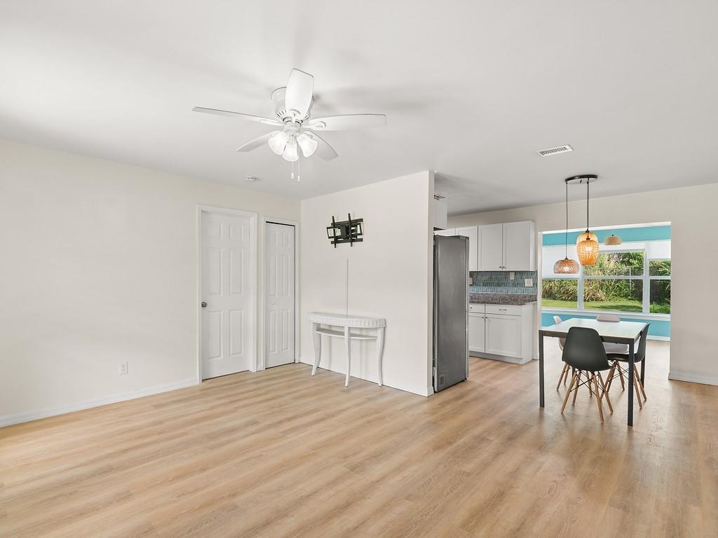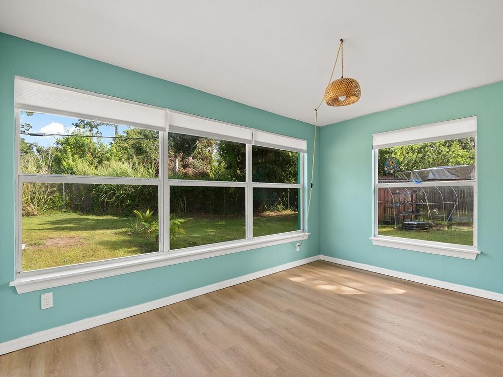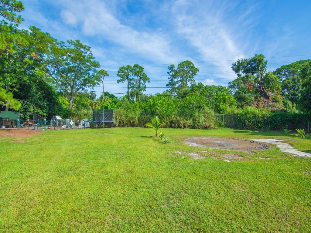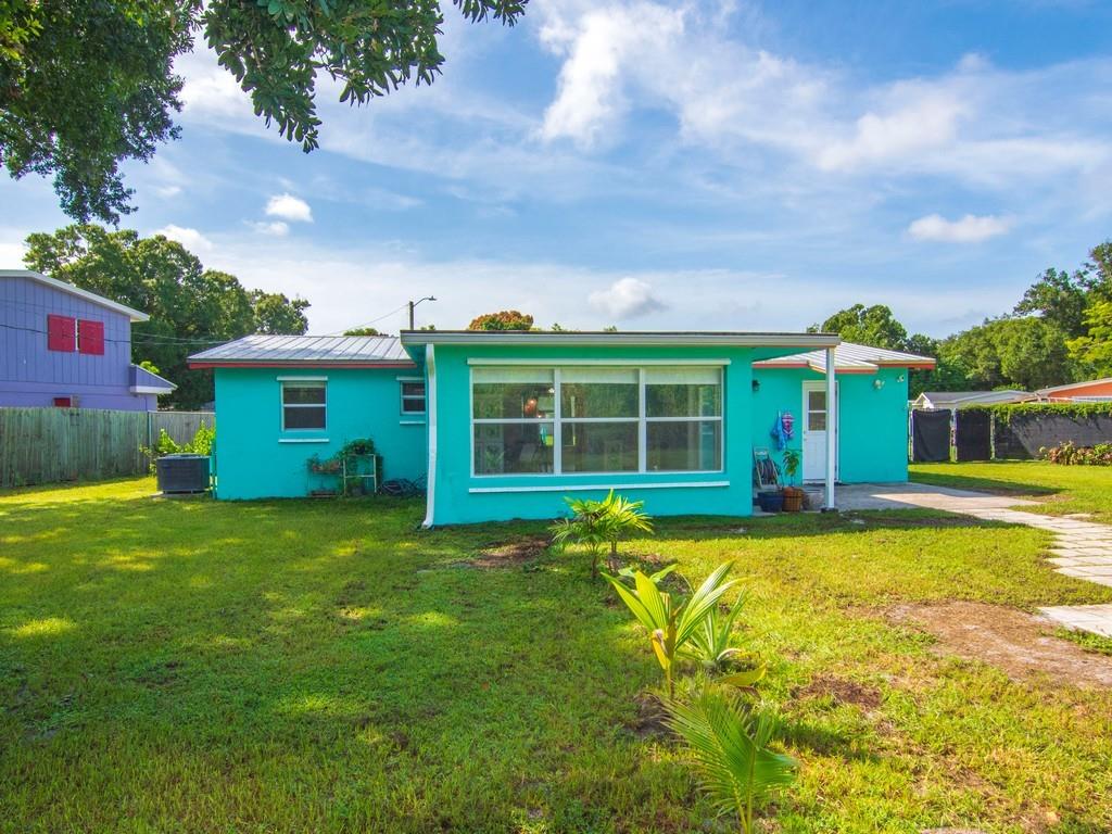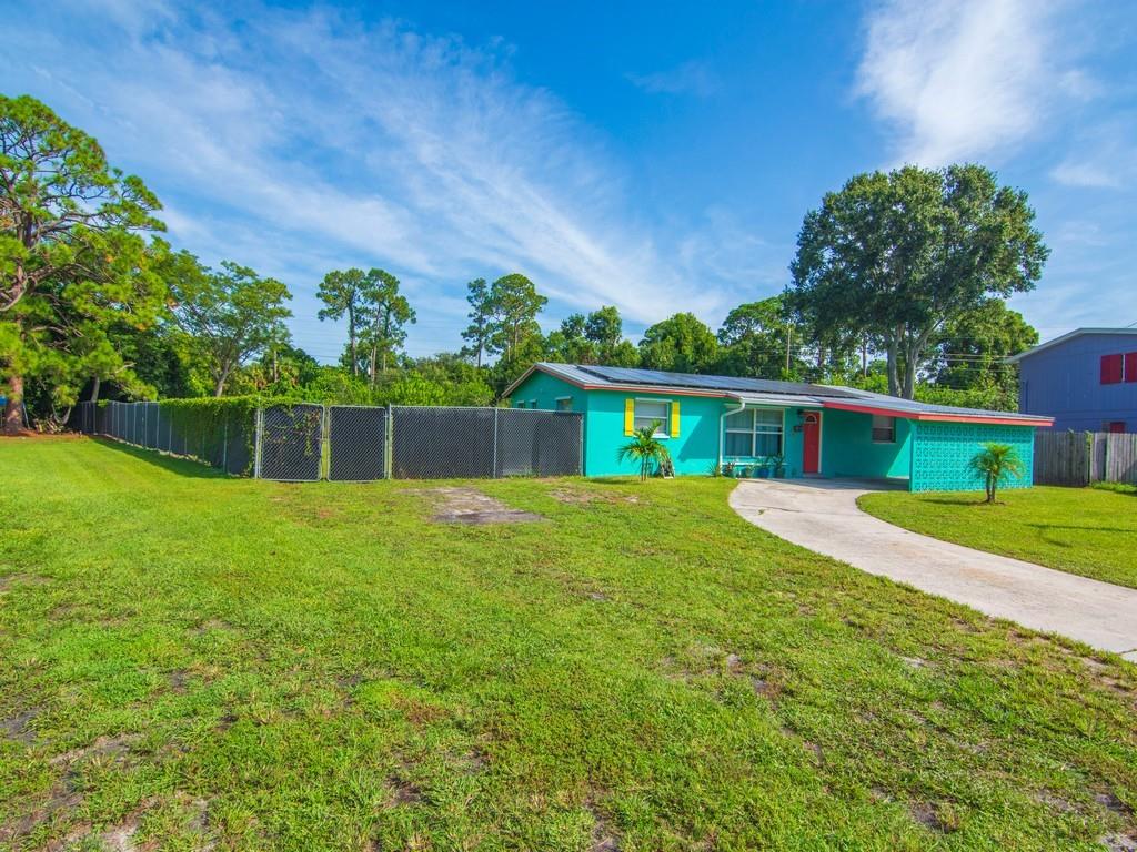 A MUST SEE! The photos can’t capture the full charm! 100% Move-in ready 3-bedroom, 2-bath CBS home on almost 1/2 an acre. This is a fully fenced corner lot in Vero Beach, Florida. Many new updates and features include luxury vinyl floors, updated kitchen cabinets with granite counters, Over-sized modern stainless sink, stainless steel appliances, fresh interior & exterior paint, new gutters, metal roof, paid-off solar panels and more! A dedicated laundry room and a Bonus sunroom that can serve as a 4th bedroom, office, or playroom. No HOA — room for a pool, detached garage or RV parking. The backyard is amazing! Only 15 mins to the beach and 10 mins to downtown Vero and 7-10 minutes to US-1 and shopping.
