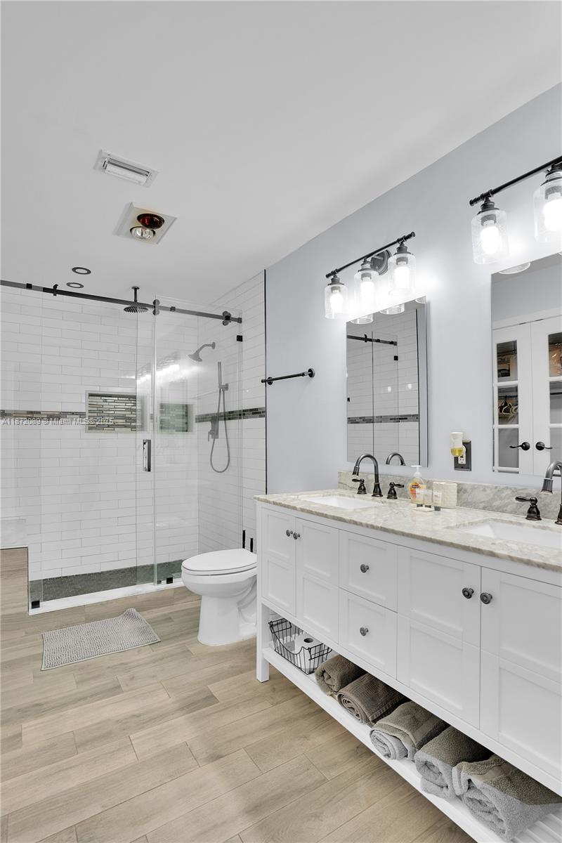Luxurious Home with Guest Quarters. This stunning 3,700 square foot home boasts a spacious main house with 5 bedrooms and 2 bathrooms, plus a separate guest/in-law quarters with 1 bedroom and 1 bathroom, ideal for visitors or extended family. This house offers an expansive layout, remodeled, updated bathrooms and kitchen. The master suite is located separately from the other bedrooms adding privacy with a private exit to the backyard, a huge walk-in closet connected with the beautiful master bathroom. The backyard is a true oasis, featuring a large pool and jacuzzi, expansive terrace, and fully fenced yard. The property is equipped with a complete security camera system and features a professional irrigation system supplied by well water. A double garage provides ample parking space. This community includes security, pools, clubhouse, lake trails, tennis, pickleball and basketball courts.