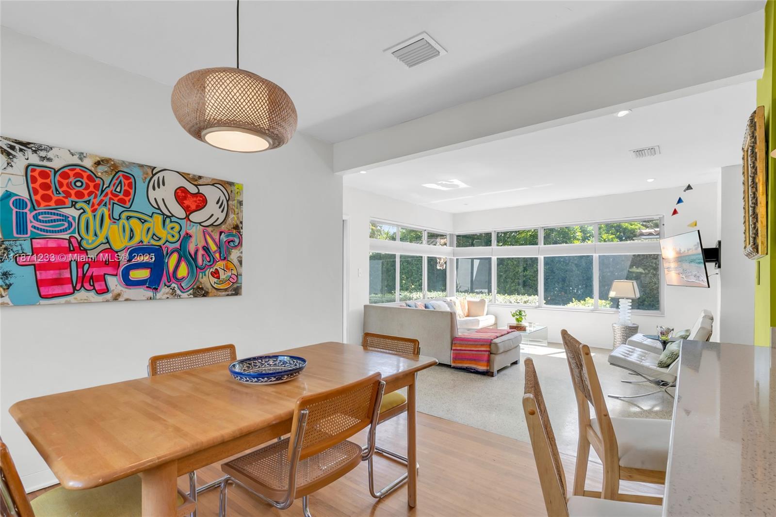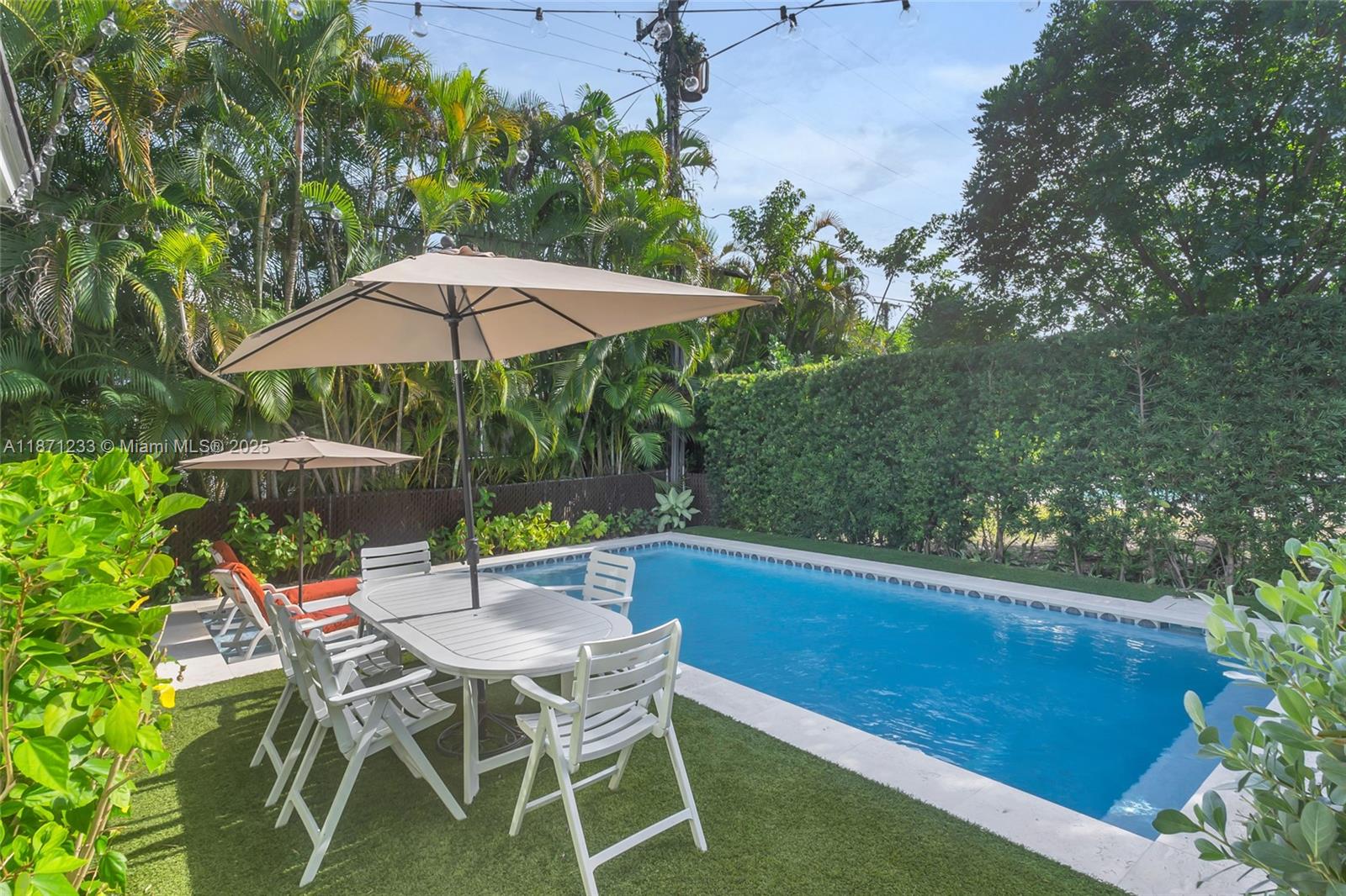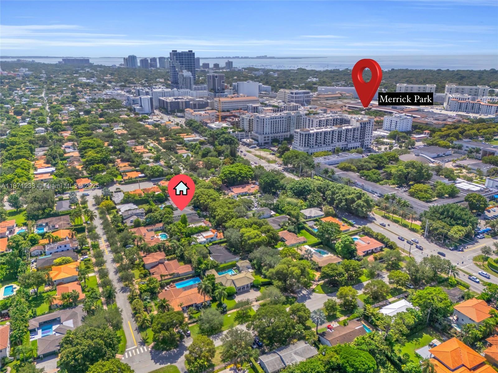 Completely turn-key Gables pool home, walking distance to Merrick, CG Youth Center, Library & more. Bursting with color & creativity, this unique residence blends character with modern comfort. Nestled on a lushly landscaped lot with mature trees, this mid century gem boasts an ideal split bedroom floor plan & outdoor living area with a new pool, turf/natural grass and a private lounge area. A designer kitchen anchors the home, opening to the dining, living & window lined family room which is bathed in natural light. All major upgrades are completed: 2 year-old impact resistant windows & cement tile roof. All new plumbing, updated electrical, new paver driveway & 1-car garage w/ extra loft storage. Gables lifestyle at its finest: a thoughtfully upgraded home w/ easy access to everything!