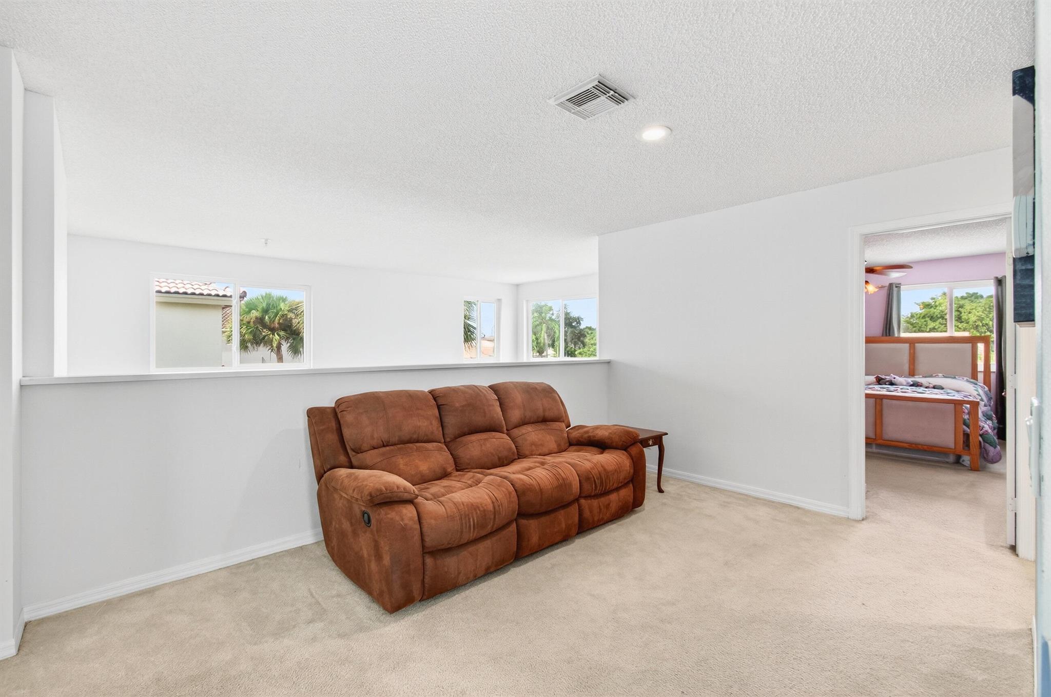 Welcome to this sensational waterfront residence in the desirable Cocobay community with LOW HOA! This 4-bedroom, 3-bath plus loft home offers nearly 3,000 sq. ft. of living space. Home offers an open floor plan with 18' ceilings and neutral tile. The oversized living and dining rooms flow into a renovated chef's kitchen with stainless steel appliances, granite counters, glass backsplash, 38'' cabinets, and a large center island. Enjoy casual dining in the sunny breakfast nook or movie nights in the spacious family room. The downstairs bedroom is ideal for guests or in-laws. Upstairs, the primary suite impresses with an XL walk-in closet and spa-style bath with soaking tub and shower. Impact windows upstairs and a Whirlpool washer/dryer add convenience.