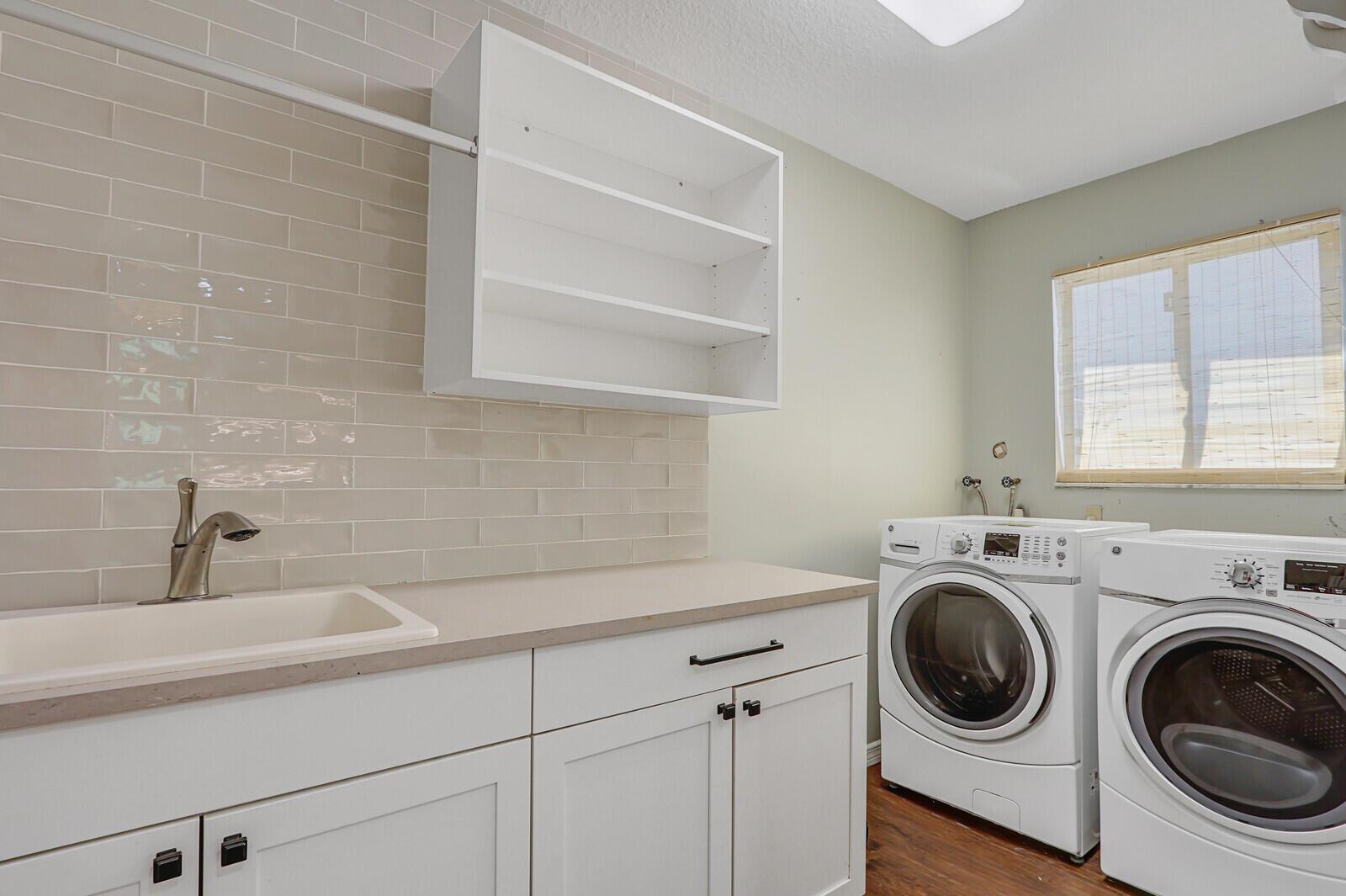 This spacious 4-bedroom, 2.5-bath pool home offers comfortable living in the heart of Palm Beach Gardens with no HOA. A 480 sq. ft. bonus area has been thoughtfully created in the garage, providing a flexible in-law suite, office, or recreation space -- easily convertible back to a full garage if desired.The updated kitchen features soft-close wood cabinetry with pull-outs, quartzite countertops, a farmhouse sink, new range and oven, newer refrigerator, washer, and dryer, plus a brand-new convection oven. A walk-in pantry provides excellent storage. The master bath has been tastefully remodeled, and the home boasts LED lighting throughout.Additional upgrades include: impact windows on the first floor, whole-house interior paint, central vac, generator hook-up (120v),