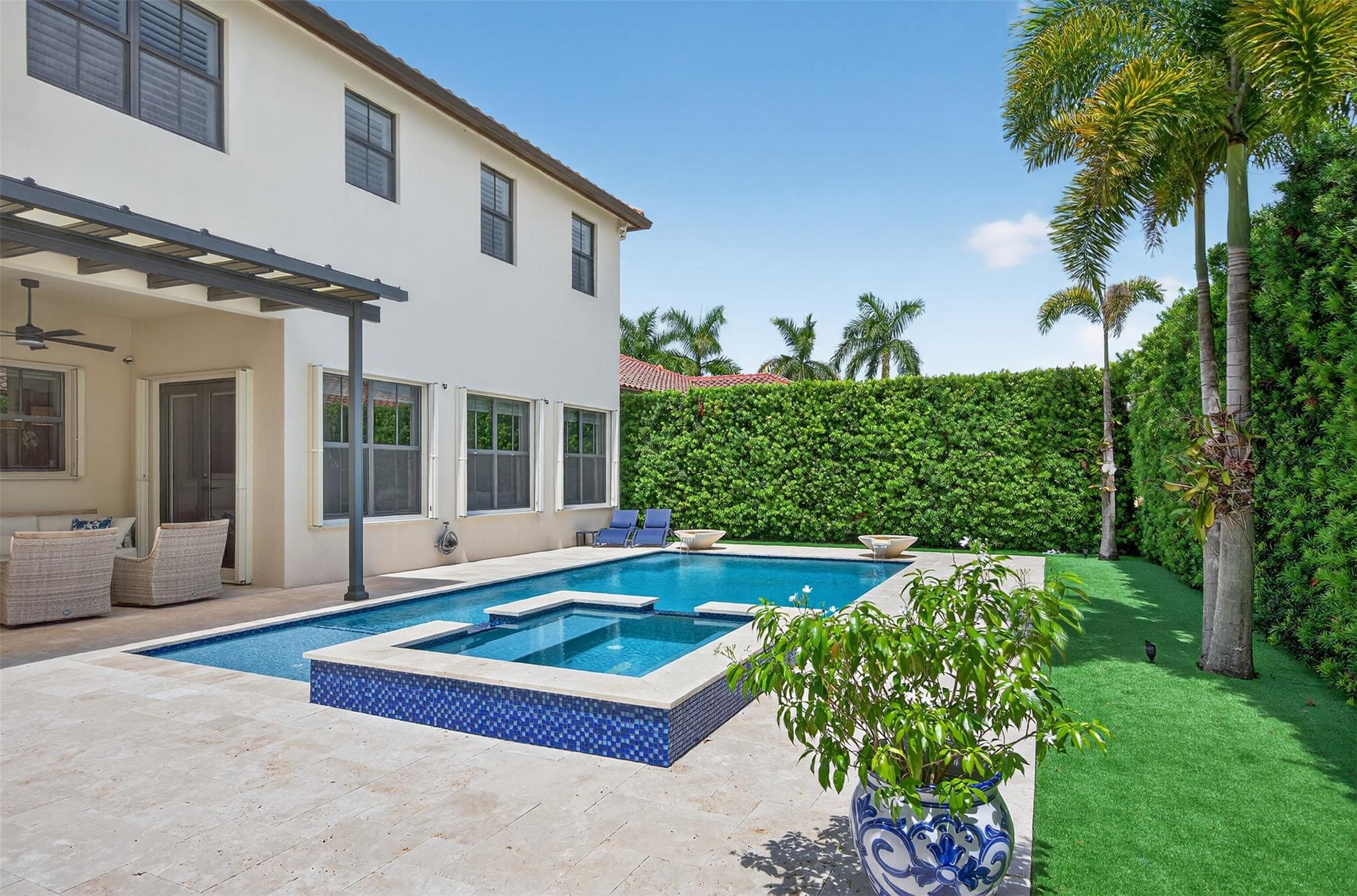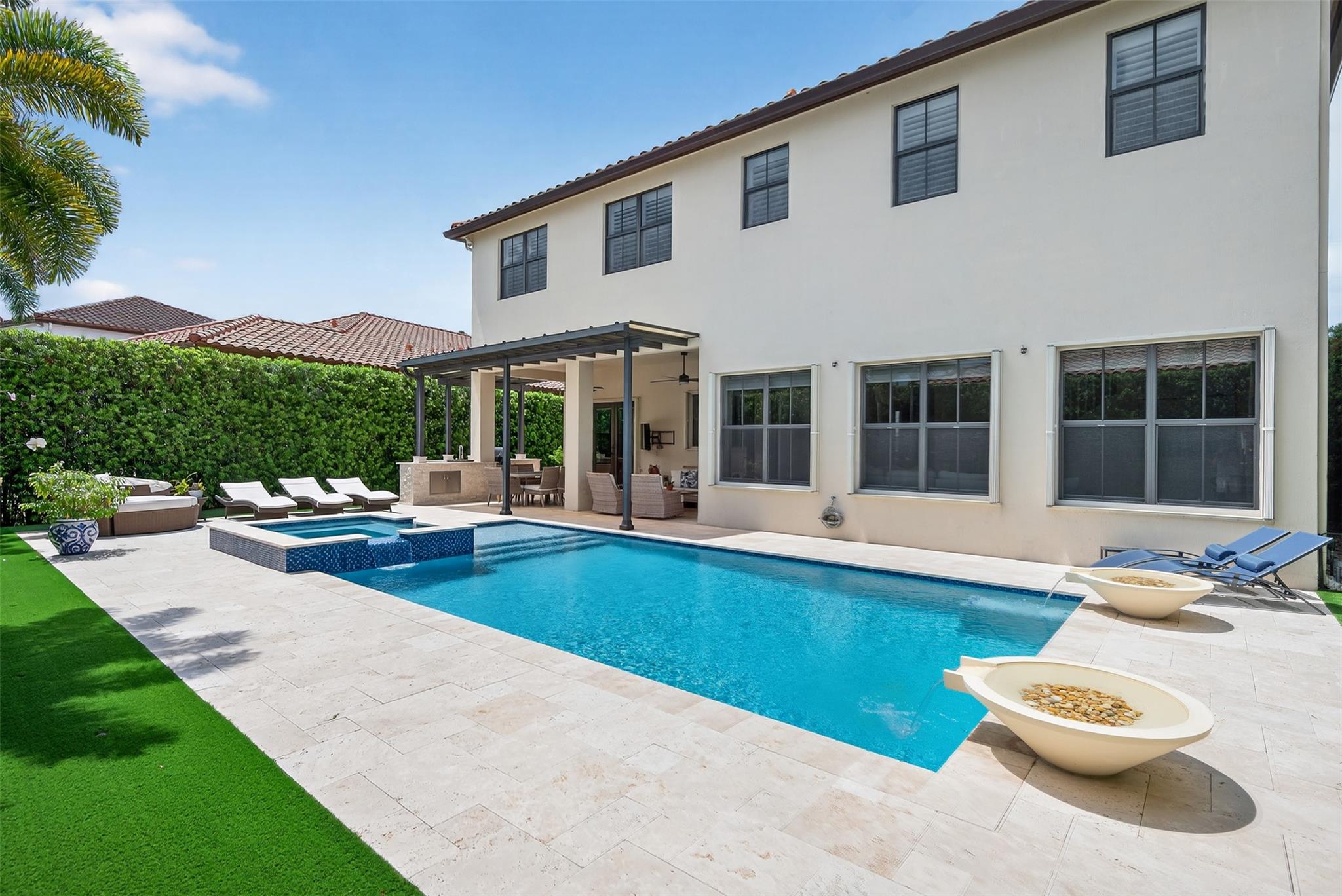 Highly sought-after Delano model featuring resort-style Heated pool & spa, custom pergola, outdoor shower, artificial turf & custom built-in outdoor grill. This model packs a punch with In-law suite with separate entrance. Impact glass on second-floor windows & striking new impact glass front door with remainder of openings protected by accordion. Kitchen with top of line appliances including double oven & center island. Several bedrooms offer private en-suites, multiple rooms feature balconies. Custom built-out closets. Extra-long driveway adds convenience & curb appeal while the landscape lighting front and back adds charm. Upscale amenities at clubhouse, fitness center, basketball & tennis, dog park, & scenic walking trails. A rated school & walking distance to houses of worship.
