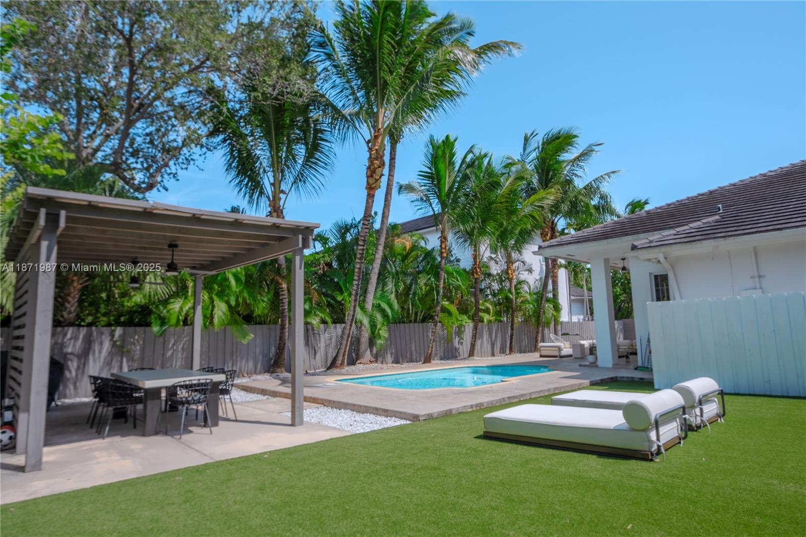 Beautiful and move-in ready 5-bedroom, 4-bath home in heart of Pinecrest/South Miami with 3,225 adjusted sq ft on an oversized 11,271 sq ft corner lot. The open layout brings natural light, high ceilings, and a spacious kitchen with center island, ideal for gatherings and everyday living. Updates include remodeled closets, fencing, outdoor lighting, natural gas, roof insulation, security cameras, and a new A/C compressor for peace of mind. Outside, enjoy a re-plastered saltwater pool with new tile and heater, artificial turf with playground, lush landscaping, and a shaded pergola—perfect for entertaining or relaxing. Minutes from Dante Fascell Park, top schools, Trader Joe’s, Dadeland, and Miami’s best dining and shopping, this turnkey home offers comfort, convenience, and prime location.