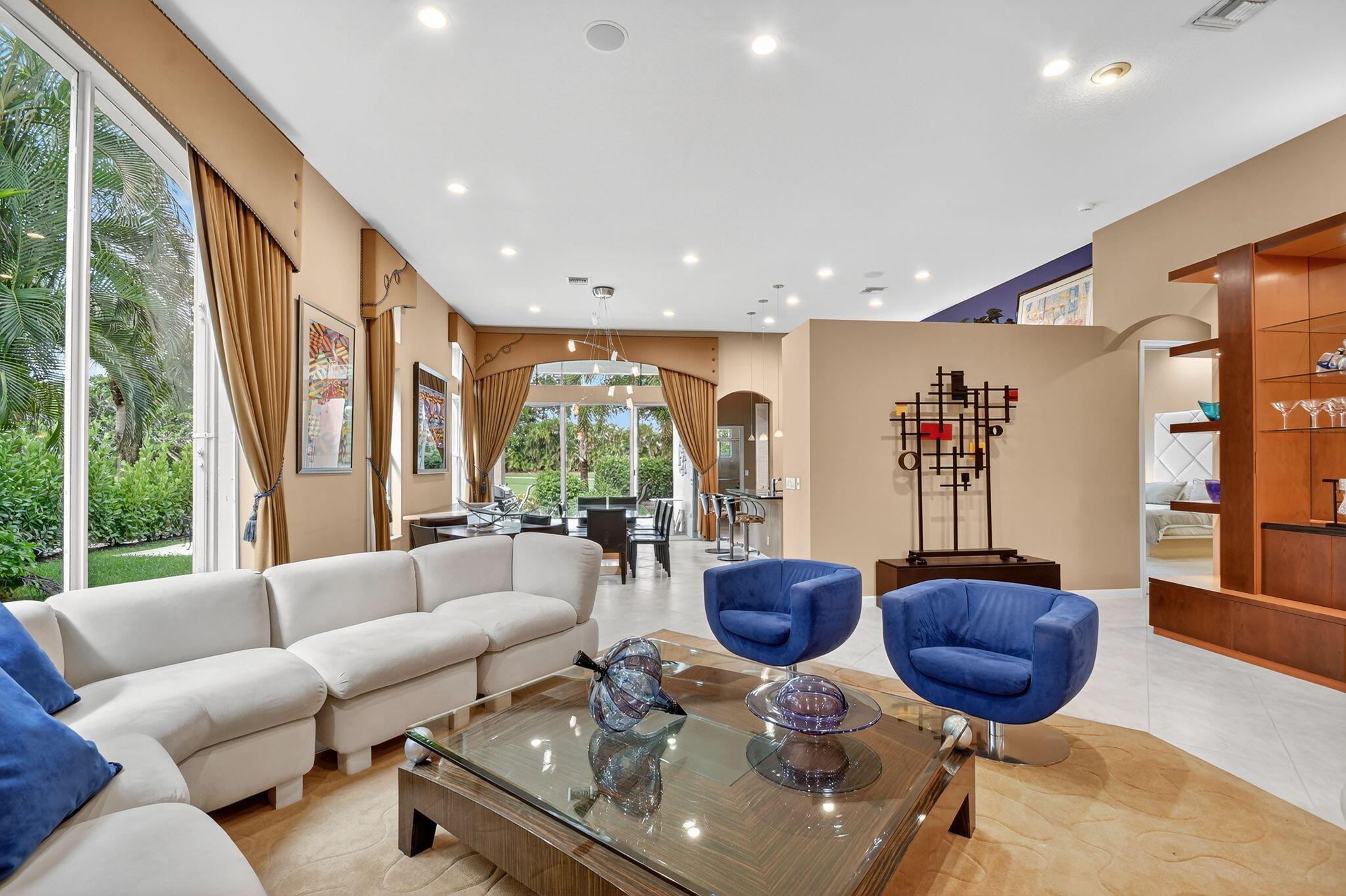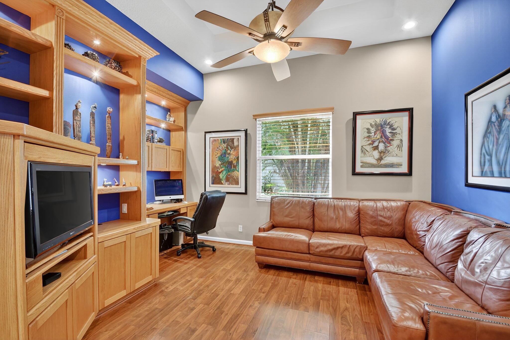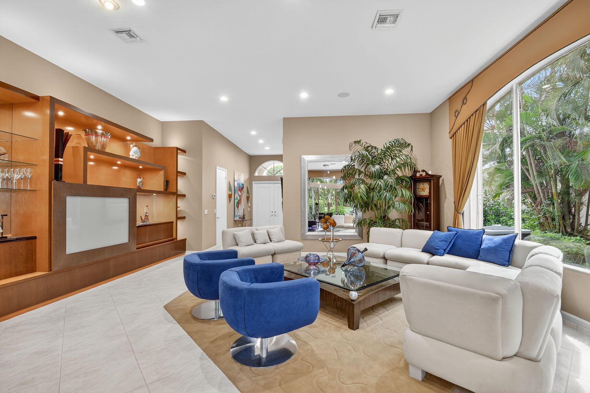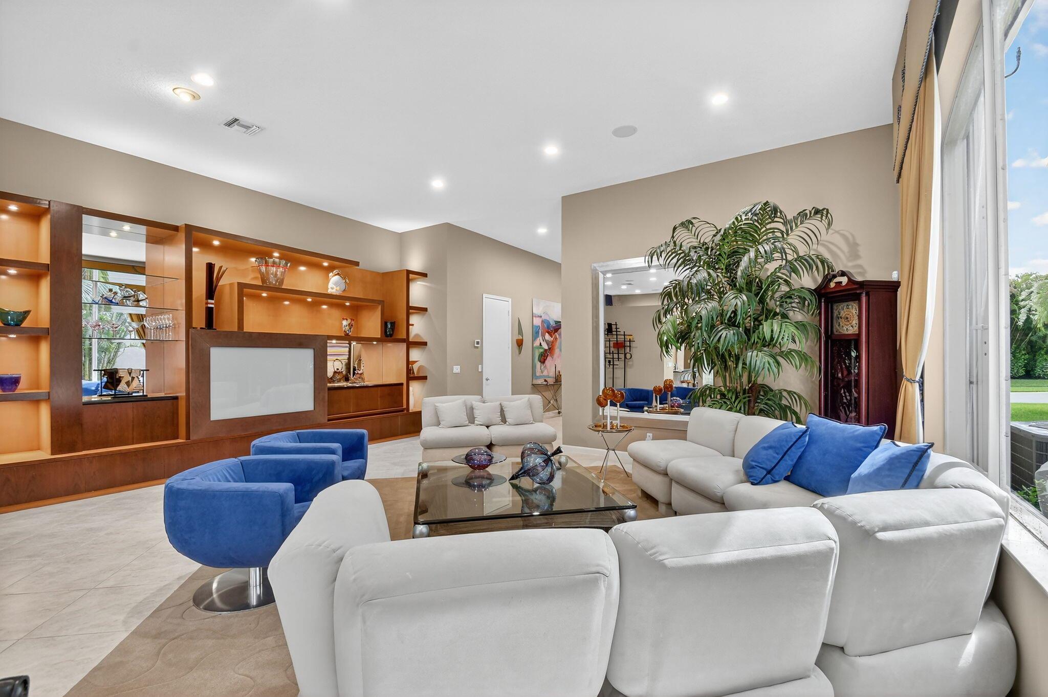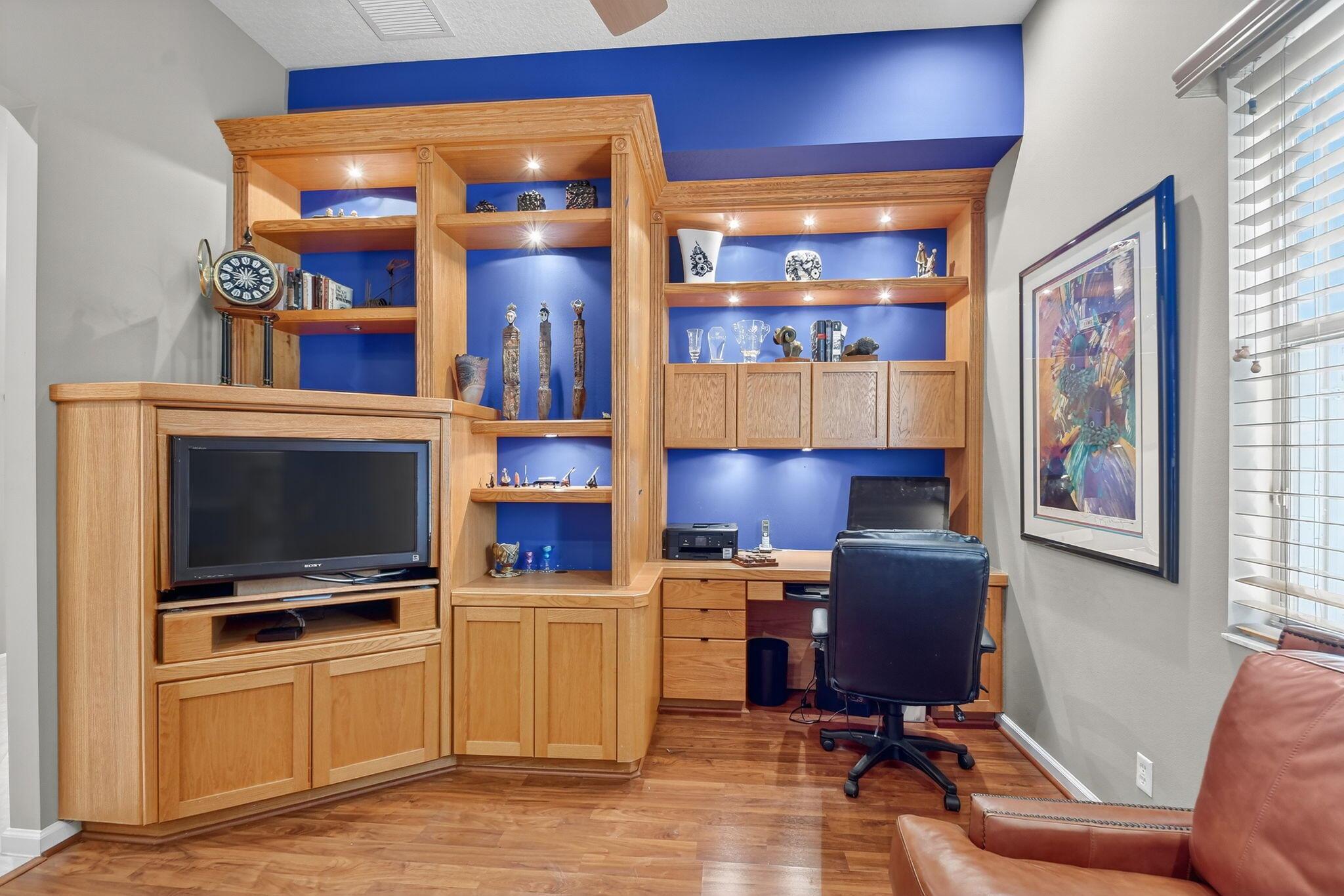 Rarely available and beautifully maintained 4BD/3BA home in Wycliffe Golf & Country Club with western exposure overlooking the golf course. Perfect for enjoying breathtaking sunsets from your expanded, covered patio. This custom great room floor plan features a spacious country kitchen. 2022 roof & 2022 A/C for peace of mind. The primary suite currently has a large sitting room with closet. Enjoy a huge primary bath with jacuzzi tub and oversized shower with seat. The great room features custom built-in with bar, under-mount lighting, plus sliding panel to conceal the TV, if desired. The 4th bedroom used as an office with recessed lighting and a built-in desk. Offering a rare combination of comfort, style, and stunning views, this home is ideal for both entertaining and everyday living.