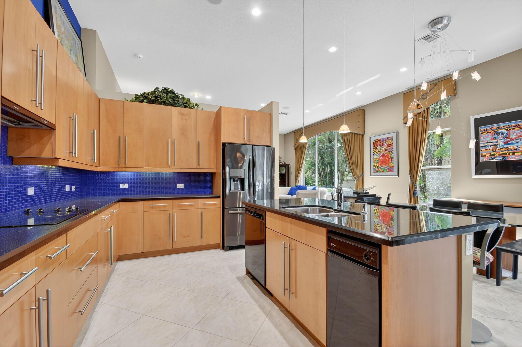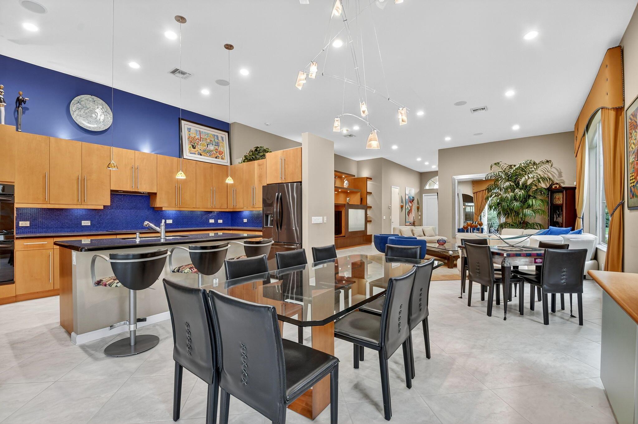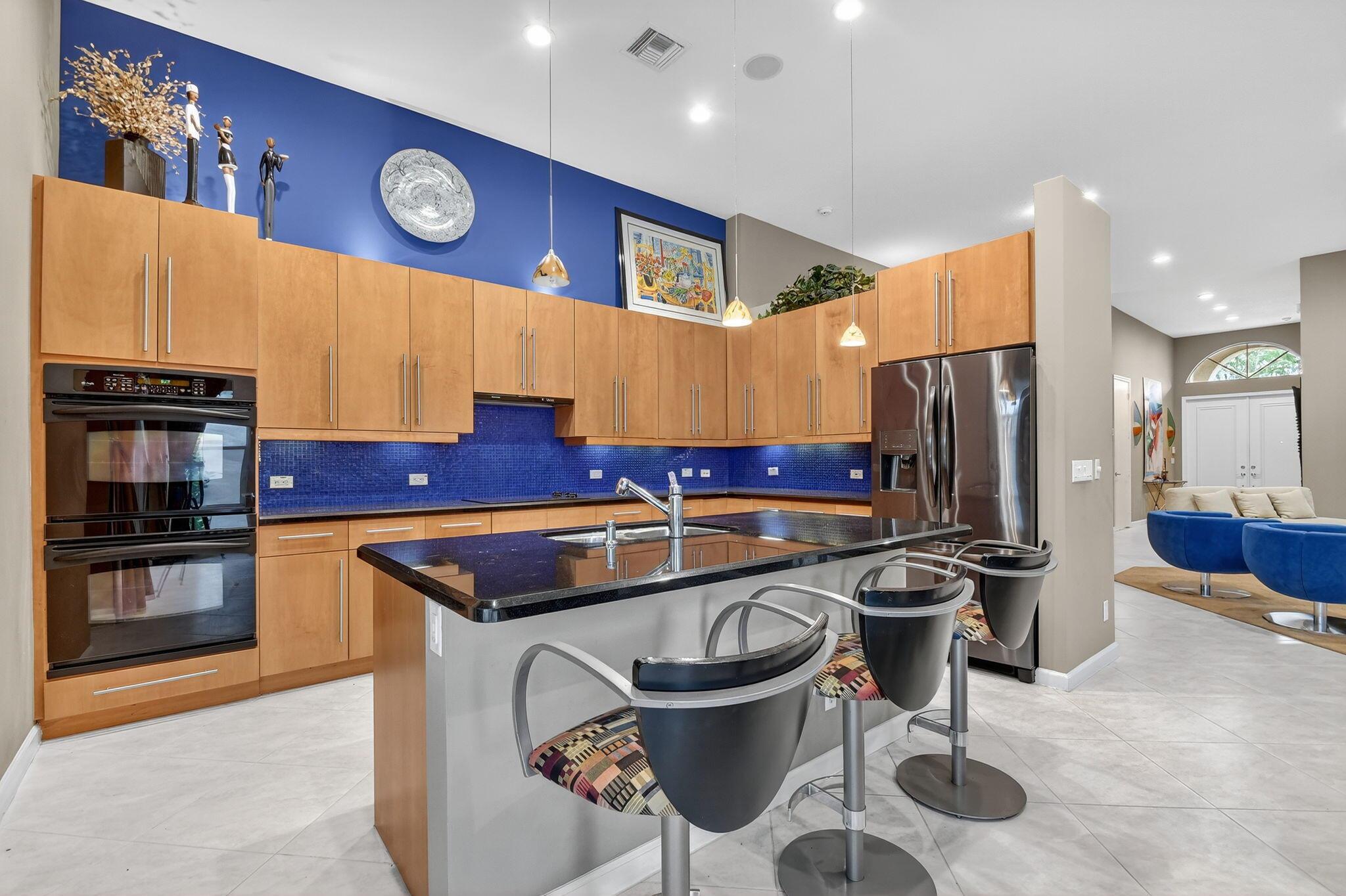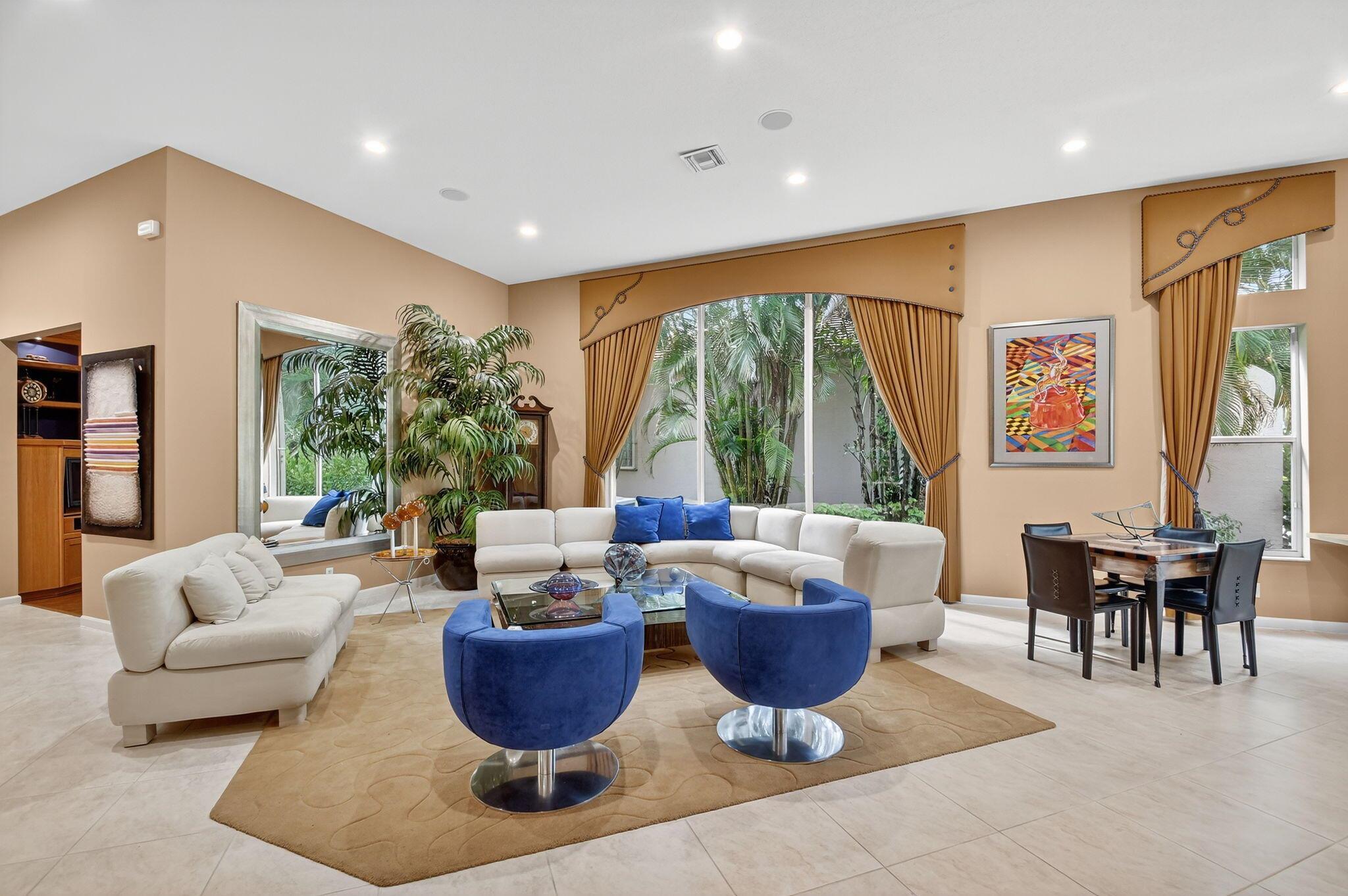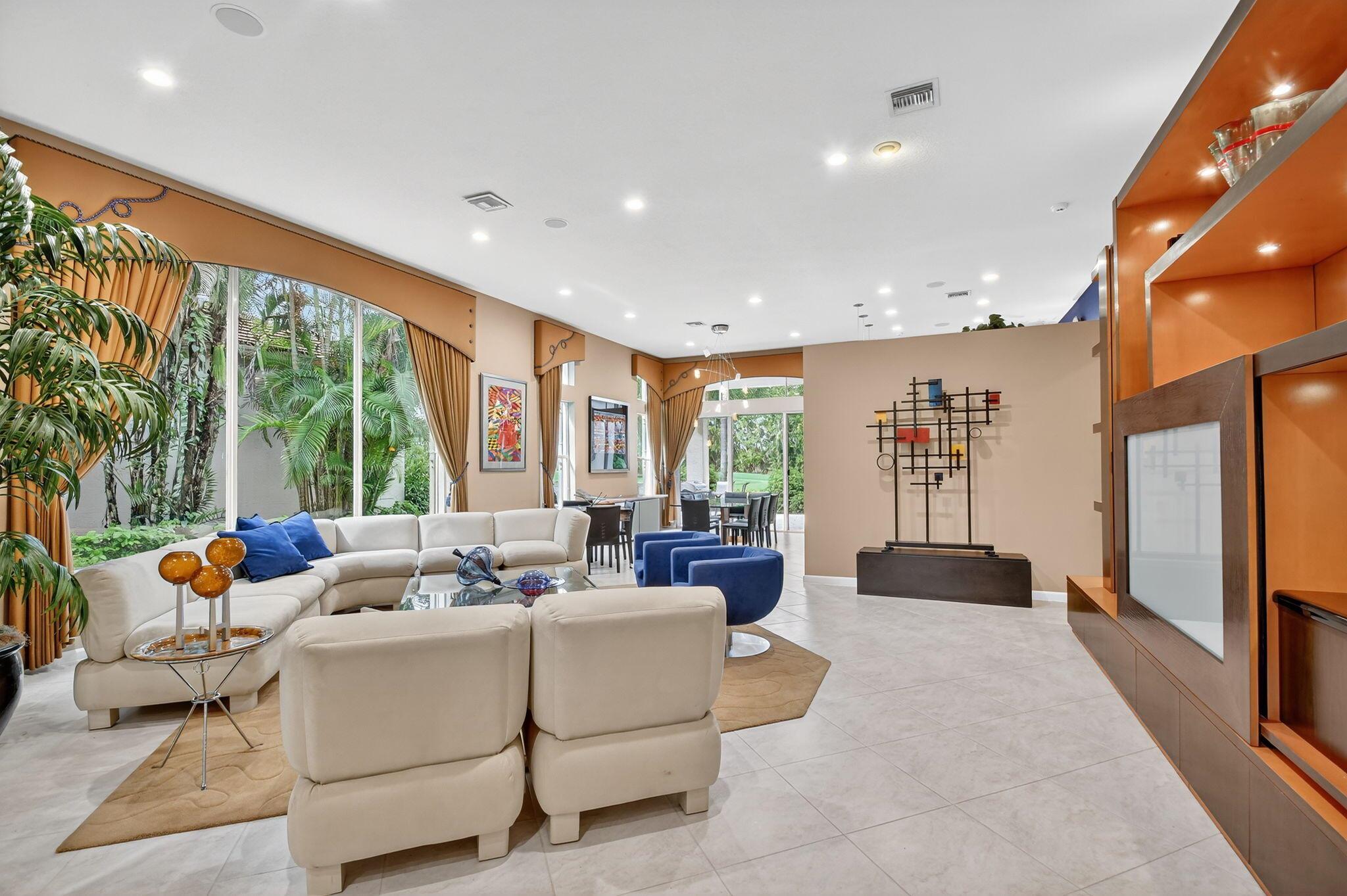 Rarely available and beautifully maintained 4BD/3BA home in Wycliffe Golf & Country Club with western exposure overlooking the golf course. Perfect for enjoying breathtaking sunsets from your expanded, covered patio. This custom great room floor plan features a spacious country kitchen. 2022 roof & 2022 A/C for peace of mind. The primary suite currently has a large sitting room with closet. Enjoy a huge primary bath with jacuzzi tub and oversized shower with seat. The great room features custom built-in with bar, under-mount lighting, plus sliding panel to conceal the TV, if desired. The 4th bedroom used as an office with recessed lighting and a built-in desk. Offering a rare combination of comfort, style, and stunning views, this home is ideal for both entertaining and everyday living.