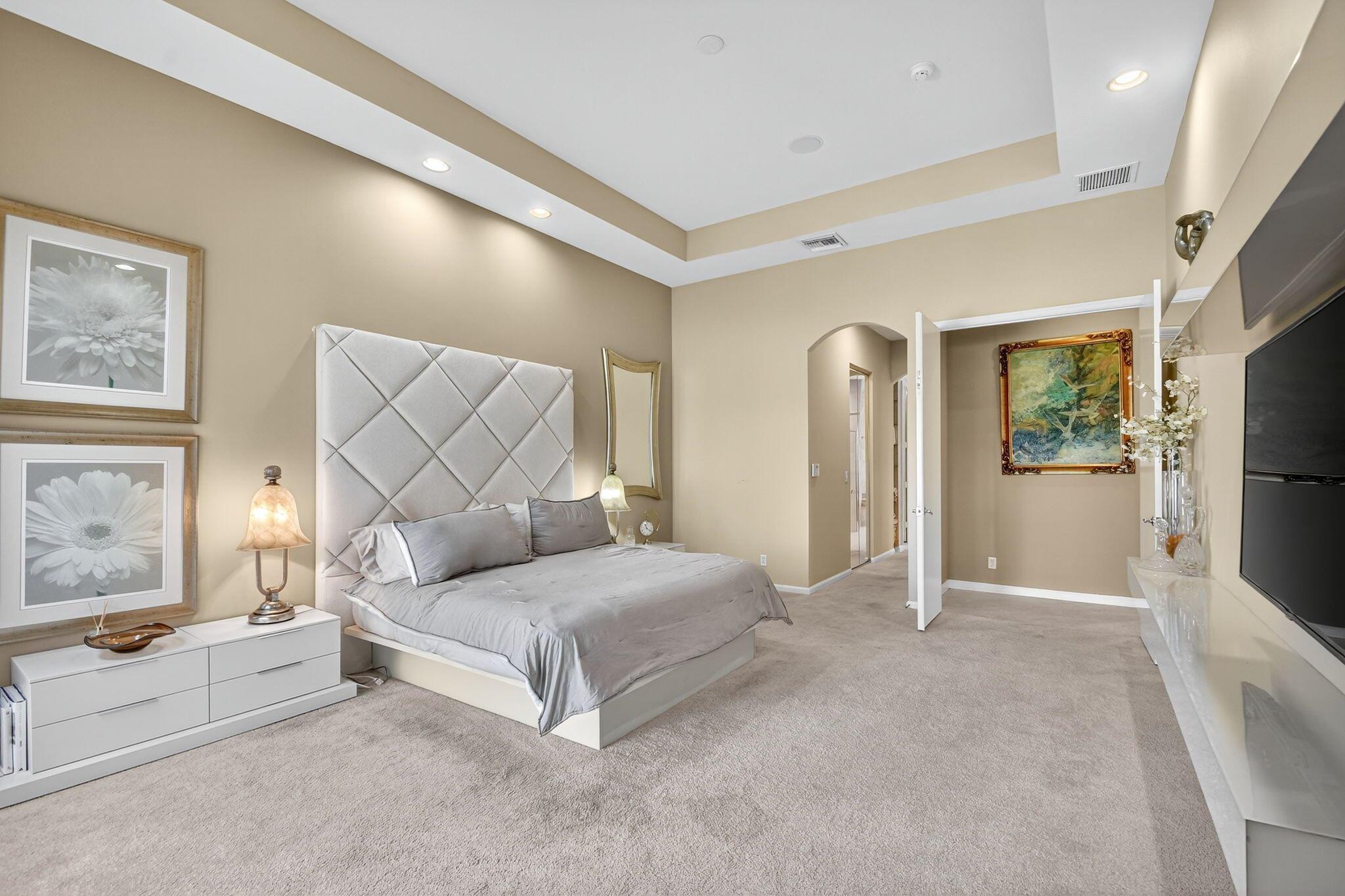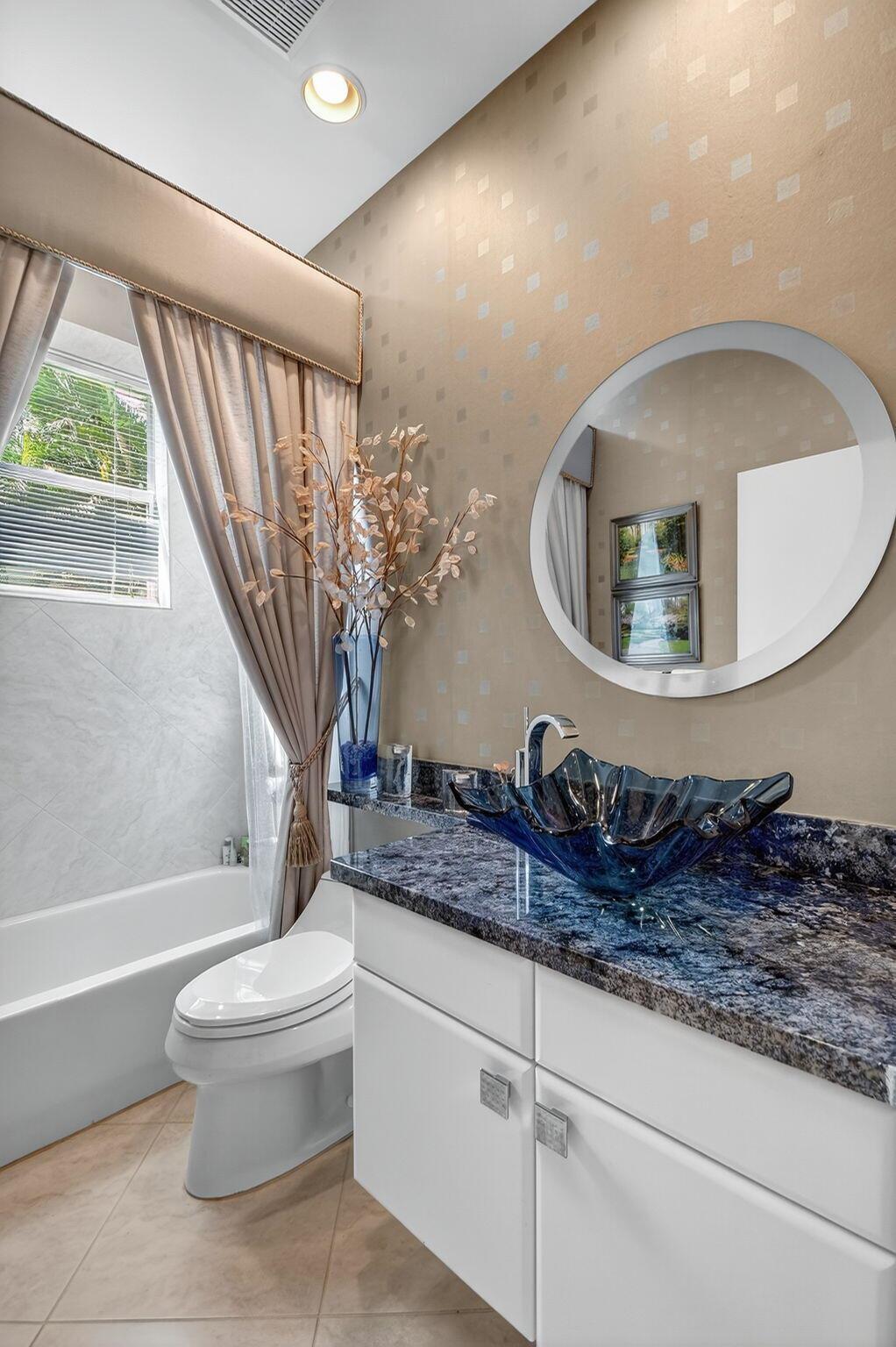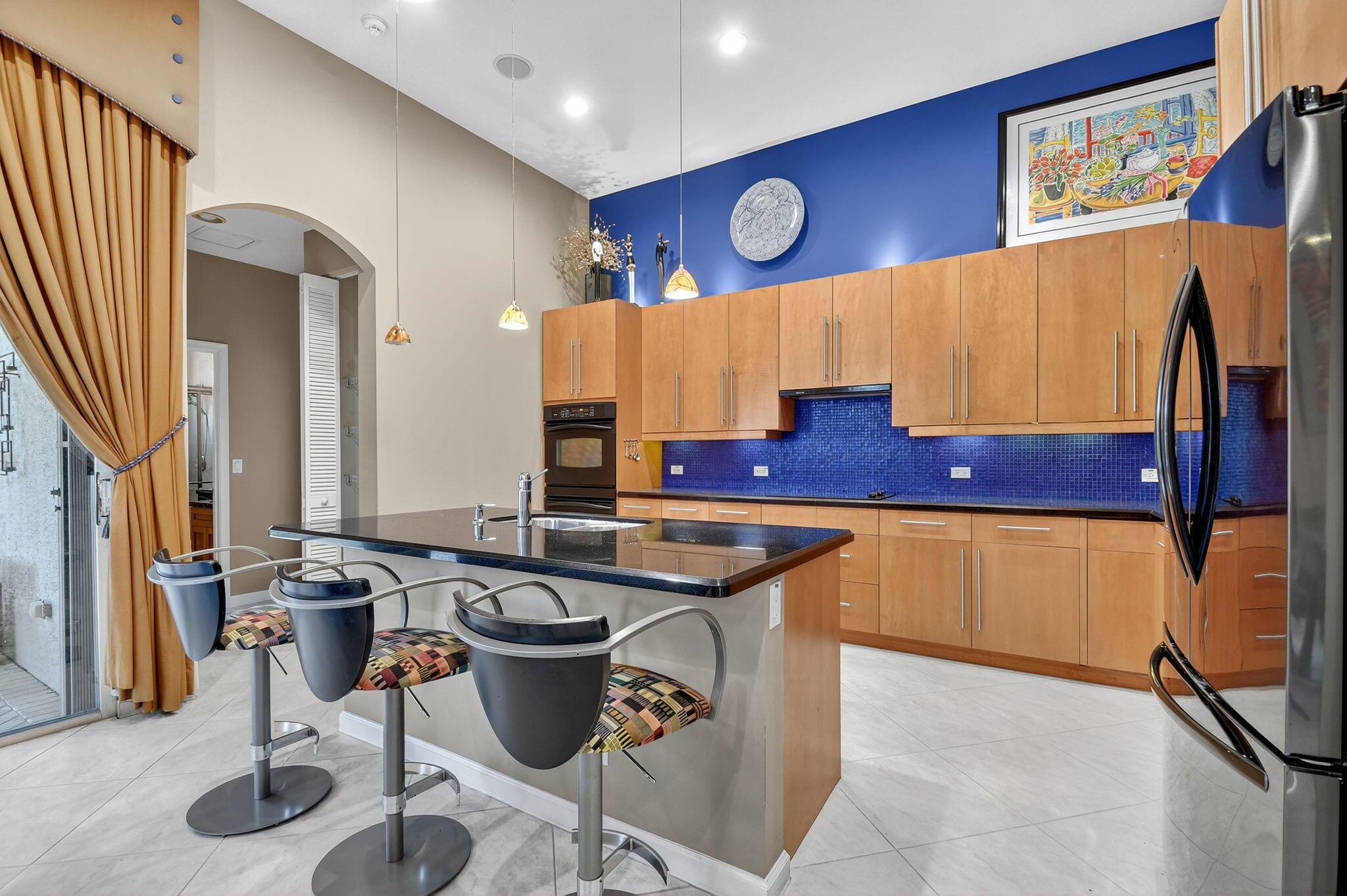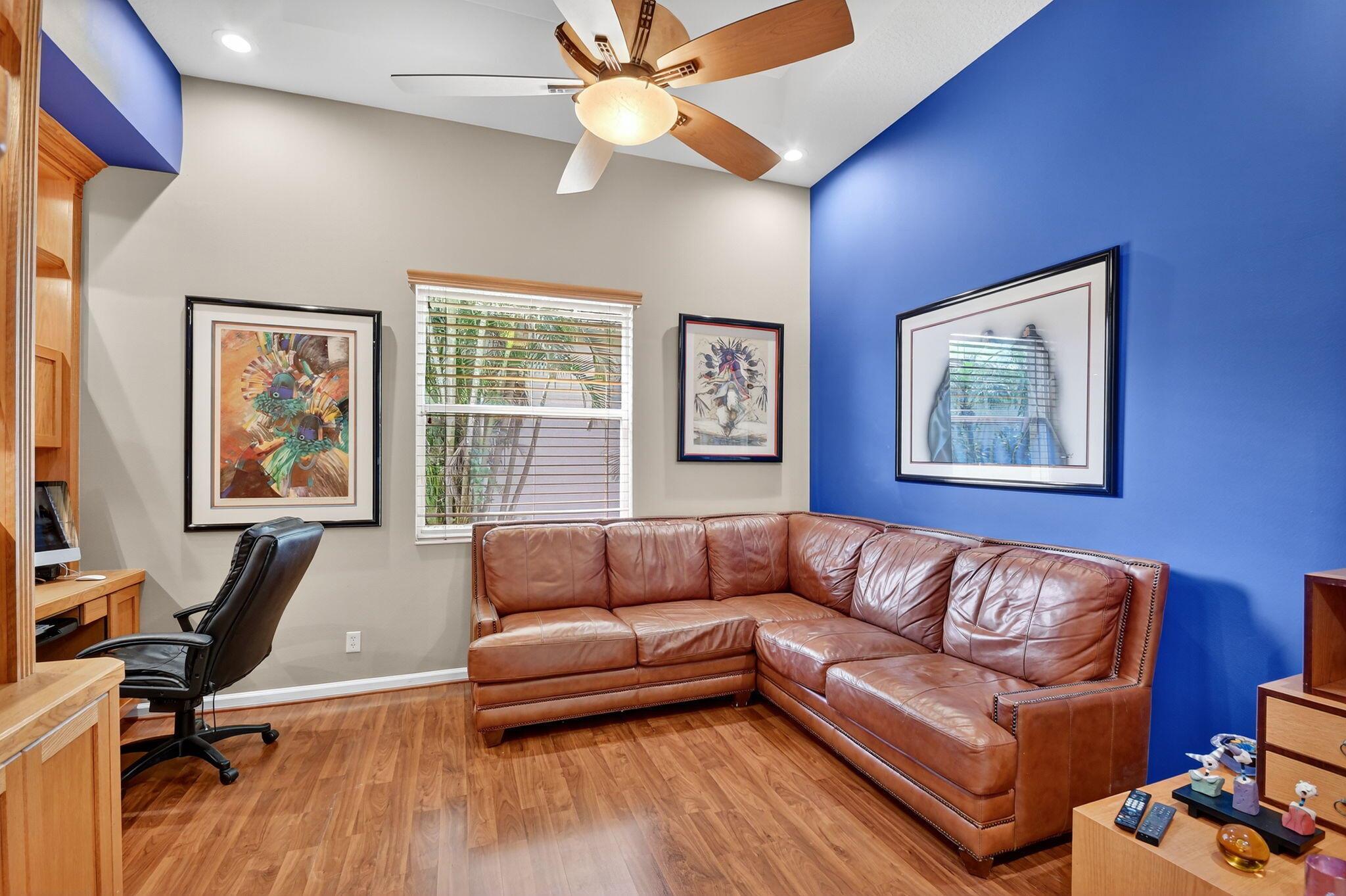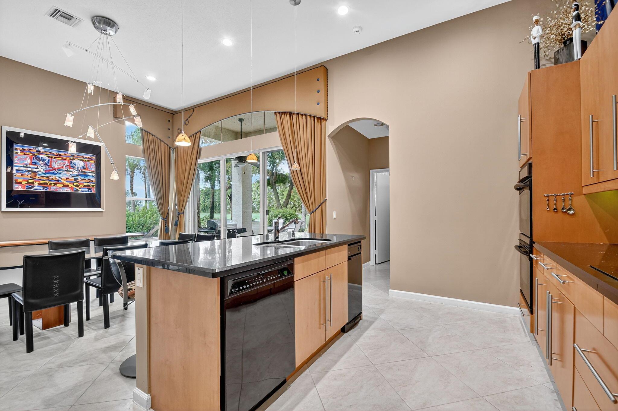 Rarely available and beautifully maintained 4BD/3BA home in Wycliffe Golf & Country Club with western exposure overlooking the golf course. Perfect for enjoying breathtaking sunsets from your expanded, covered patio. This custom great room floor plan features a spacious country kitchen. 2022 roof & 2022 A/C for peace of mind. The primary suite currently has a large sitting room with closet. Enjoy a huge primary bath with jacuzzi tub and oversized shower with seat. The great room features custom built-in with bar, under-mount lighting, plus sliding panel to conceal the TV, if desired. The 4th bedroom used as an office with recessed lighting and a built-in desk. Offering a rare combination of comfort, style, and stunning views, this home is ideal for both entertaining and everyday living.