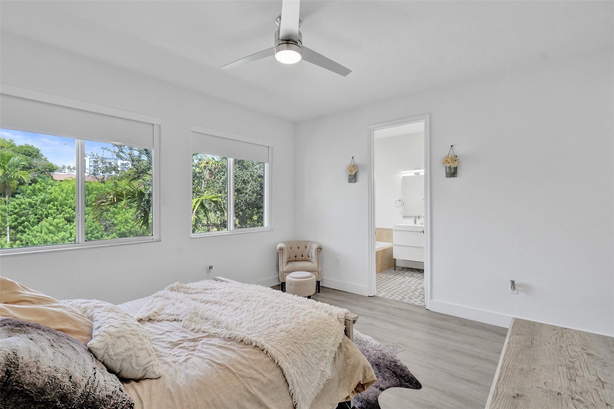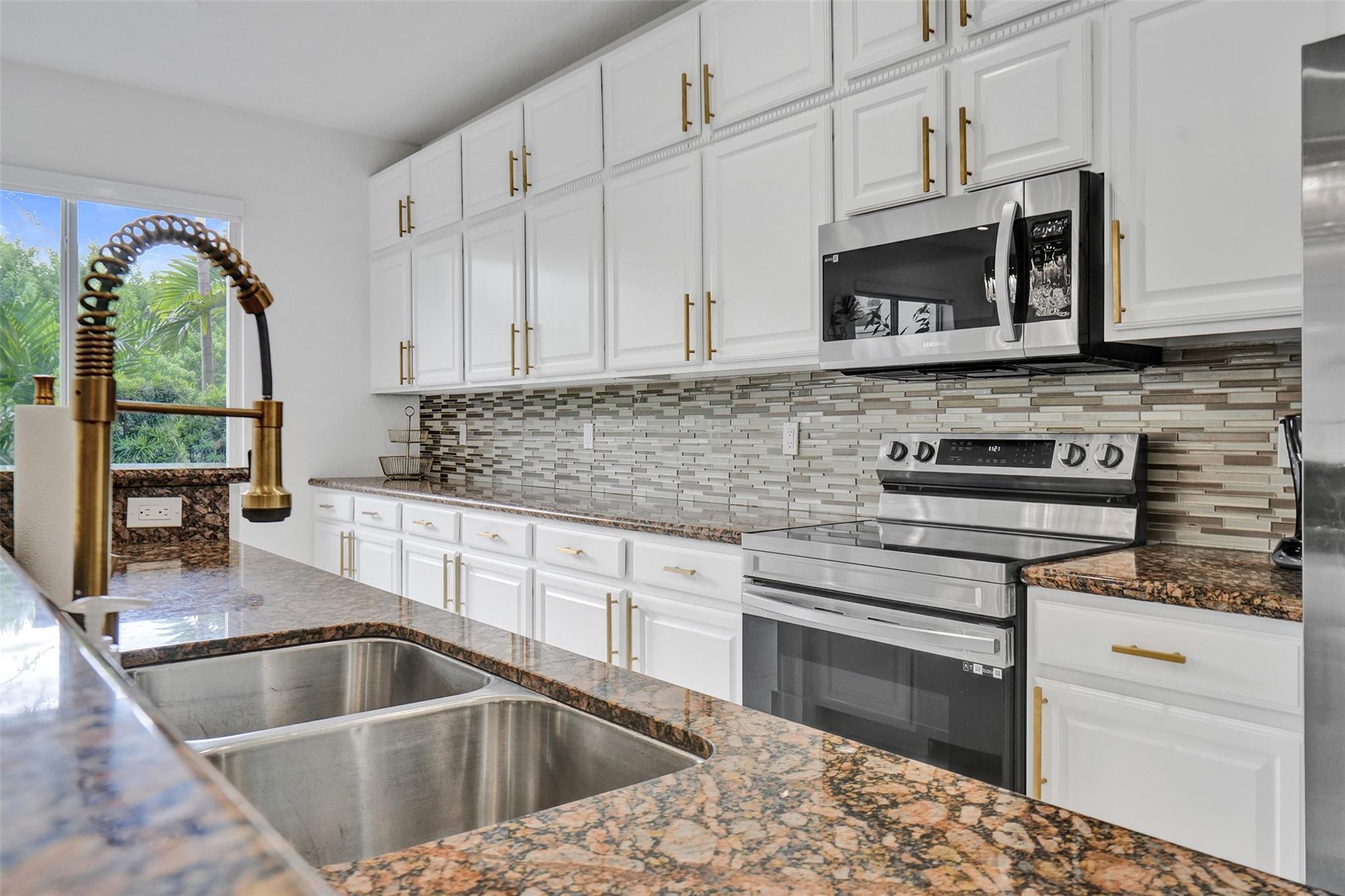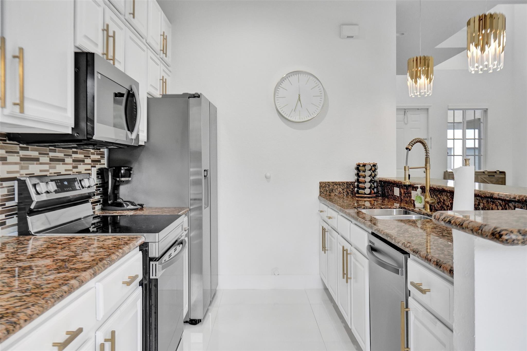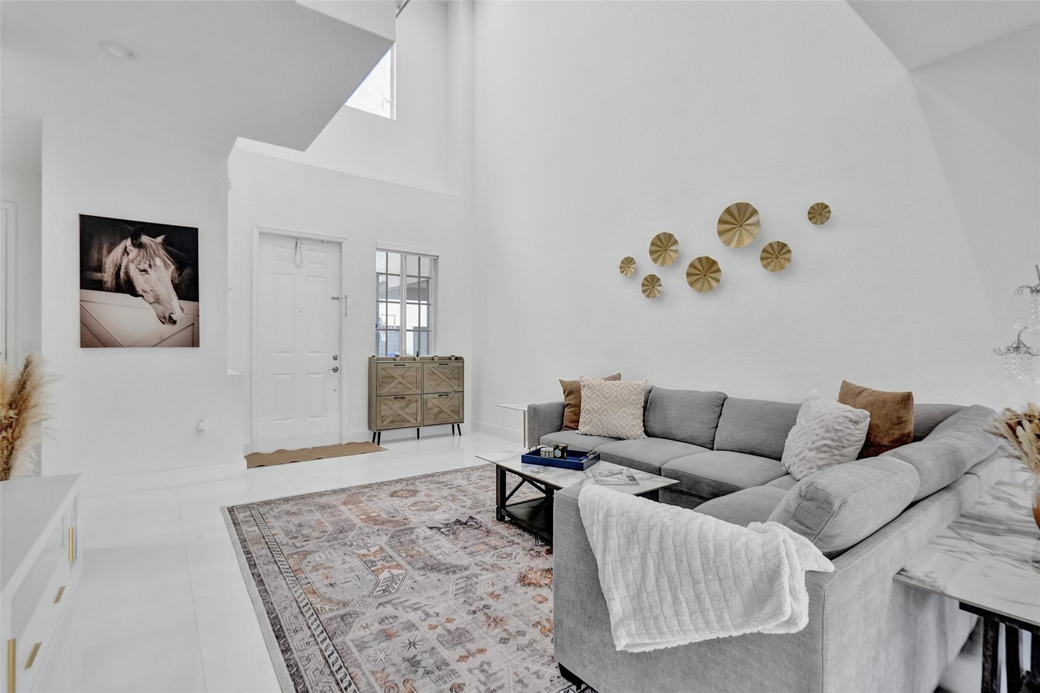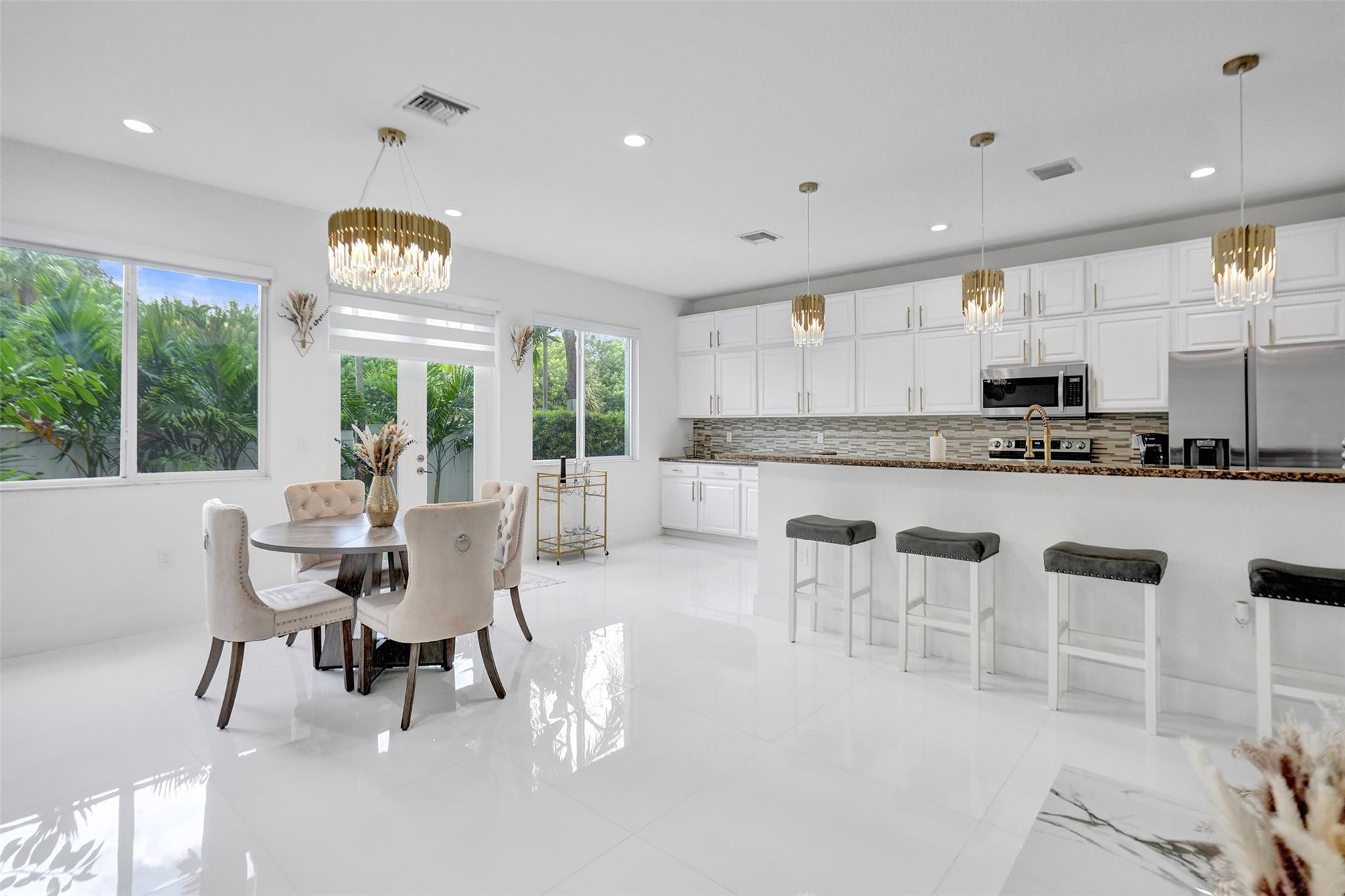 Gorgeous 3 bed/2.5 bath, 2-story townhome with high-volume ceilings in a highly desired gated community, just 6 mins from the beach. The primary suite features two walk-in closets and a spacious bath. Highlights include large kitchen w/ granite counters, lots of cabinet space, brass accent handles/lighting, SS appl, white porcelain 24x24 tile throughout main floor, high-quality water resistant laminate on the 2nd floor, a sleek glass and steel staircase, impact windows and doors, and a lovely back patio/yard just off the kitchen and dining area. Parking includes a 1-car garage plus a covered carport. With new restaurants, entertainment, and waterfront projects underway, Pompano Beach is rapidly transforming making this home not only a perfect lifestyle choice but also a smart investment.