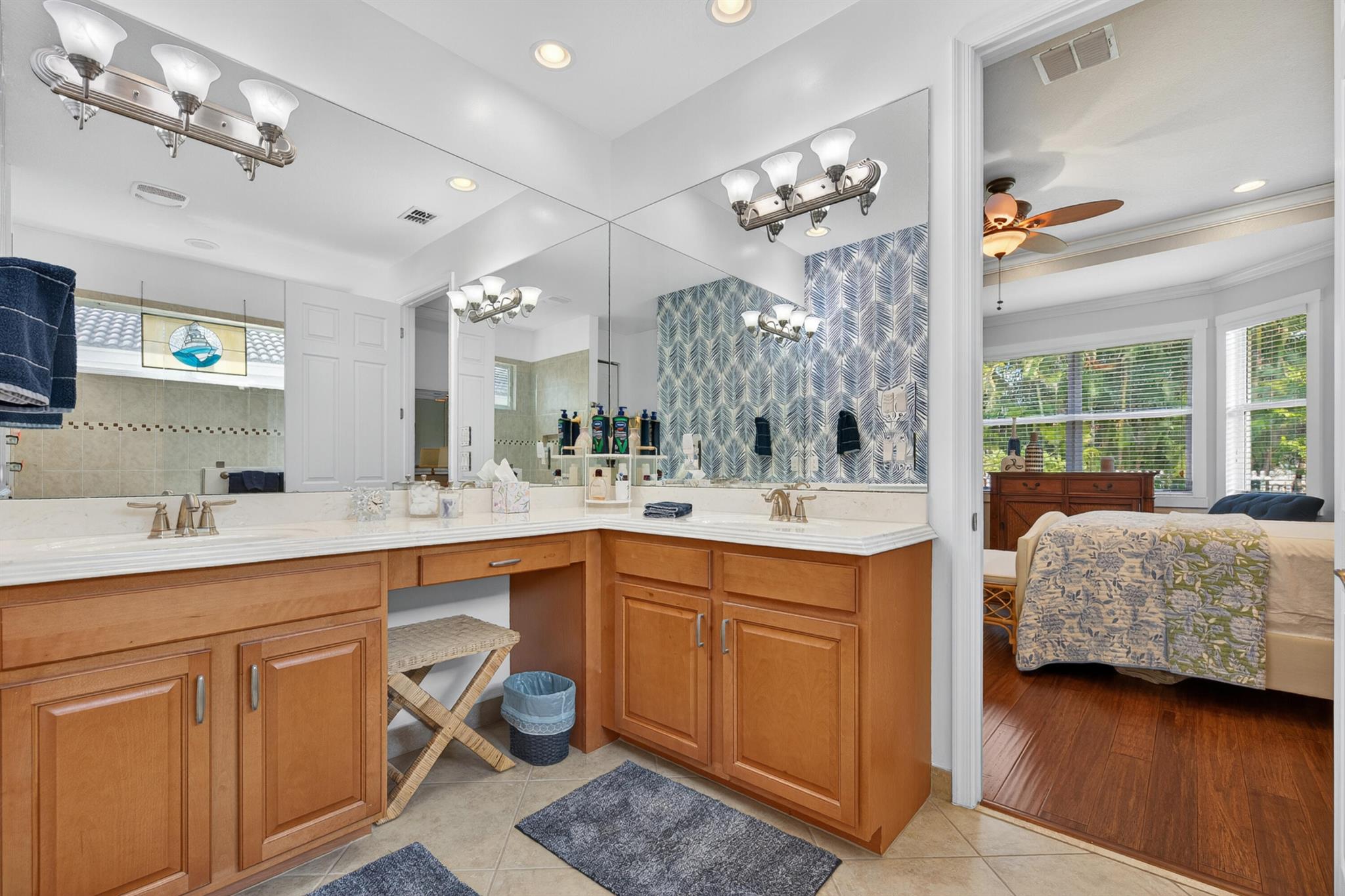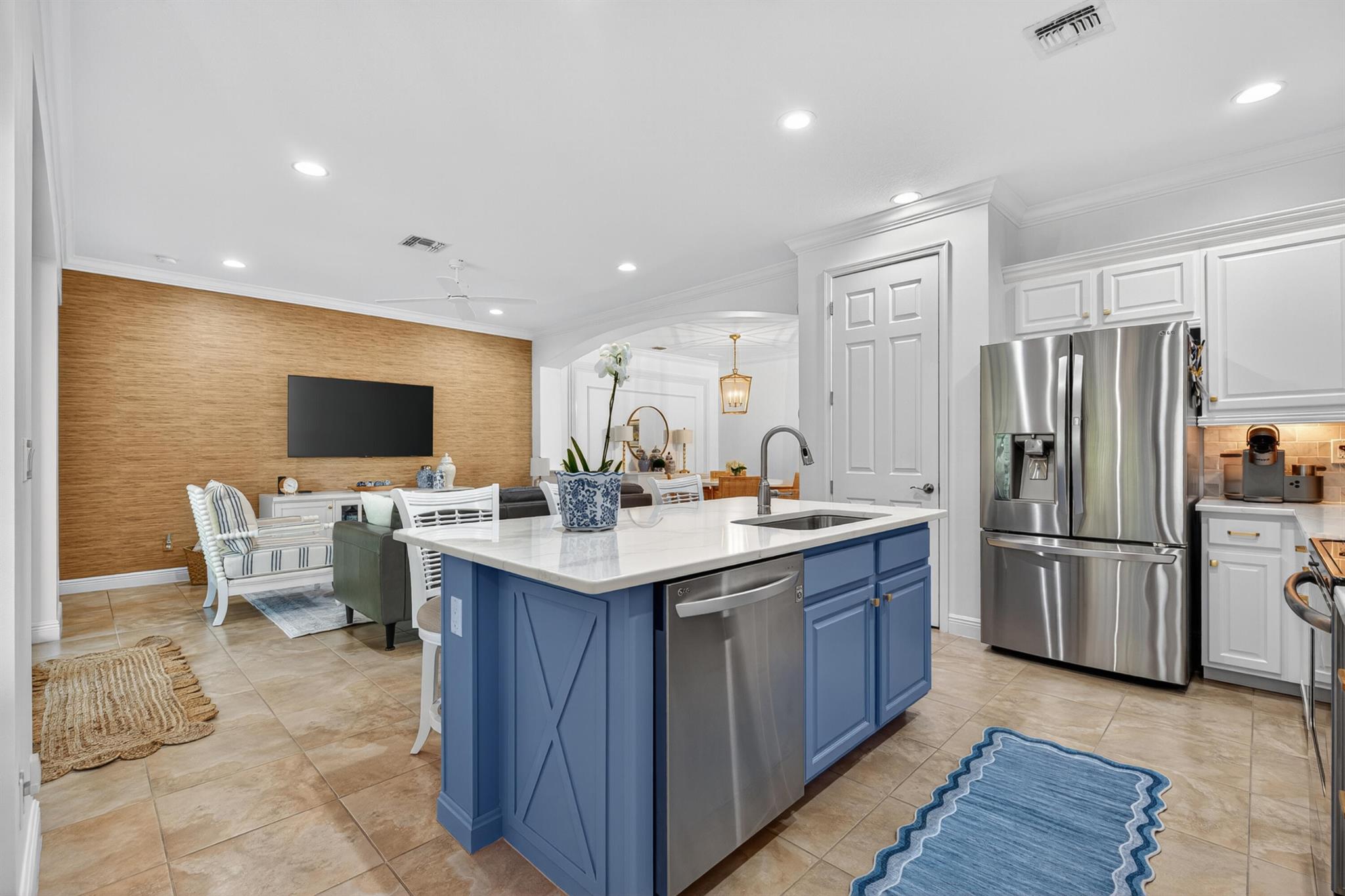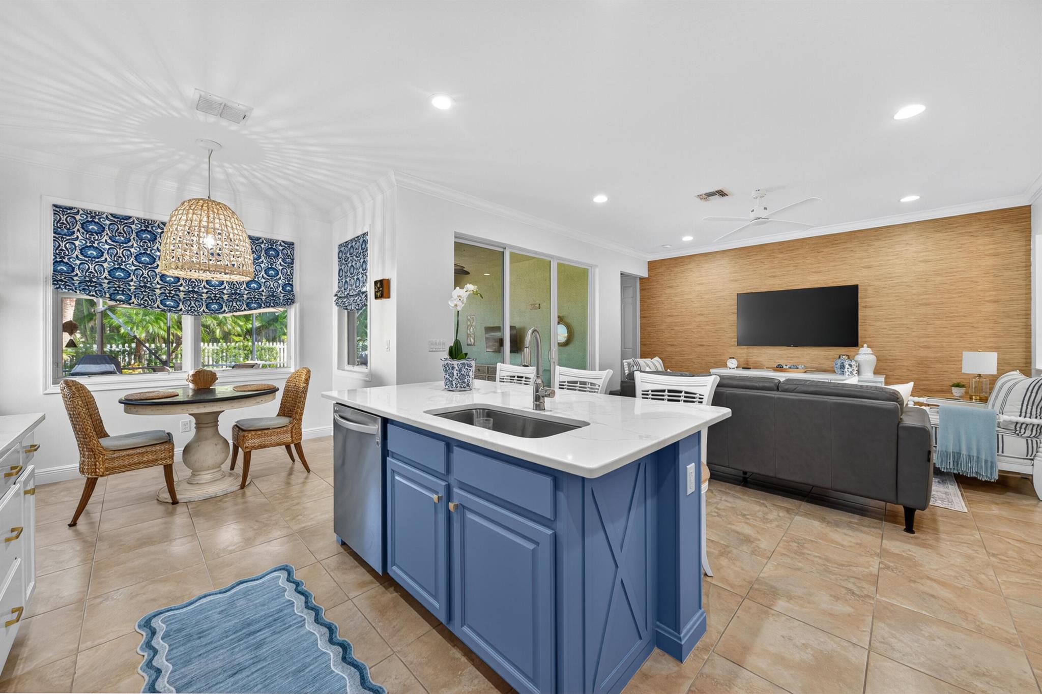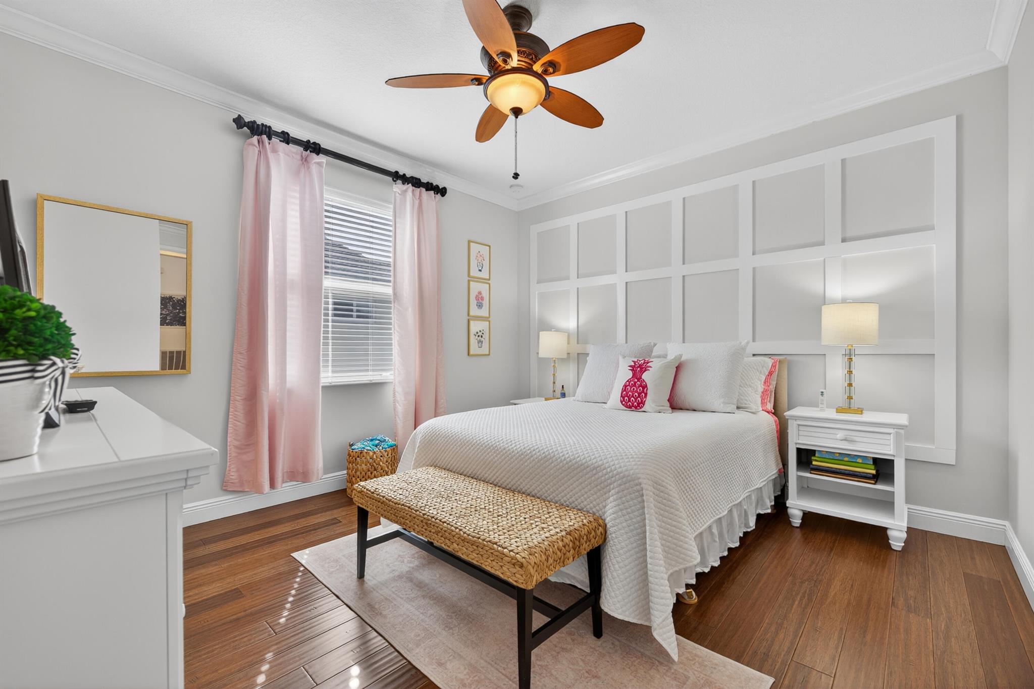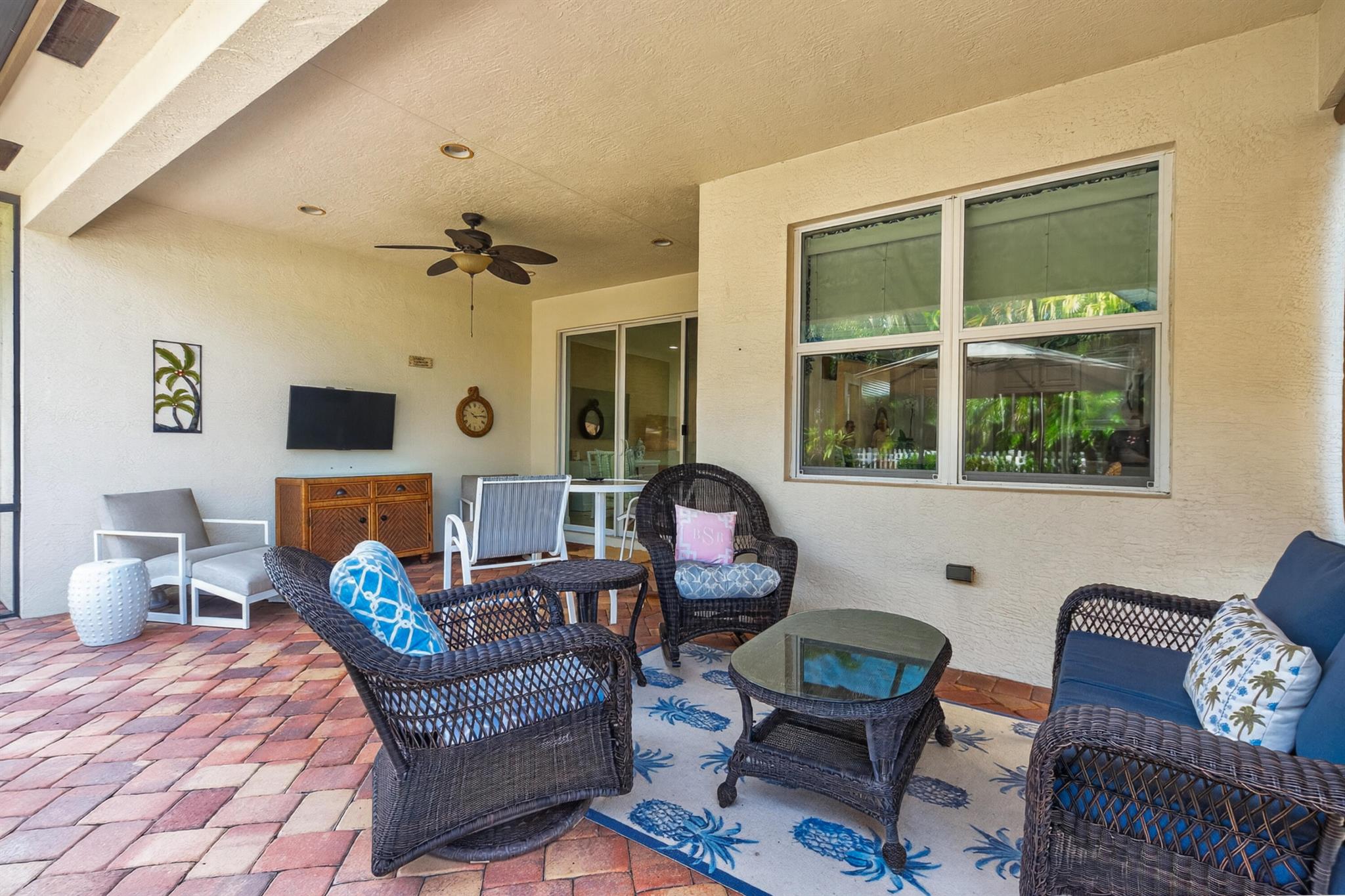 *Please watch our awesome video! Welcome to this stunning and well-maintained concrete block one story home with 2 bedrooms plus den and 2 and a half baths. Open concept layout with custom wood work, crown molding, custom window treatments, ceramic tile throughout the living area and engineered hardwood in the bedrooms. Updated kitchen with gorgeous quartz countertops paired with Italian marble backsplash and wooden cabinets. Modern light fixtures and fans throughout the house. Large primary bedroom with custom built walk-in closet. Dual sinks and enormous shower in primary bath. Spacious guest bedroom with custom built closet and en-suite bath. Versatile den which can be used as a 3rd bedroom or a home office. Large screened lanai and fenced yard. TownPark offers