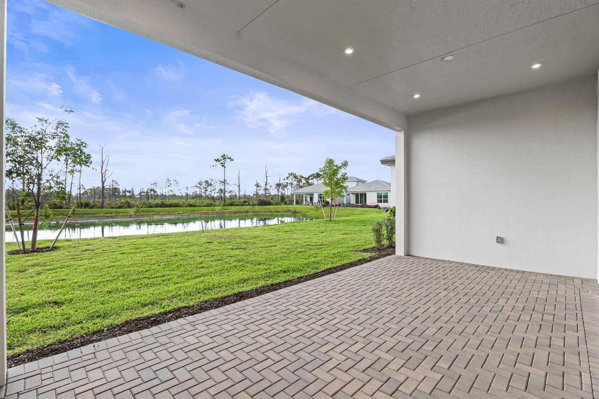 **New Construction** Move-in-ready available. East facing Julia floorplan with expansive water views and plenty of room for a pool! This move in ready new construction home features 2 bedrooms, 2 bathrooms, a flex space, and 2 car garage. The kitchen is designed for both function and style, featuring GE profile appliances, second-tier cabinets, and a large island with 3'' quartz countertops that's perfect for gathering. A 10' x 16' sliding glass door floods the great room with natural light and opens up to the lanai overlooking the lake and creating an easy floor between indoor and outdoor spaces. The owner's suite overlooks the water, giving you a private retreat with a view.