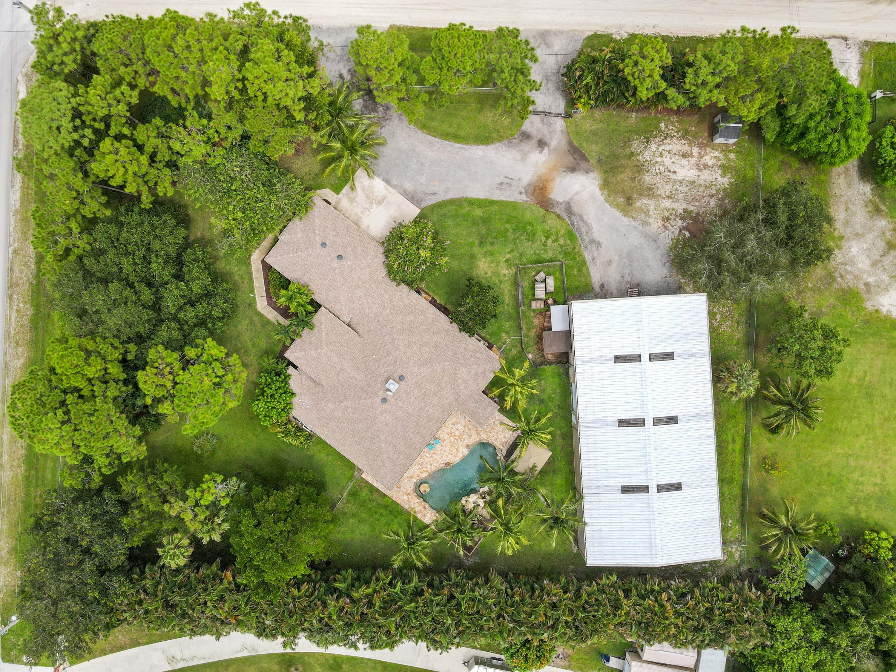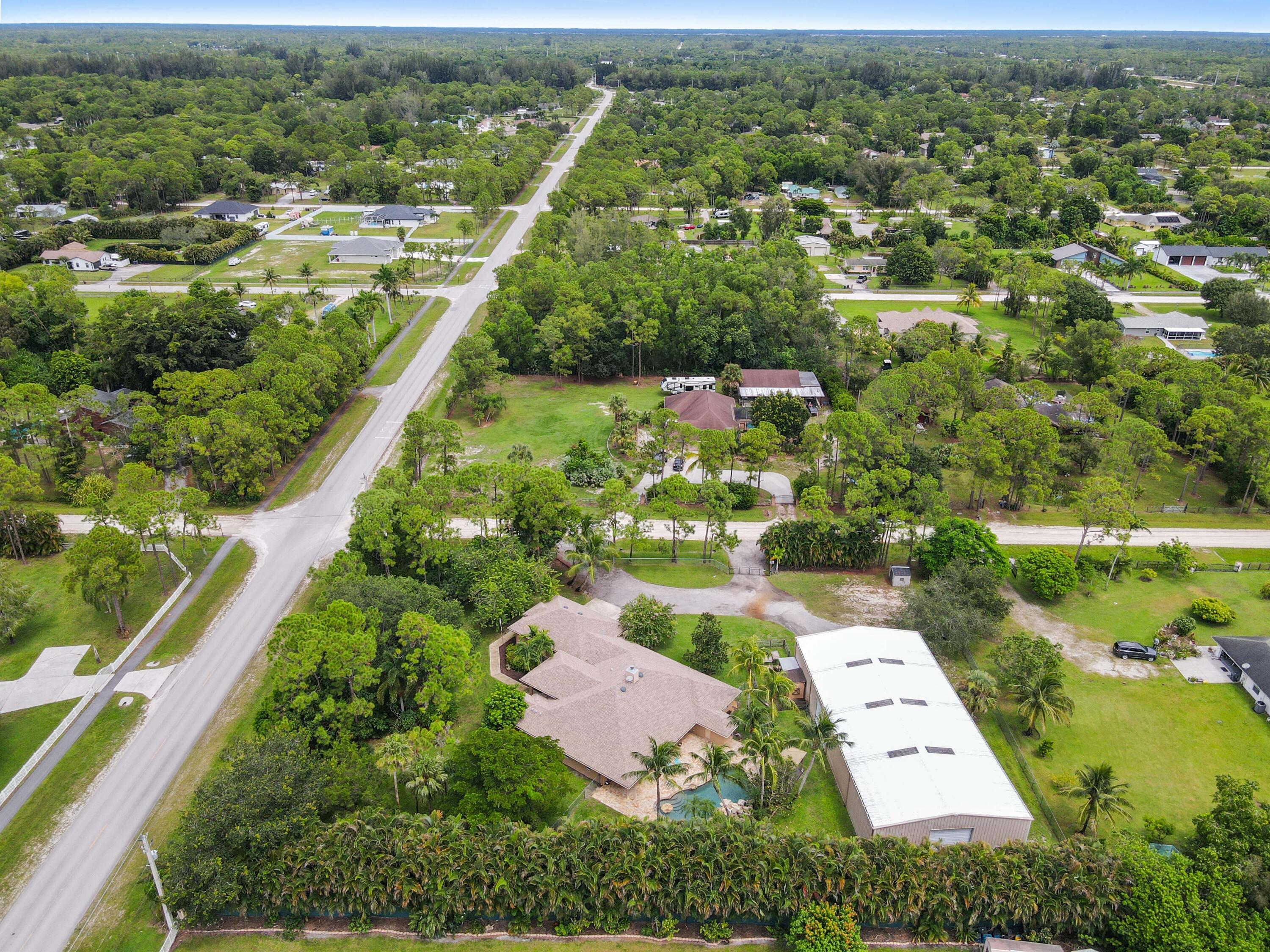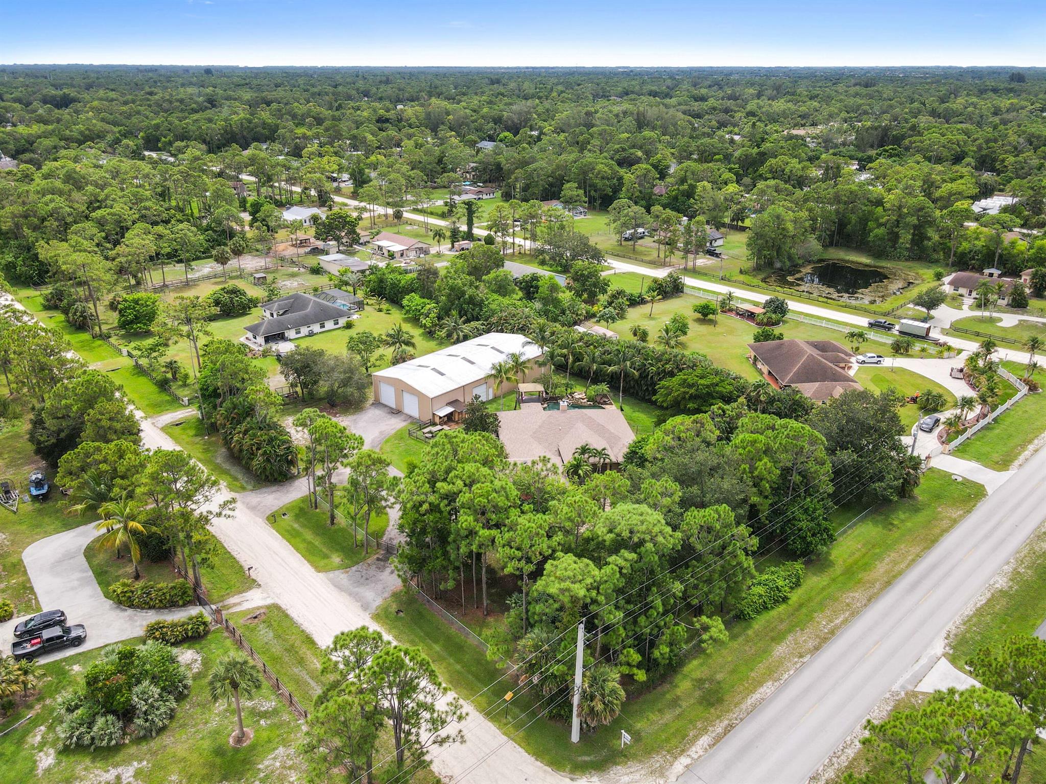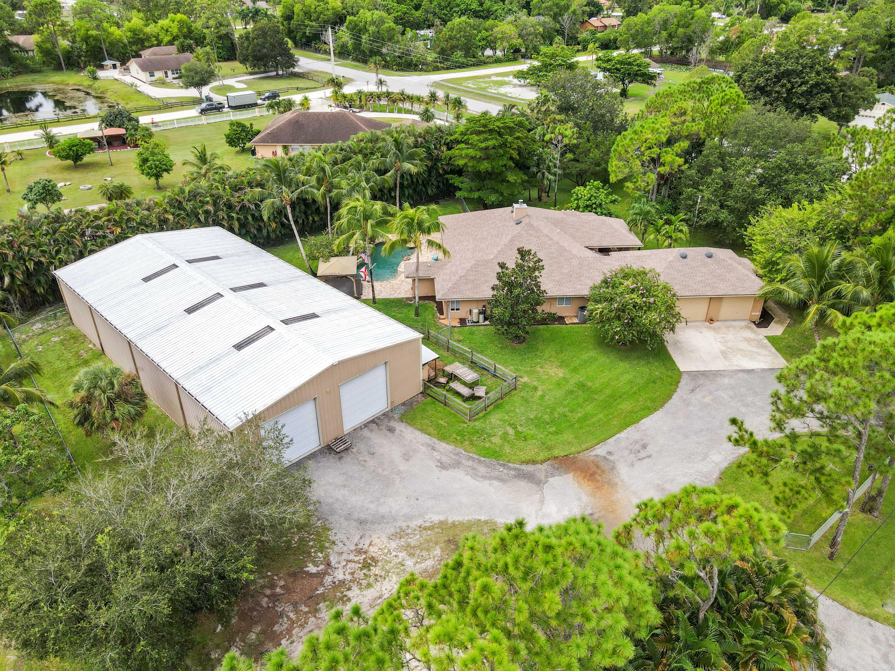 Welcome to this incredible single-family pool home with an oversized attached garage & a huge detached 5,000 sq ft garage/workshop, a true masterpiece of space and serenity, perfectly situated on a prime corner lot spanning 1.75 acres in The Acreage. With a new roof (2023) and no HOA to contend with, you'll enjoy peace of mind along with unparalleled freedom and privacy. This residence features 4 bedrooms and 3 full bathrooms, meticulously designed to offer both comfort and elegance. The spacious and open living area serves as the heart of the home, complete with a cozy fireplace and a sliding door that provides seamless access to the patio.