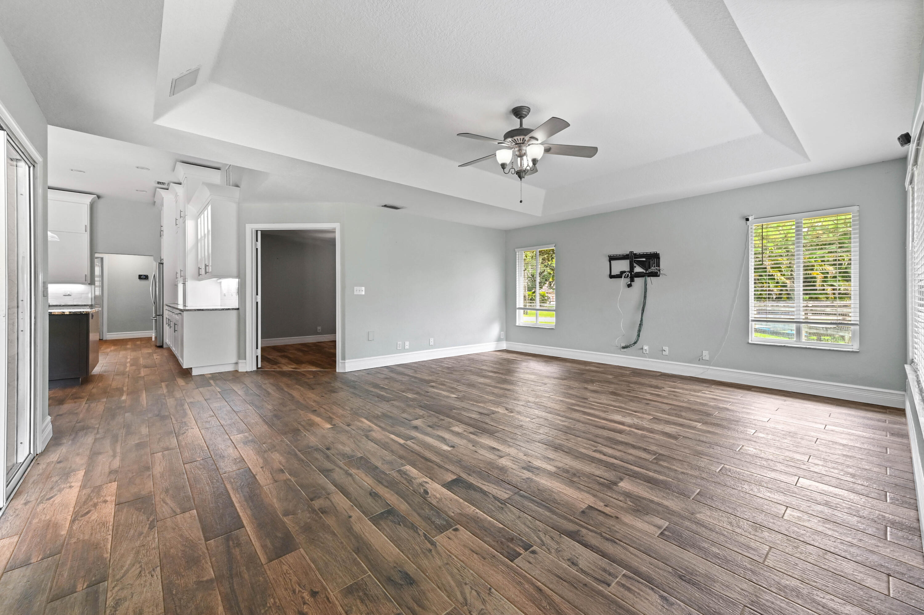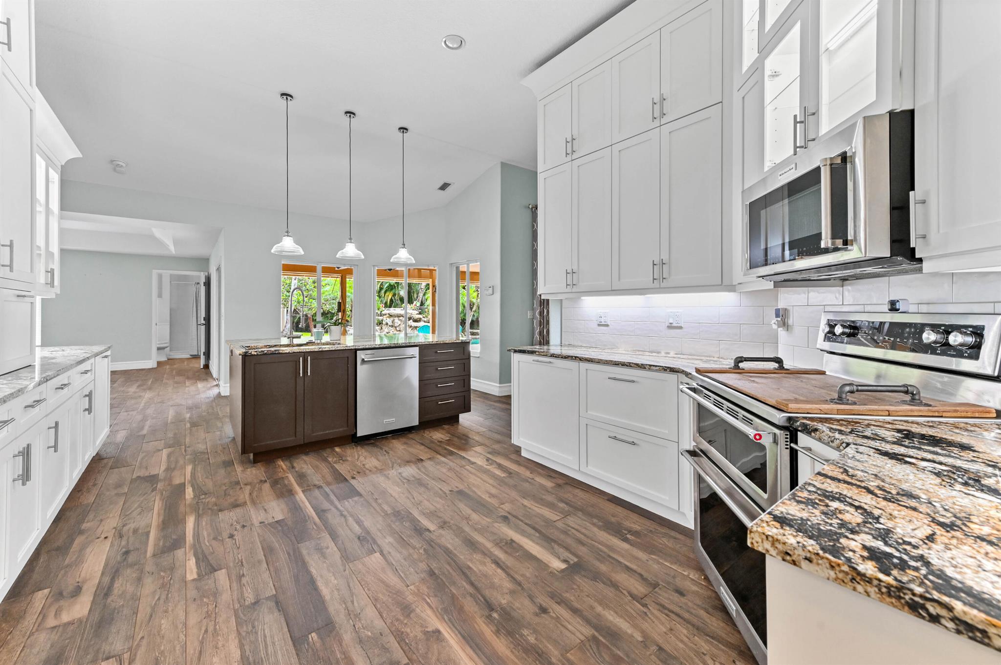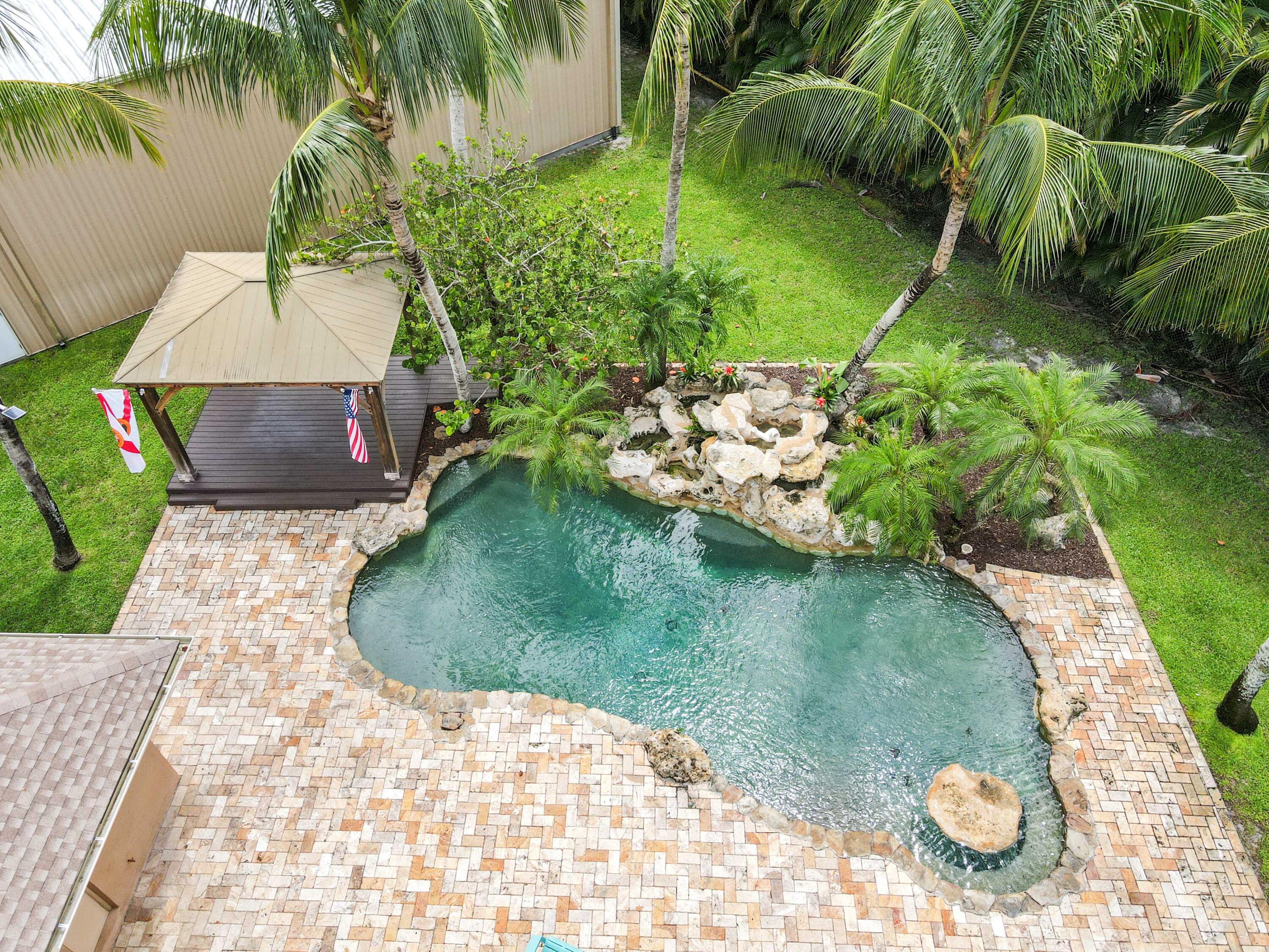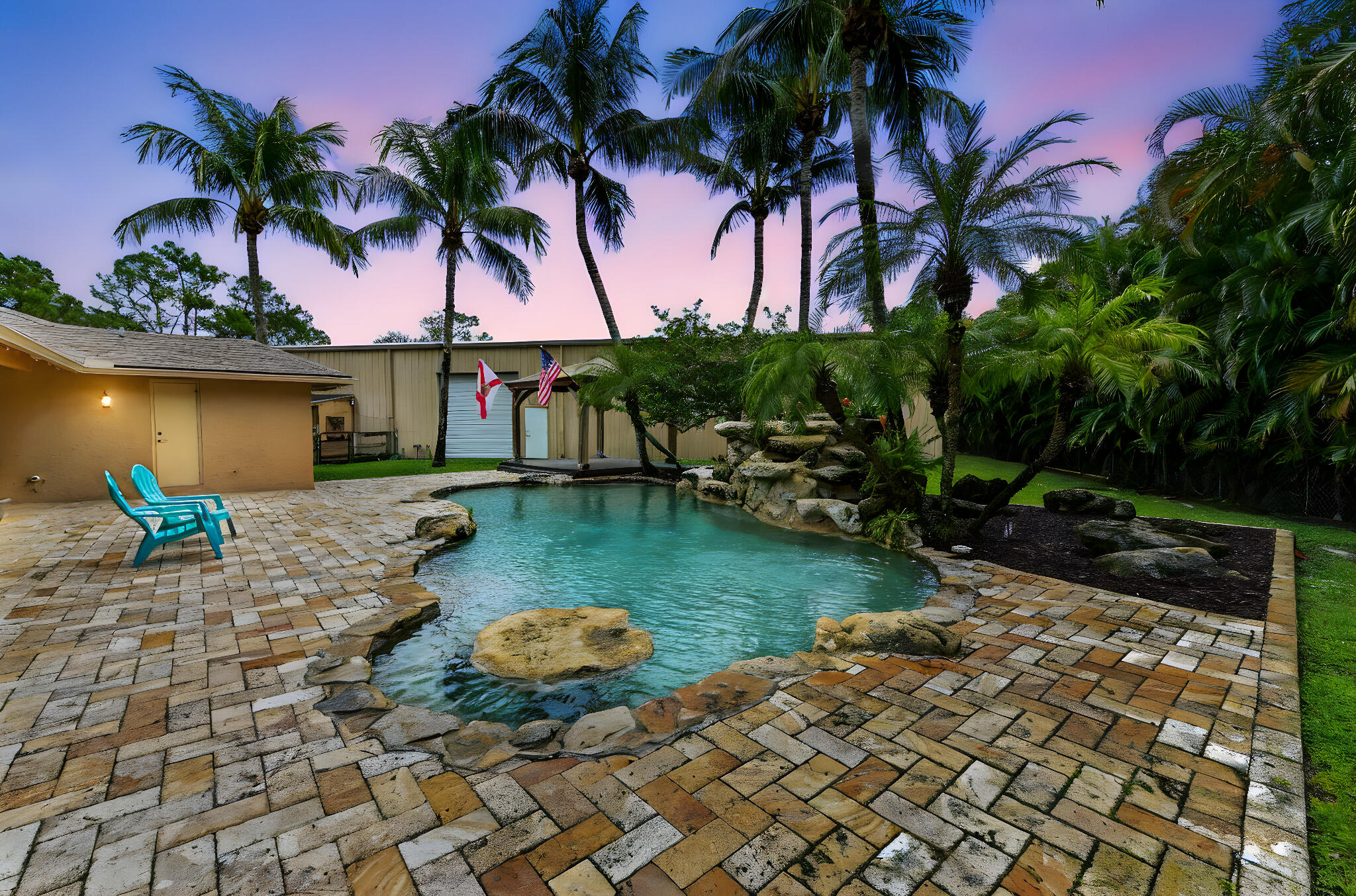 Welcome to this incredible single-family pool home with an oversized attached garage & a huge detached 5,000 sq ft garage/workshop, a true masterpiece of space and serenity, perfectly situated on a prime corner lot spanning 1.75 acres in The Acreage. With a new roof (2023) and no HOA to contend with, you'll enjoy peace of mind along with unparalleled freedom and privacy. This residence features 4 bedrooms and 3 full bathrooms, meticulously designed to offer both comfort and elegance. The spacious and open living area serves as the heart of the home, complete with a cozy fireplace and a sliding door that provides seamless access to the patio.
