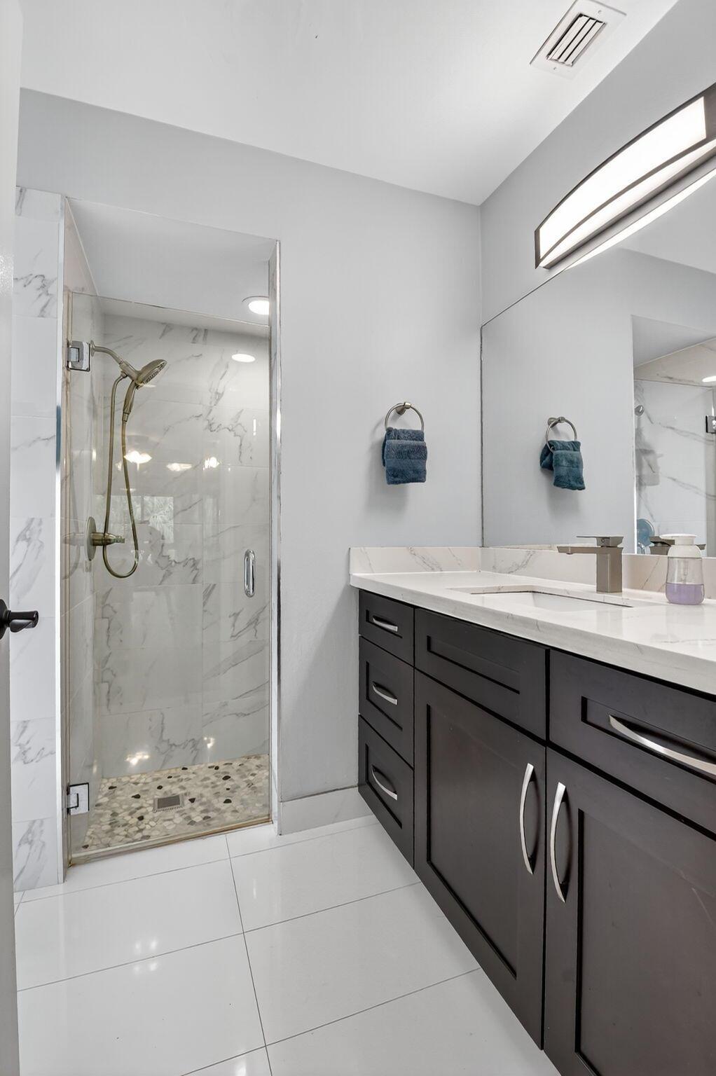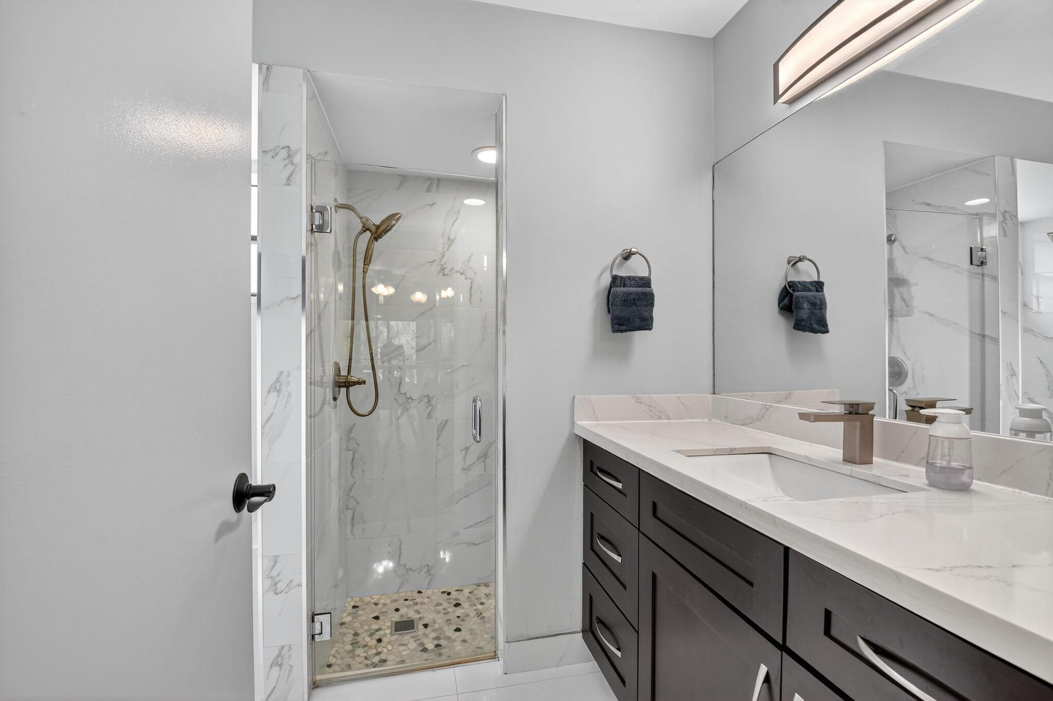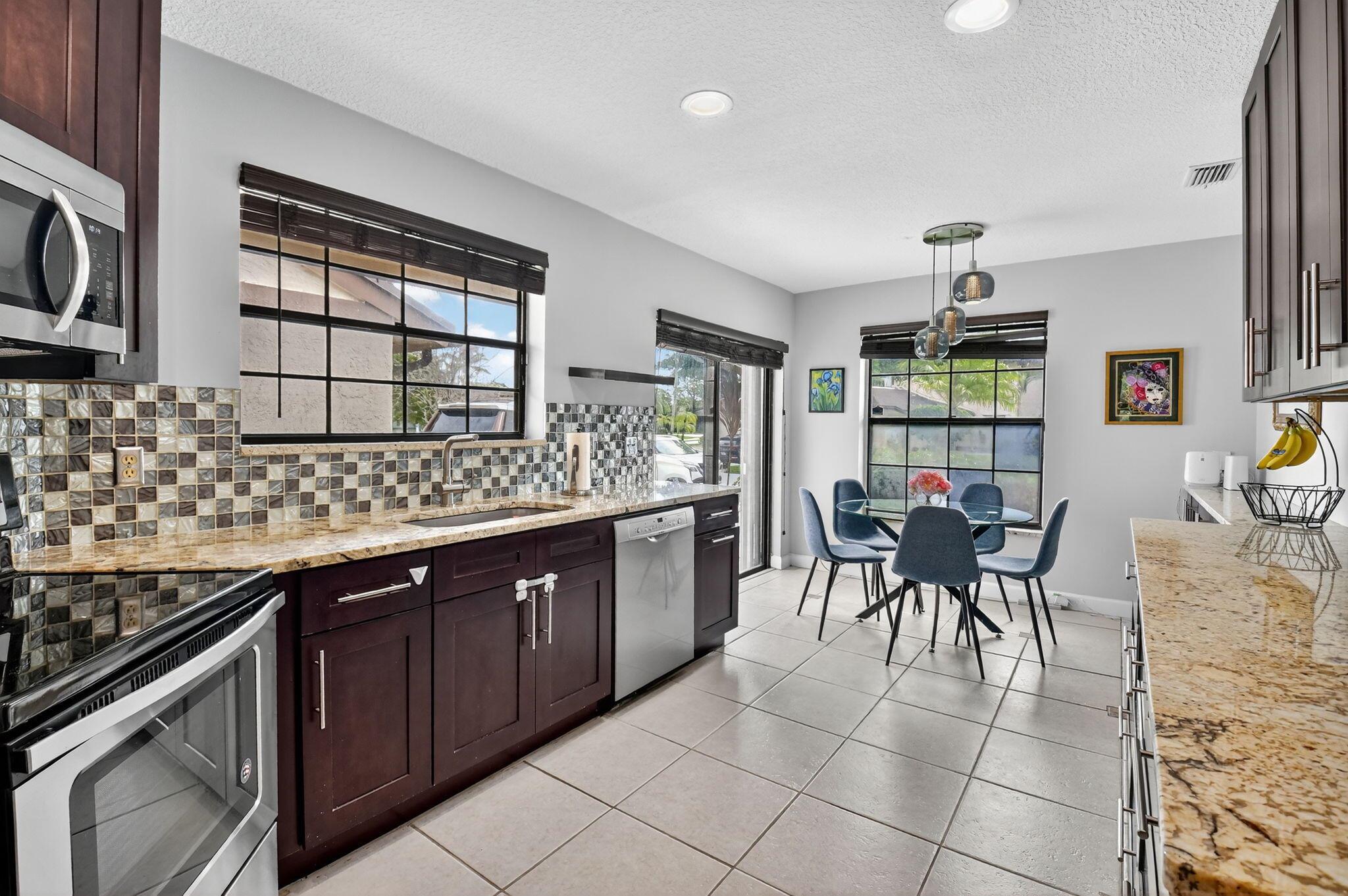 Beautifully Upgraded Townhome in Gated Boca Ridge! This spacious 3-bedroom, 2.5-bath home features a 1-car garage and a highly desirable layout with the primary bedroom on the first floor. The principal suite offers a fully renovated bathroom, while upstairs you'll find two generously sized bedrooms connected by a remodeled Jack-and-Jill bathroom. The updated kitchen boasts wood cabinetry, a stylish glass tile backsplash, stainless steel appliances (only 4 years old), and a pantry. Additional storage includes a large closet under the stairs. Recent upgrades include a 2019 A/C and a 2023 water heater. Enjoy a prime location just steps from the clubhouse, pool, and tennis courts, and within walking distance to houses of worship, restaurants, and Uptown Boca.
