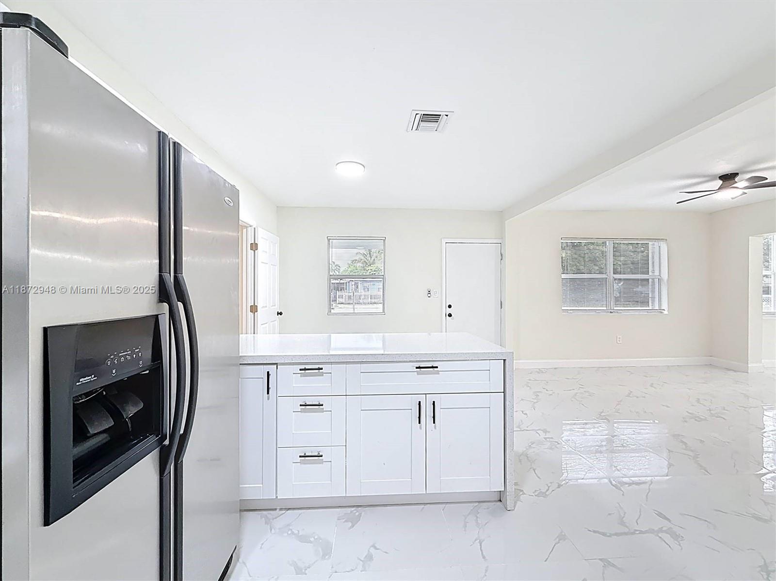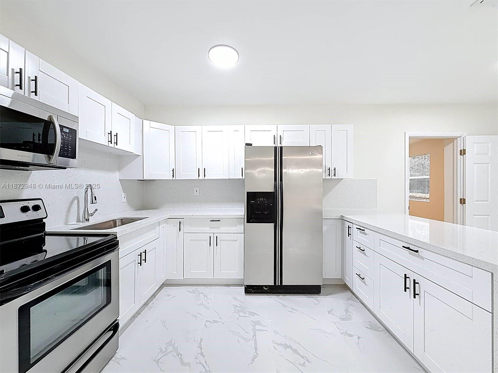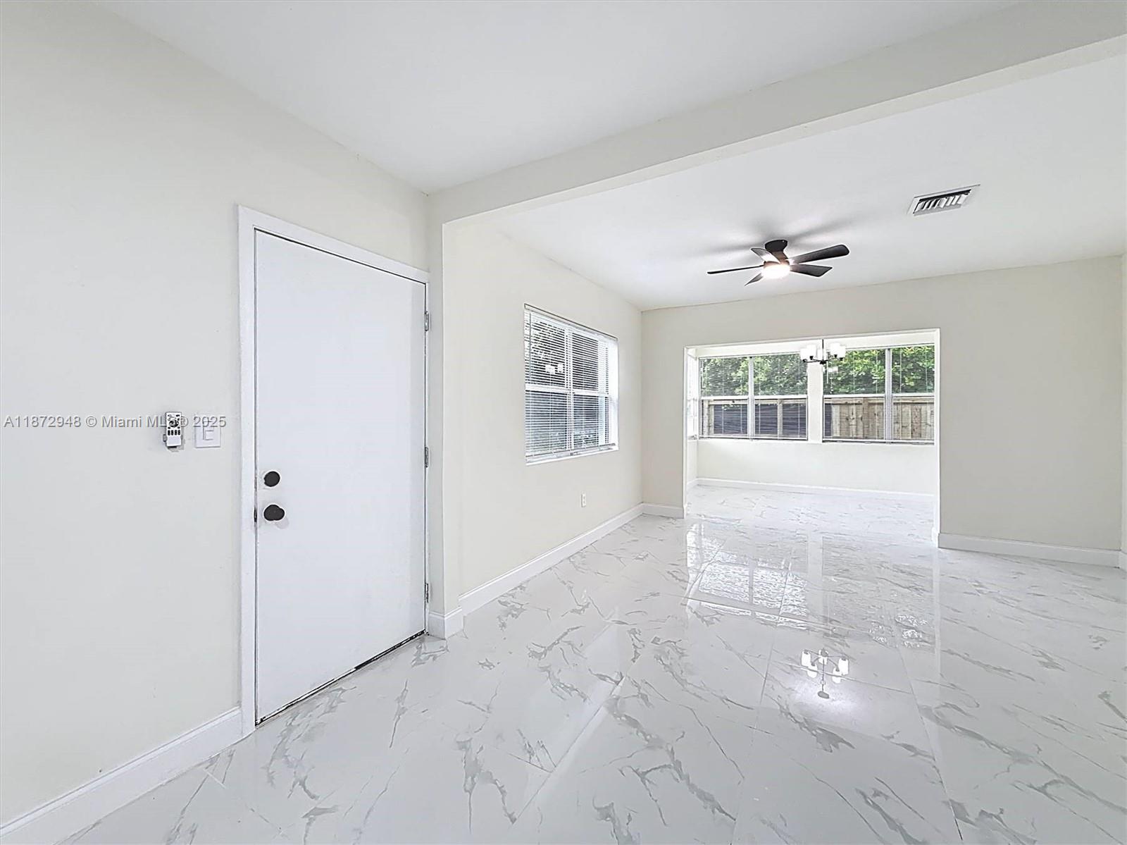 Fully renovated 4-bedroom, 2-bath home in Biscayne Village Heights! This 1,556 sq. ft. single-family residence on a 6,500 sq. ft. corner lot combines modern updates with classic Miami charm. Inside, enjoy an open floor plan with abundant natural light, stylish kitchen, updated baths, large closets and fresh paint throughout. The primary suite offers a walk-in closet and en-suite bath with walk-in shower. Features include central A/C and heat, ceiling fans, blinds, and shades. Outdoors, mature landscaping, partial fencing, and sidewalks create a welcoming setting with space to relax or entertain. Built in 1953 and refreshed for today’s lifestyle, this move-in ready home is close to schools, shopping, dining, and major highways.