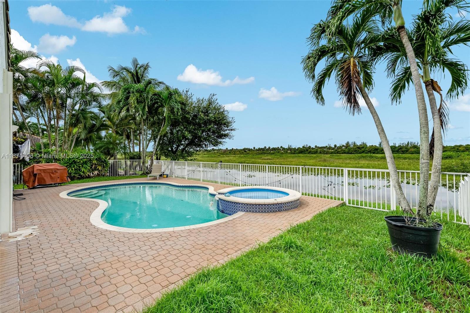 WARM & INVITING WATERFRONT HOME WITH POOL & SPA IN THE DESIRABLE GATED COMMUNITY OF PEMBROKE FALLS * THE SPACIOUS 'MALIBU' MODEL FEATURES 4 BEDROOM, 2.5 BATH AND A 2-CAR GARAGE * FEATURING WOOD FLOORS  ON THE FIRST FLOOR AND STAIRCASE * SPACIOUS AND MODERN KITCHEN WITH STAINLESS STEEL APPLIANCES & QUARTZ COUNTERTOPS * A TANKLESS WATER HEATER FOR ADDED EFFICIENCY * NEWER AC UNIT REPLACED IN 2022 AND ACCORDION SHUTTERS THROUGHOUT FOR PEACE OF MIND * OUTDOORS, RELAX AND ENTERTAIN IN YOUR PRIVATE BACKYARD WITH PATIO, SPARKLING POOL, AND BREATHTAKING SUNSET VIEWS OVER THE WATERFRONT * COMMUNITY OFFERS NATURAL GAS, A RESORT-STYLE REC CENTER, POOL, CLUBHOUSE, TENNIS & MORE * HOA INCLUDES CABLE, FIBER INTERNET, 24HR SECURITY AND MORE!