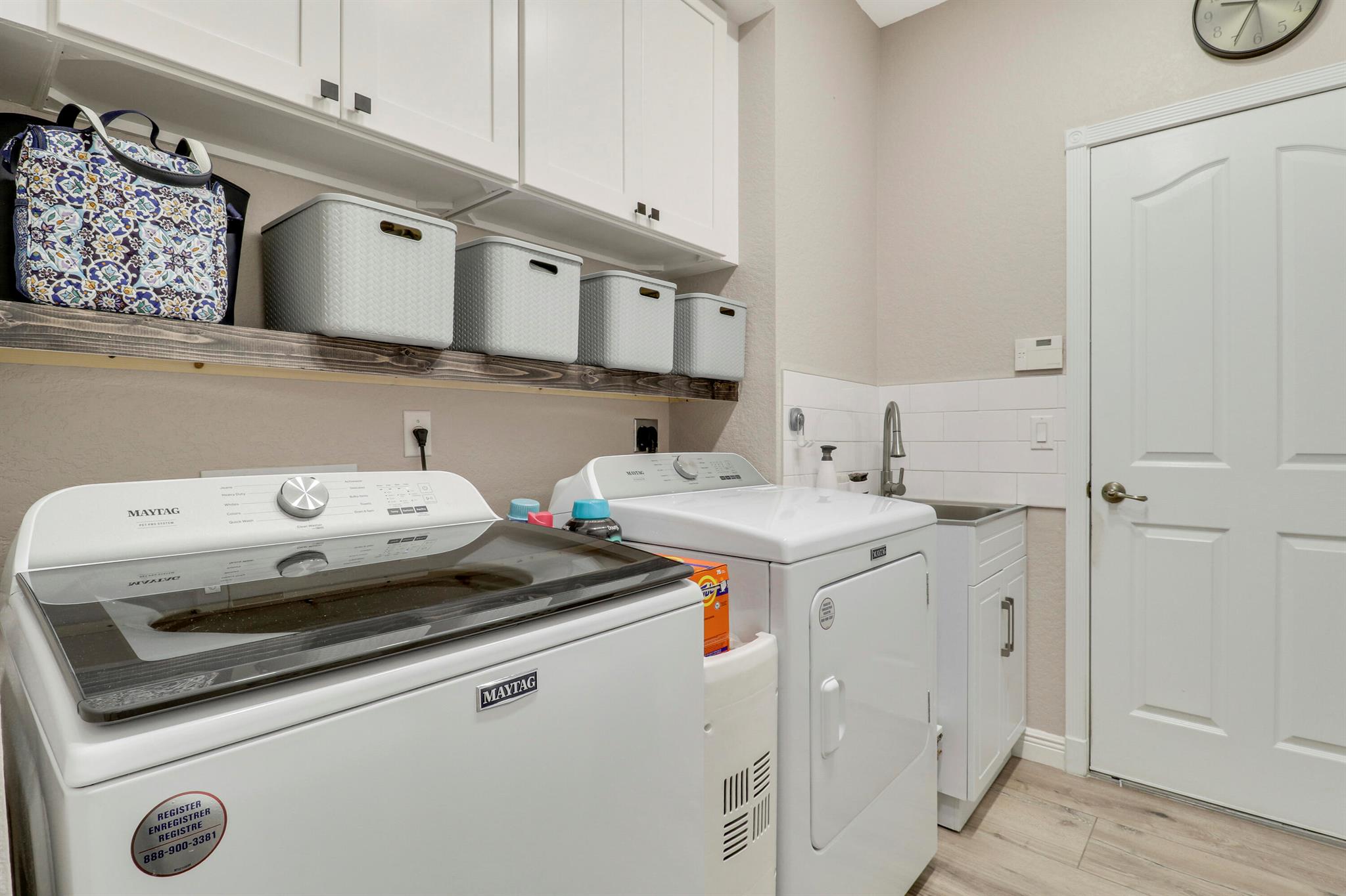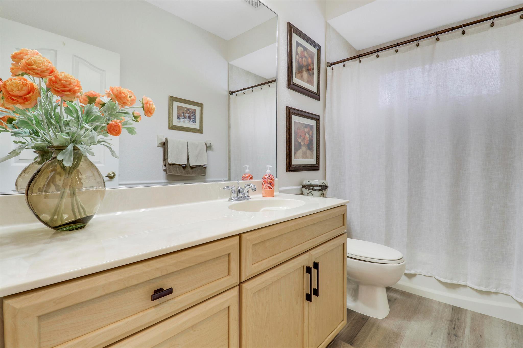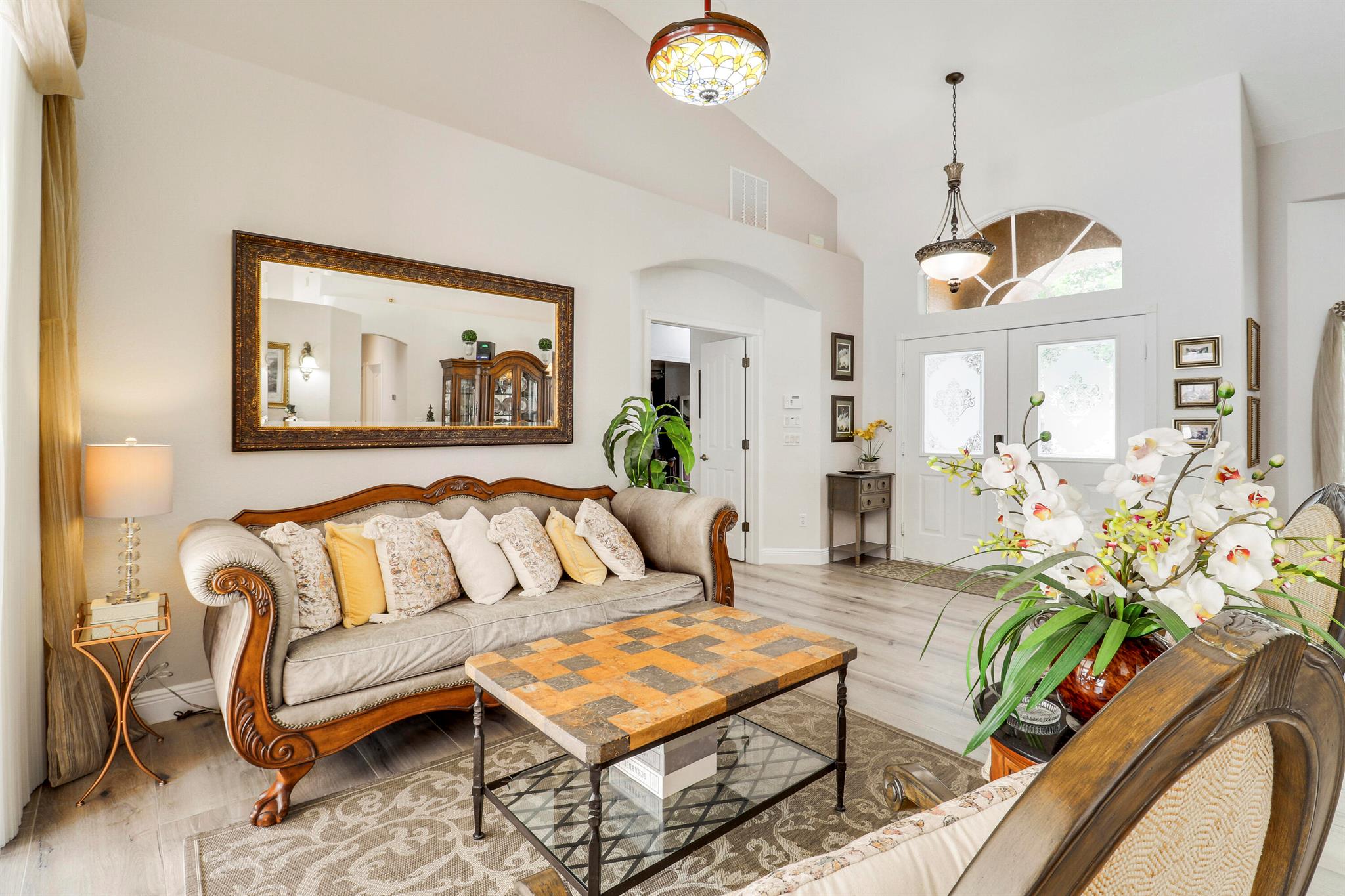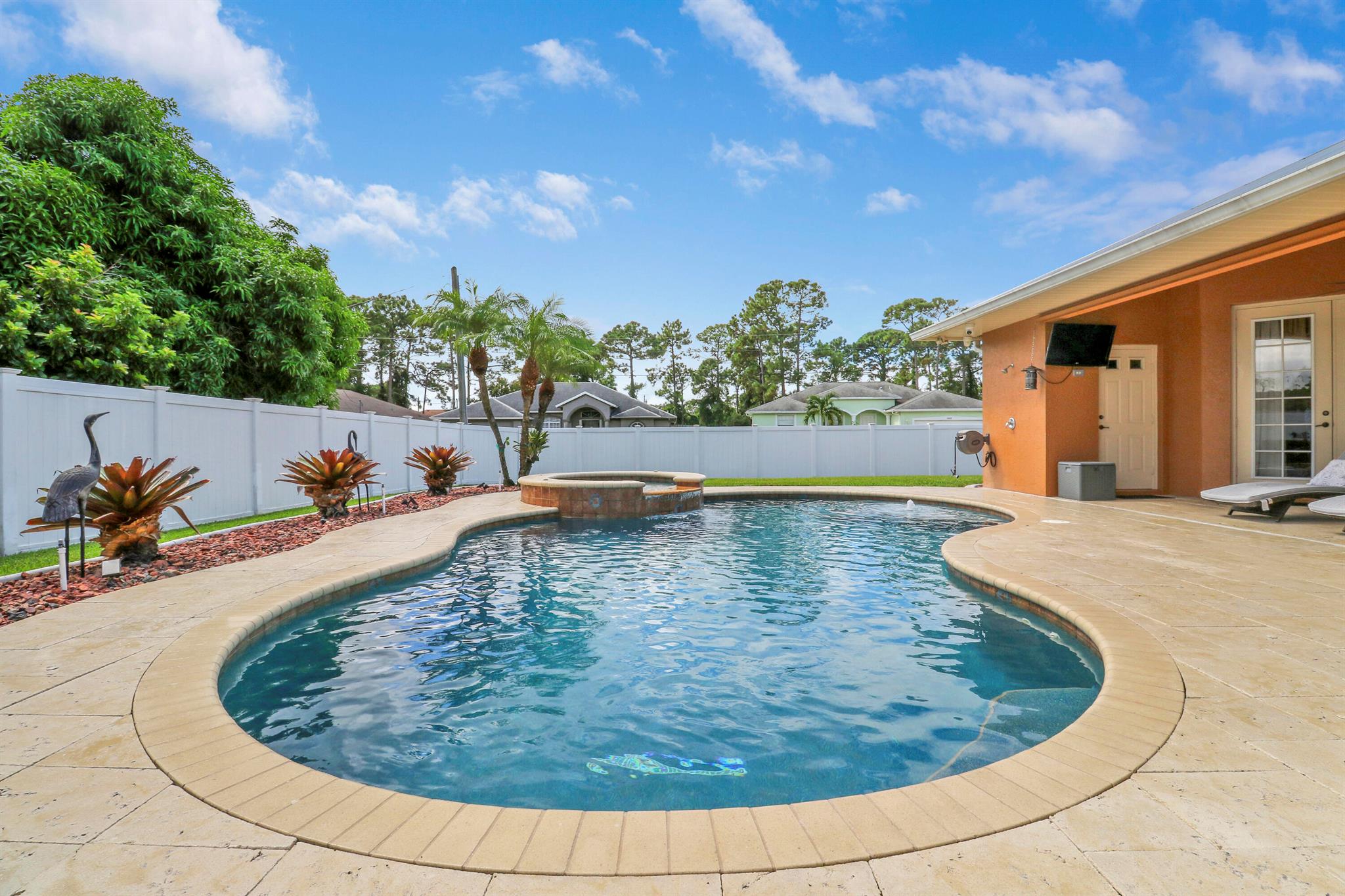 A beautiful home at a great value! Original owner. Split bedrooms, formal dining and an eat in kitchen. Perfect mix of open concept, but not ''too open'' Great sightlines from the kitchen to the family room and the pool with enough room to have a quiet place.Spotless and very well maintained, truly turnkey.Vinyl fence for privacy and keeps the kids and pets in your sight and safe.Newer metal roof, new wood-look tile flooring except 3rd bedroom, plenty of tile in the garage to do it, or keep the new high traffic carpet. Primary has dual sinks and vanities, whole house water filtration, full storm protection, generator hook up, New Smart heat pump WH, built in storage in garage, epoxy flooring in garage and driveway! East of 95 tween Becker and Gatlin. NO HOA. What's not to love?