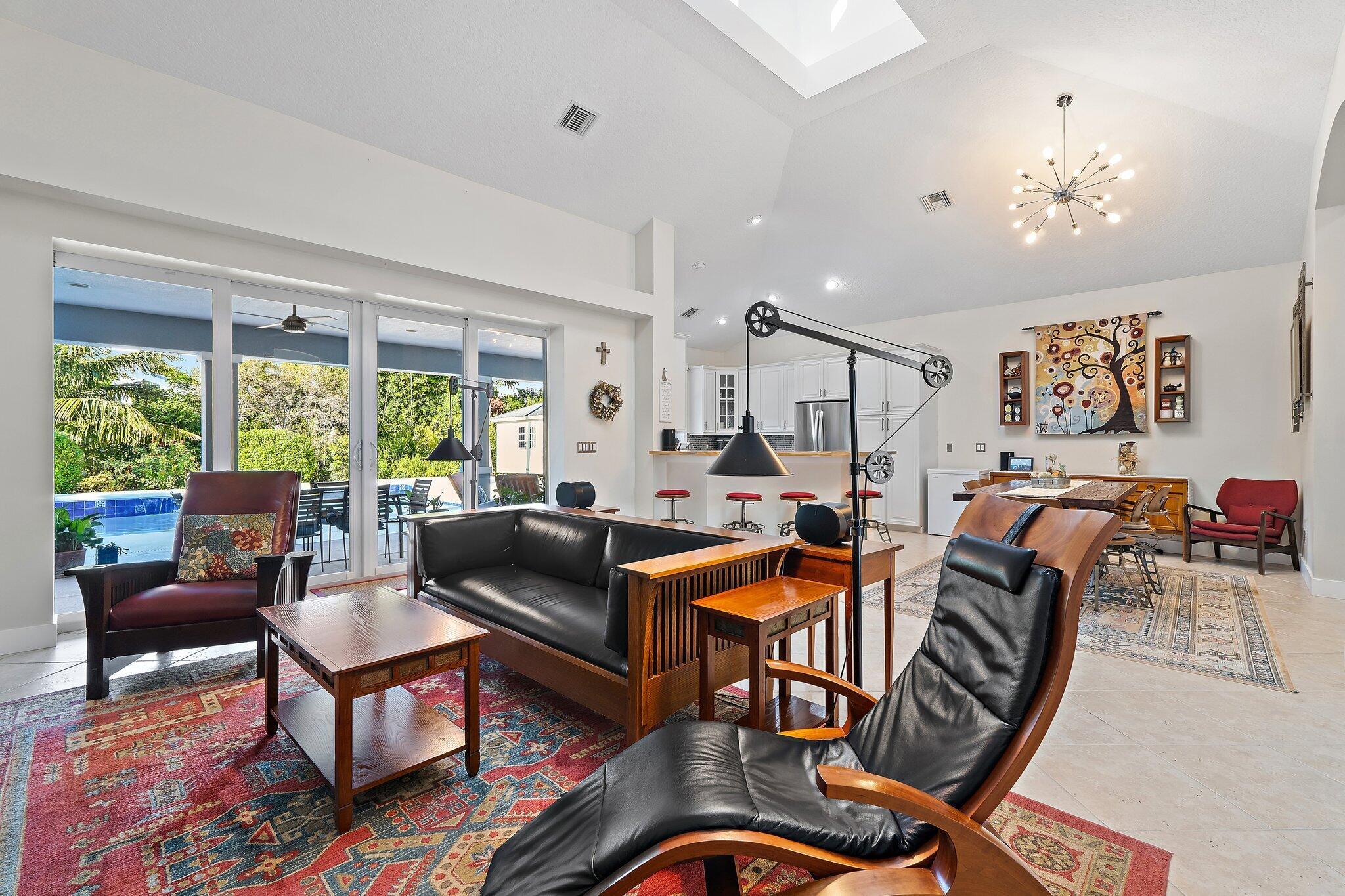 Beautiful updated custom-built pool home in the exclusive Papaya Estates of Hobe Hills and 18+ ft elevation. Positioned on no-thru street across from Jonathan Dickinson SP, this 4-bedroom plus den, 3-bathroom home sits on 1/2-acre, non-HOA lot and blends privacy and coastal charm only 1.6 miles from beach, dining, and shopping.Designed for elegant comfort and functionality, this open-concept CBS home has impact windows & doors, split floor plan with private MBR suite, volume ceilings with large cupola, pocketing sliding doors opening to an extra-large covered lanai, perfect for entertaining. Ideal for discerning buyers seeking a unique blend of luxury, space, and proximity to nature. This home is a rare find. Experience Florida living at its best!