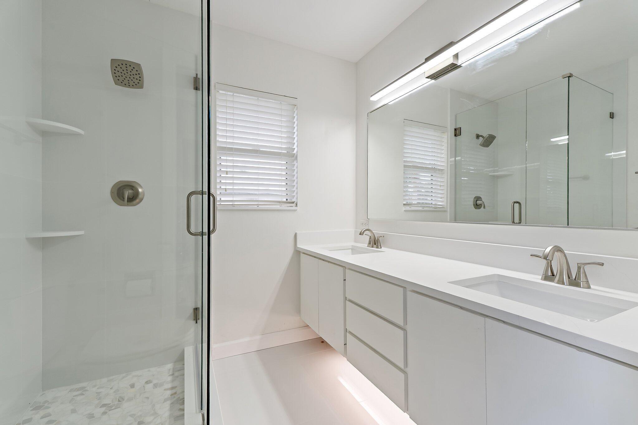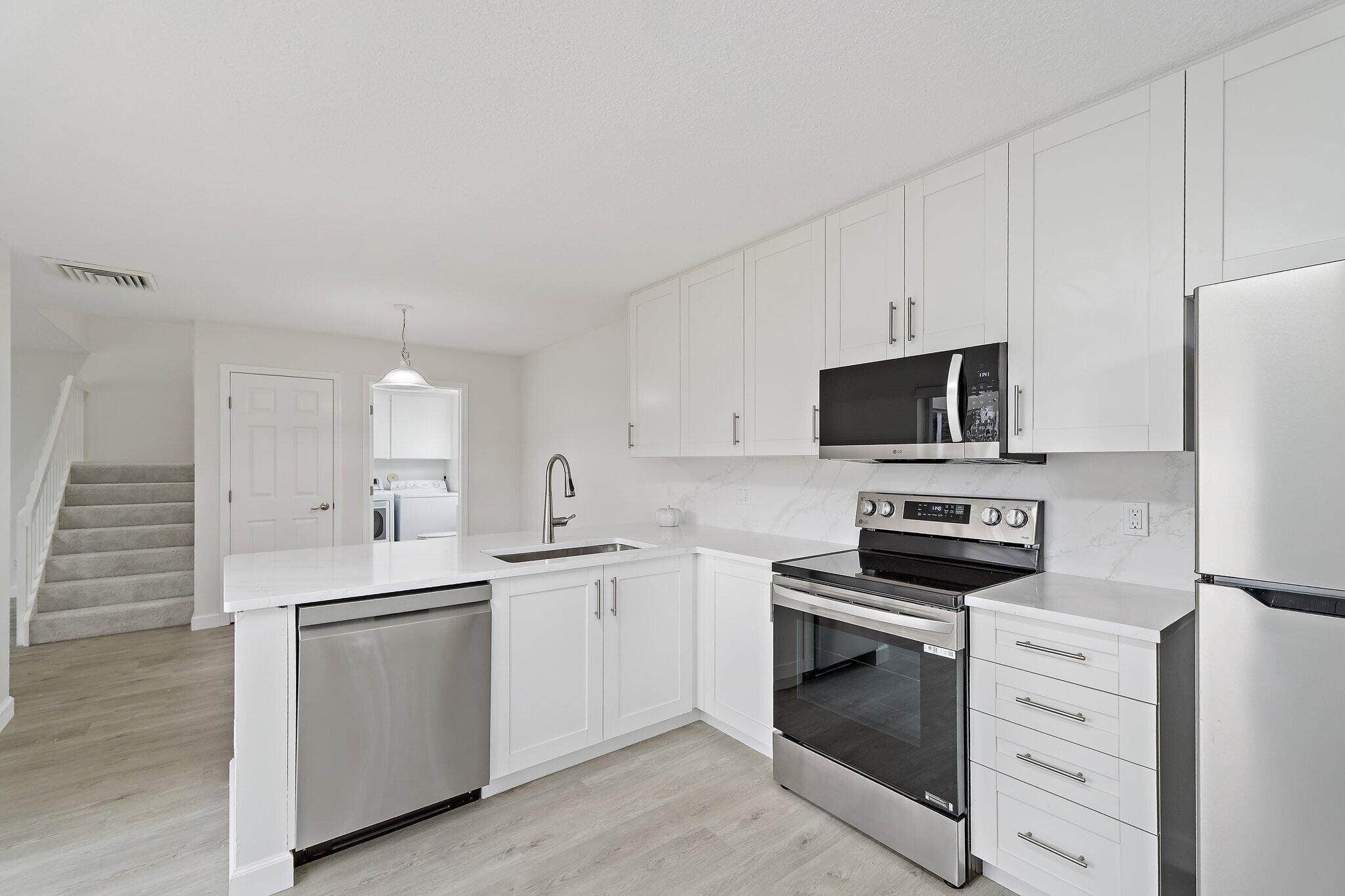 Beautifully renovated 2-bed, 2.5-bath townhome in The Meadows! This light & bright residence has been completely renovated with a modern, neutral color palette. The kitchen shines with quartz countertops, upgraded cabinetry, and new stainless steel appliances. The open living & dining area flows effortlessly, featuring luxury vinyl floors downstairs and brand-new carpet upstairs. Each bedroom offers a private ensuite designed for comfort and functionality, with both bathrooms newly tiled. Enjoy the screened lanai courtyard, facing a green space, not the parking lot. It's perfect for relaxing or entertaining. Freshly painted inside & out, this home also features a significant upgrade: all polybutylene plumbing has been replaced to current code.