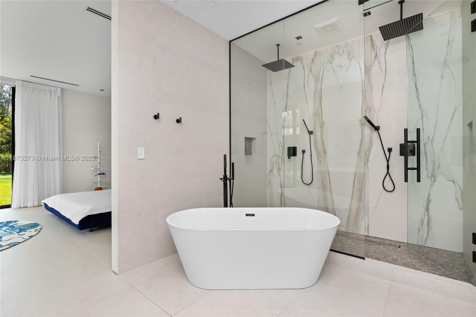 Set on a 39,639 sqft corner lot, this 2023 modern estate offers 5,847 sqft of luxury living. The main home features 6 beds, 6.5 baths, plus a detached 1 bed/1 bath suite. Designed for comfort and entertaining, enjoy a heated saltwater pool, hot tub, outdoor kitchen, putting green, and a two-car garage with EV charger. Premium finishes include Miacuccina millwork, 24x48 porcelain floors, soaring ceilings, a chef’s kitchen with Calacata Quartz, high-end appliances, & a large island. Smart features include a Control4 system, blackout shades, and more. Additional highlights: spa-style baths, walk-in pantry, laundry room, and fruit trees. Ideally located near top Pinecrest schools like Gulliver Prep, Palmetto, Beth Am, and more. Move-in ready in one of Pinecrest’s most desirable neighborhoods!