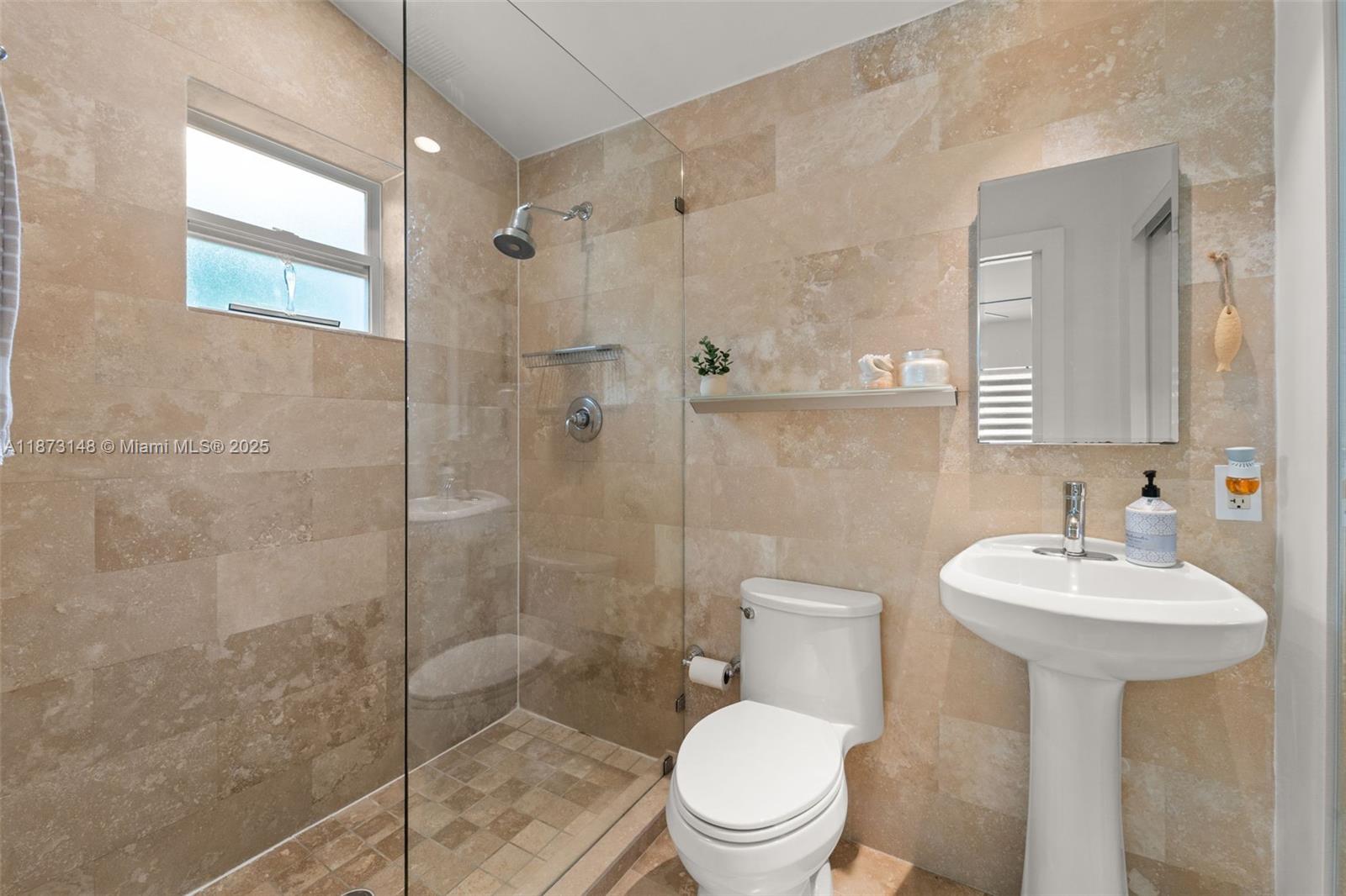 Welcome to your own private 3-bedroom, 2-bathroom sanctuary, set on a lush corner lot in Miami Shores where tropical landscaping, mature palms, and custom outdoor lighting set the tone. The Gunite pool with waterfall and sun shelf anchors the private backyard and patio—perfect for entertaining or quiet lazy afternoons. Inside, natural light highlights the bright, updated kitchen with quartz countertops, stainless steel appliances, and smart features including a Nest thermostat and smart washer/dryer. The new privacy fence, the Generac full-home generator, the 3-car driveway, and the large storage shed add thoughtful functionality to this beautifully maintained residence. Every detail has been elevated, making this home a rare blend of style, substance, and true peace of mind.