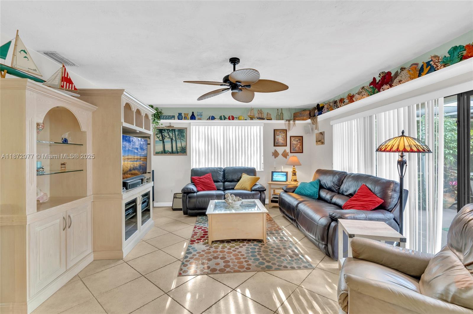 Welcome to your private oasis in the desirable Pembroke Lakes community. This inviting 3 bedroom, 2 bath home is full of comfort and charm. A beautifully landscaped front yard with a welcoming courtyard patio sets the stage as you enter. Inside, the kitchen flows into a spacious family room, ideal for gatherings. The primary suite features rich wood floors and an updated bath, while accordion shutters and newer appliances add peace of mind. Step outside to a backyard retreat with a screened patio, exotic fruit trees, professionally designed landscaping, a tranquil pond with waterfall, and even a putting green. With no HOA, this gem sits on a quiet street near excellent schools, shopping, dining, and CB Smith Park.